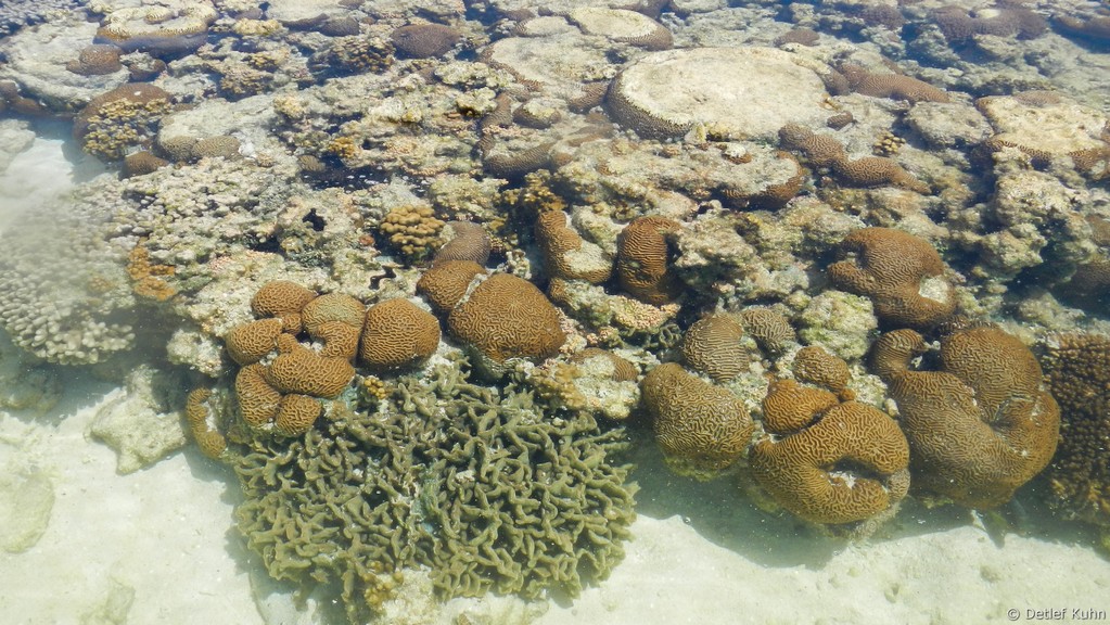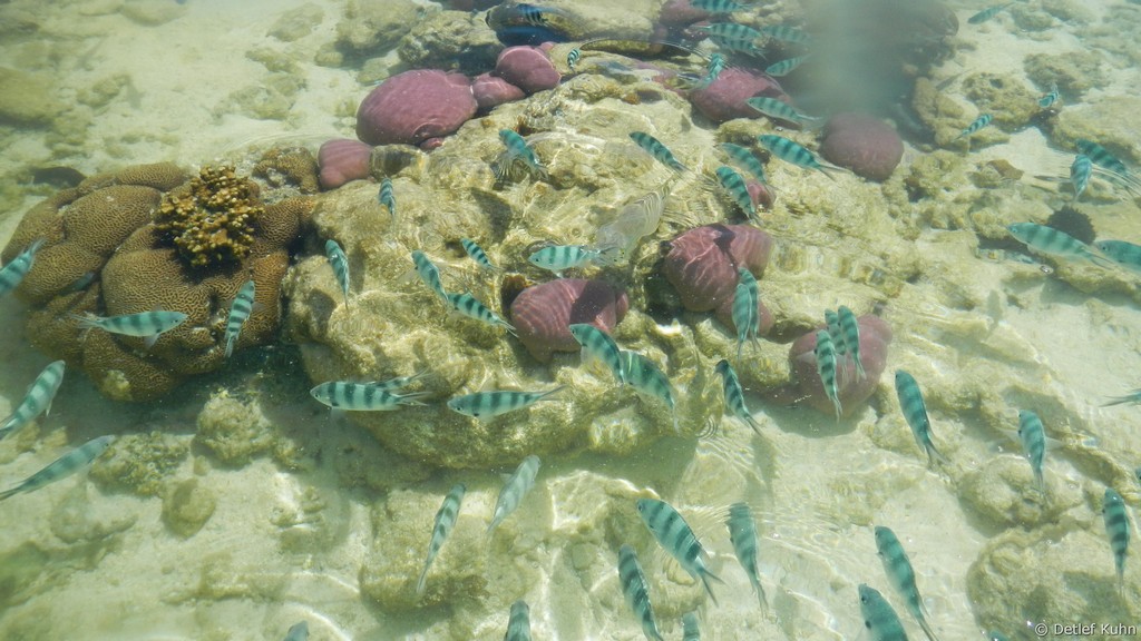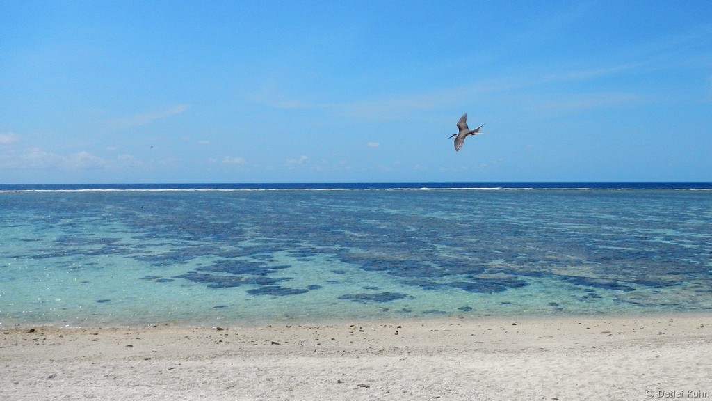 Sie lässt sich bequem in gut einer Stunde zu Fuß über den Korallenstrand umrunden.