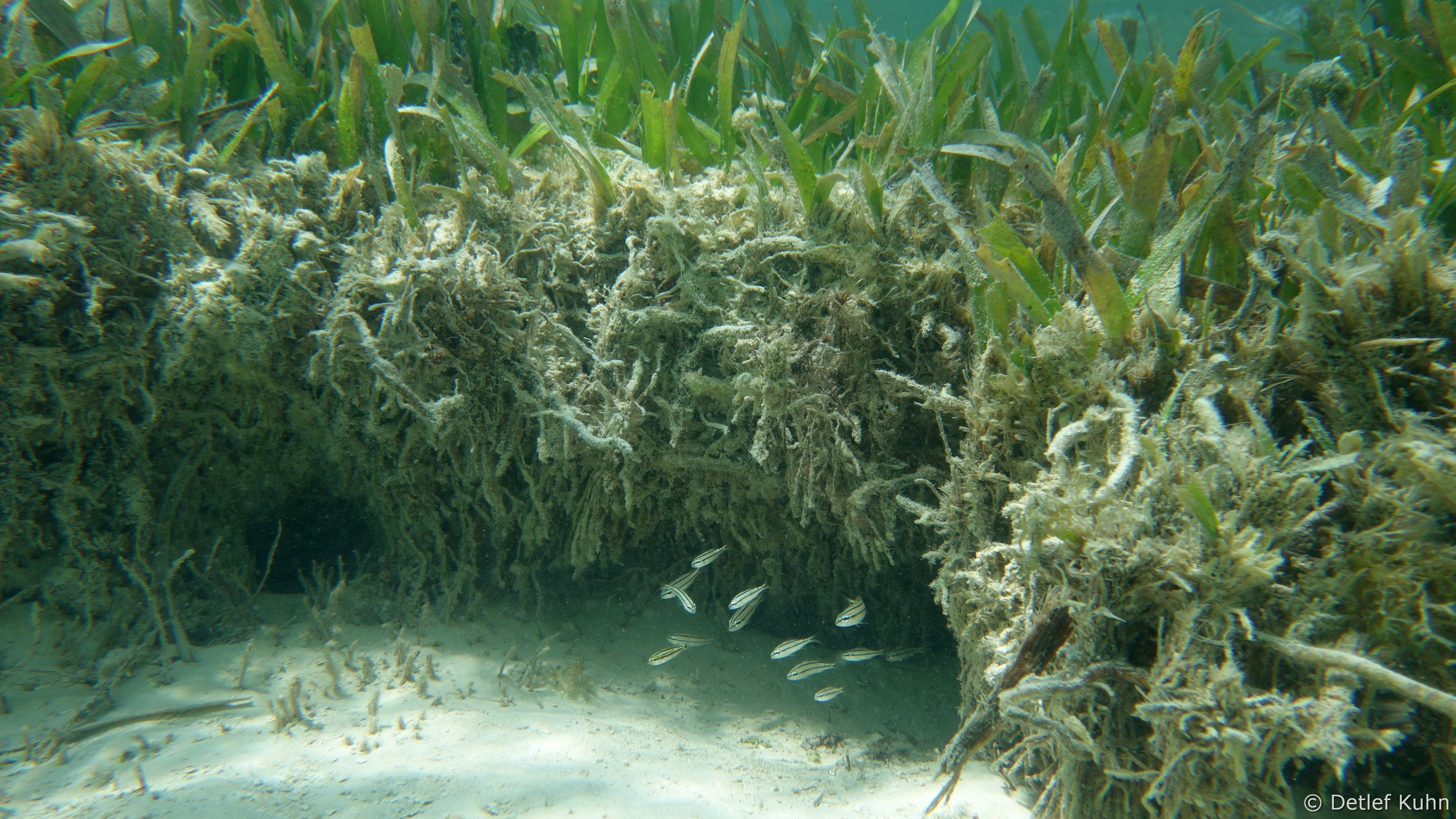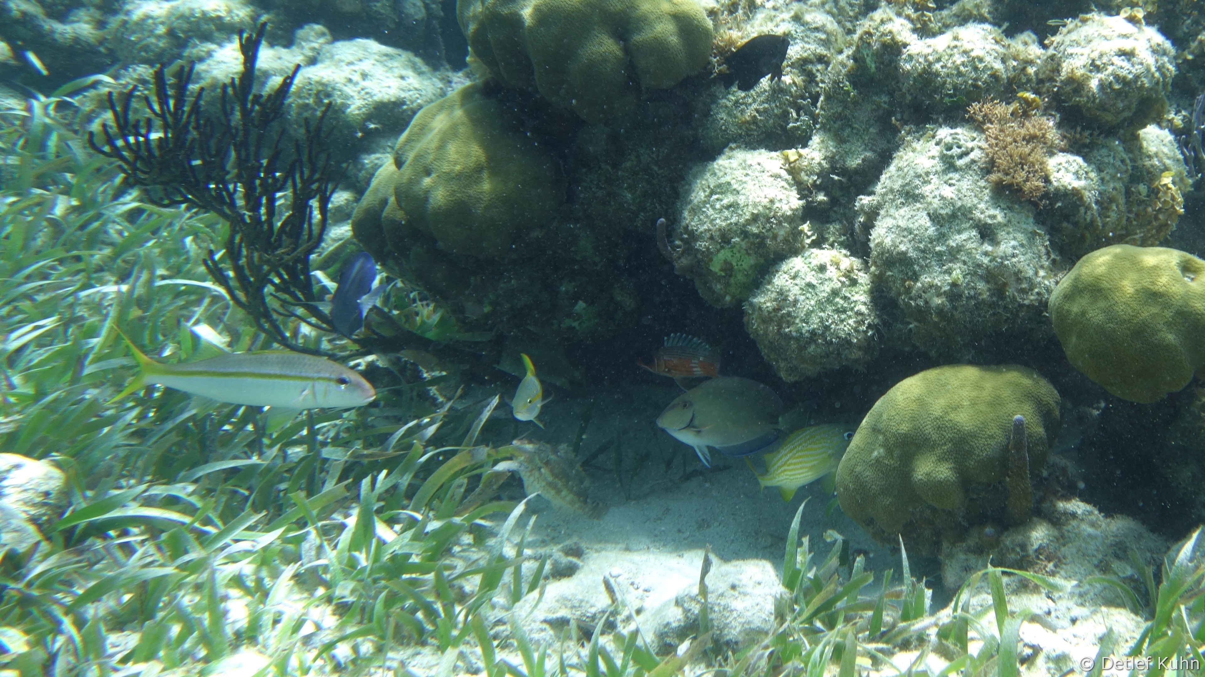Mexico Rocks besteht aus 3 bis 3,5 Meter hohen Felsen, die von ausgedehnten Seegraswiesen in der Rifflagune umgeben sind.