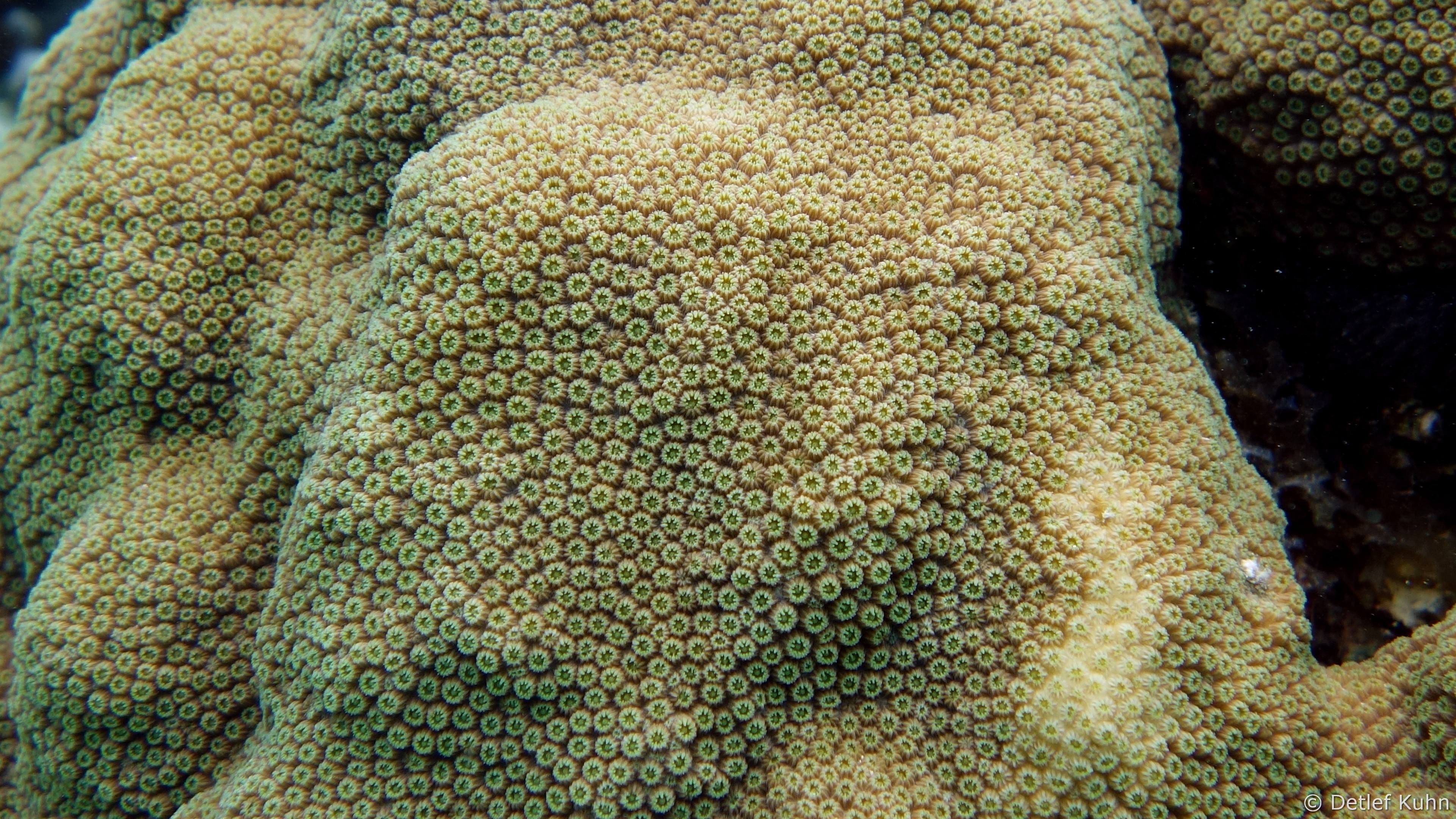 Auf ihrer Oberfläche haben sich zahlreiche Steinkorallen, Weichkorallen und Gorgonien angesiedelt,