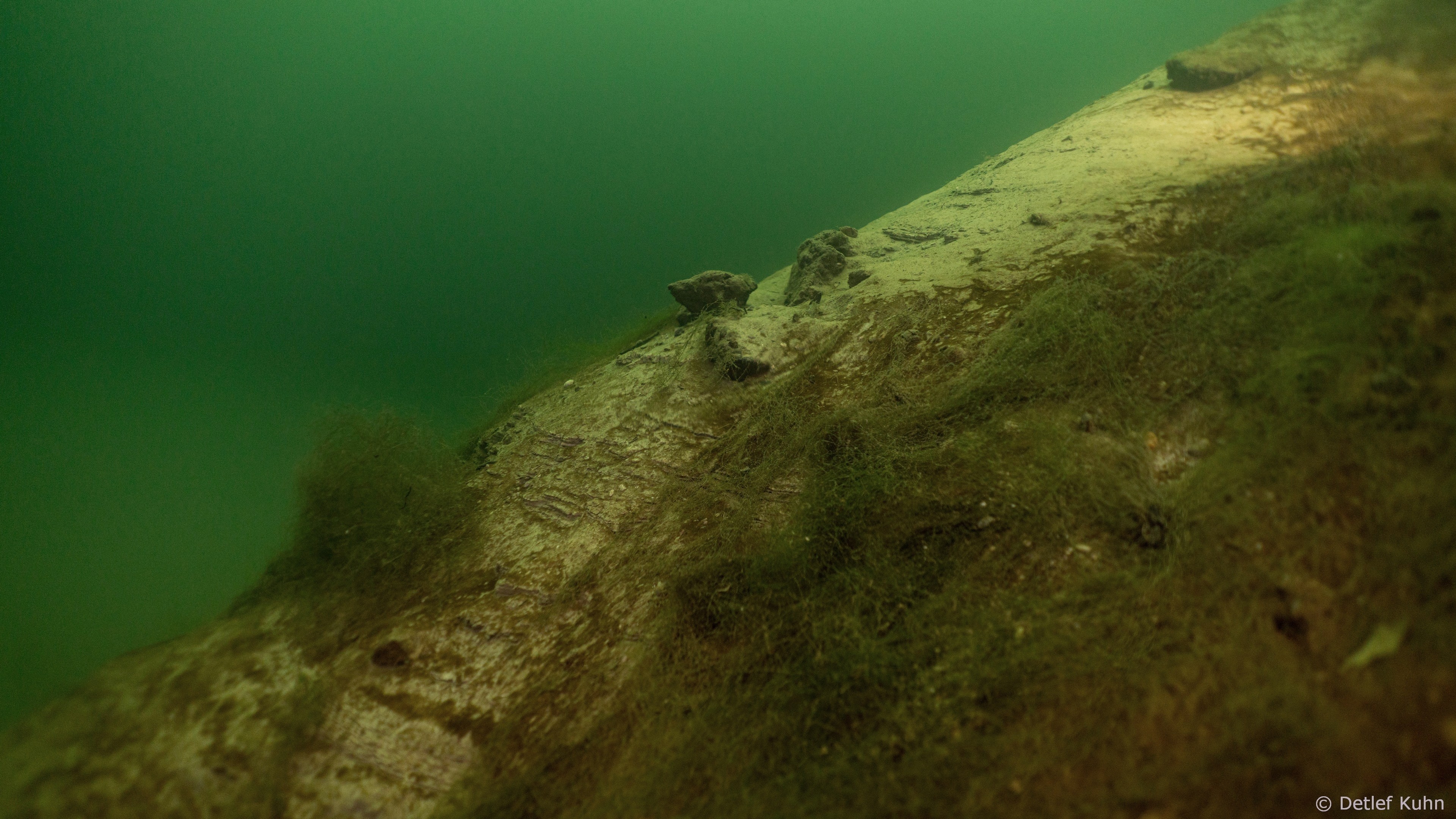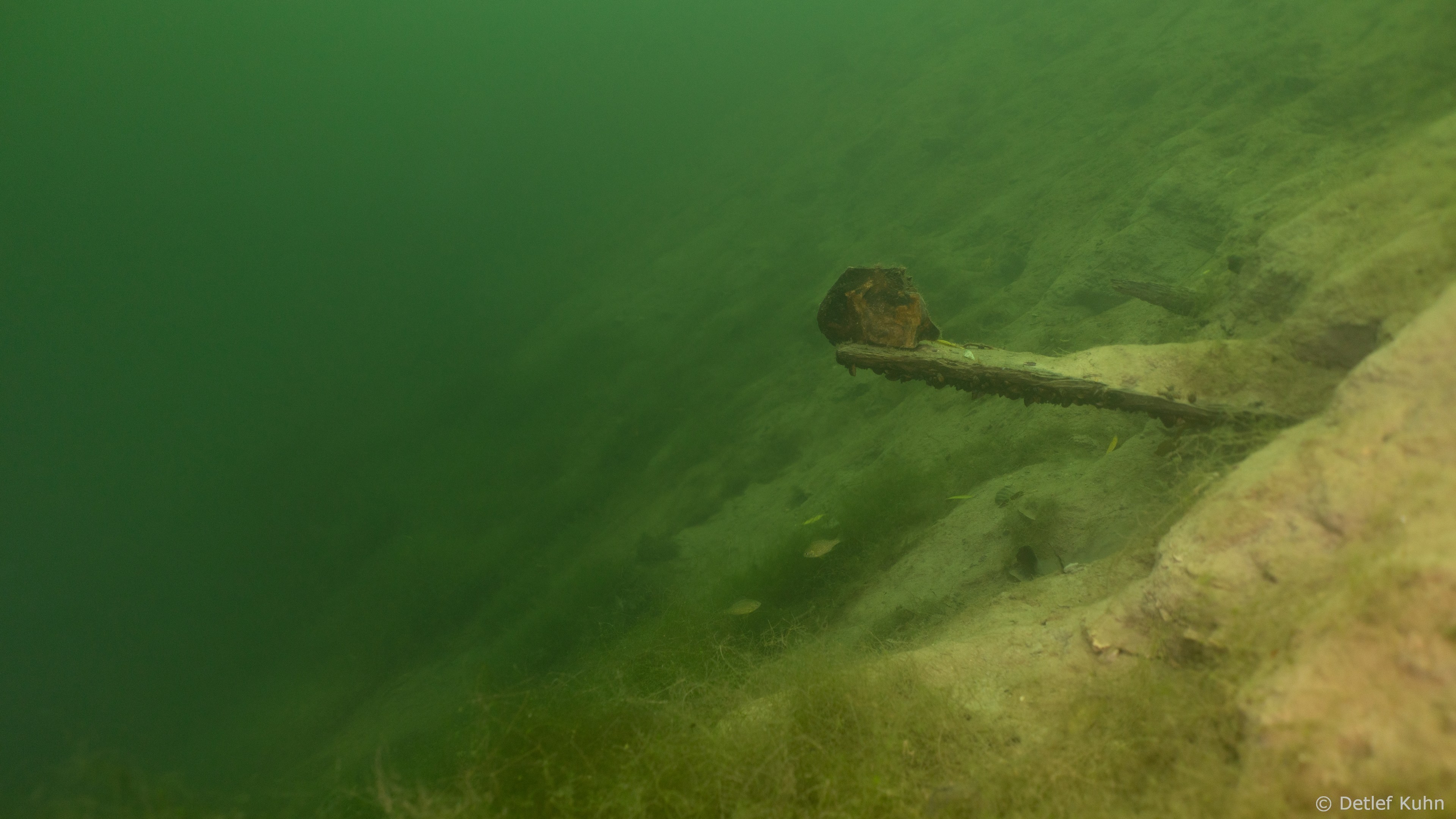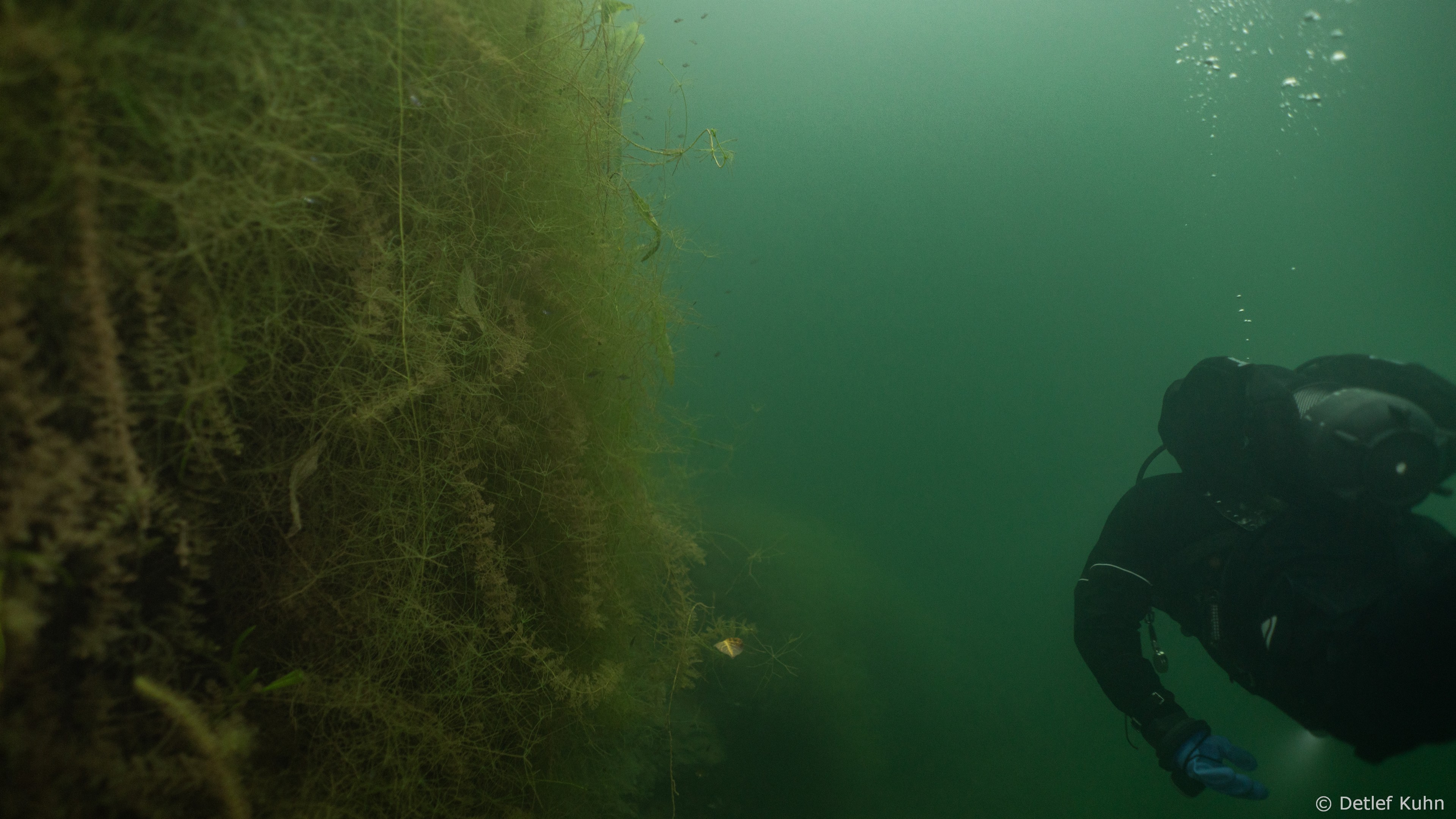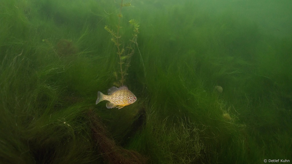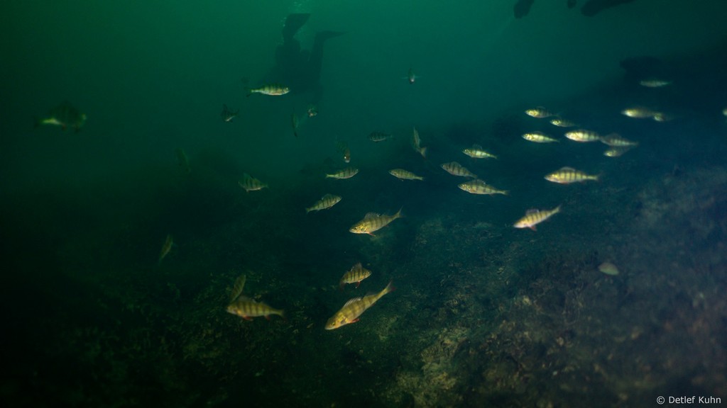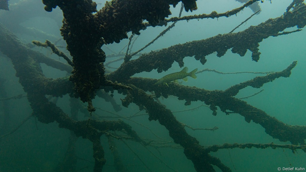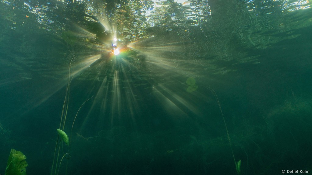 Schon unmittelbar unter der Wasseroberfläche hat man im Uferbereich, dem Litoral, den Eindruck man ist in einem Aquarium.