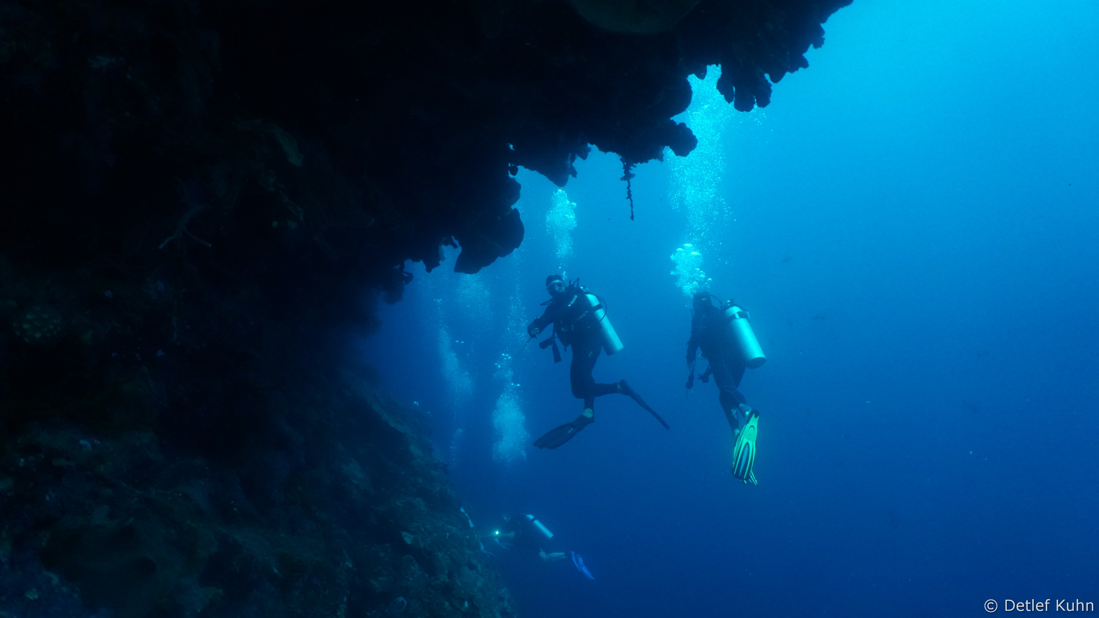 Die Bedingungen sind nicht jeden Tag gleich – trübe Sichtverhältnisse beim Steilwand-Tauchgang.