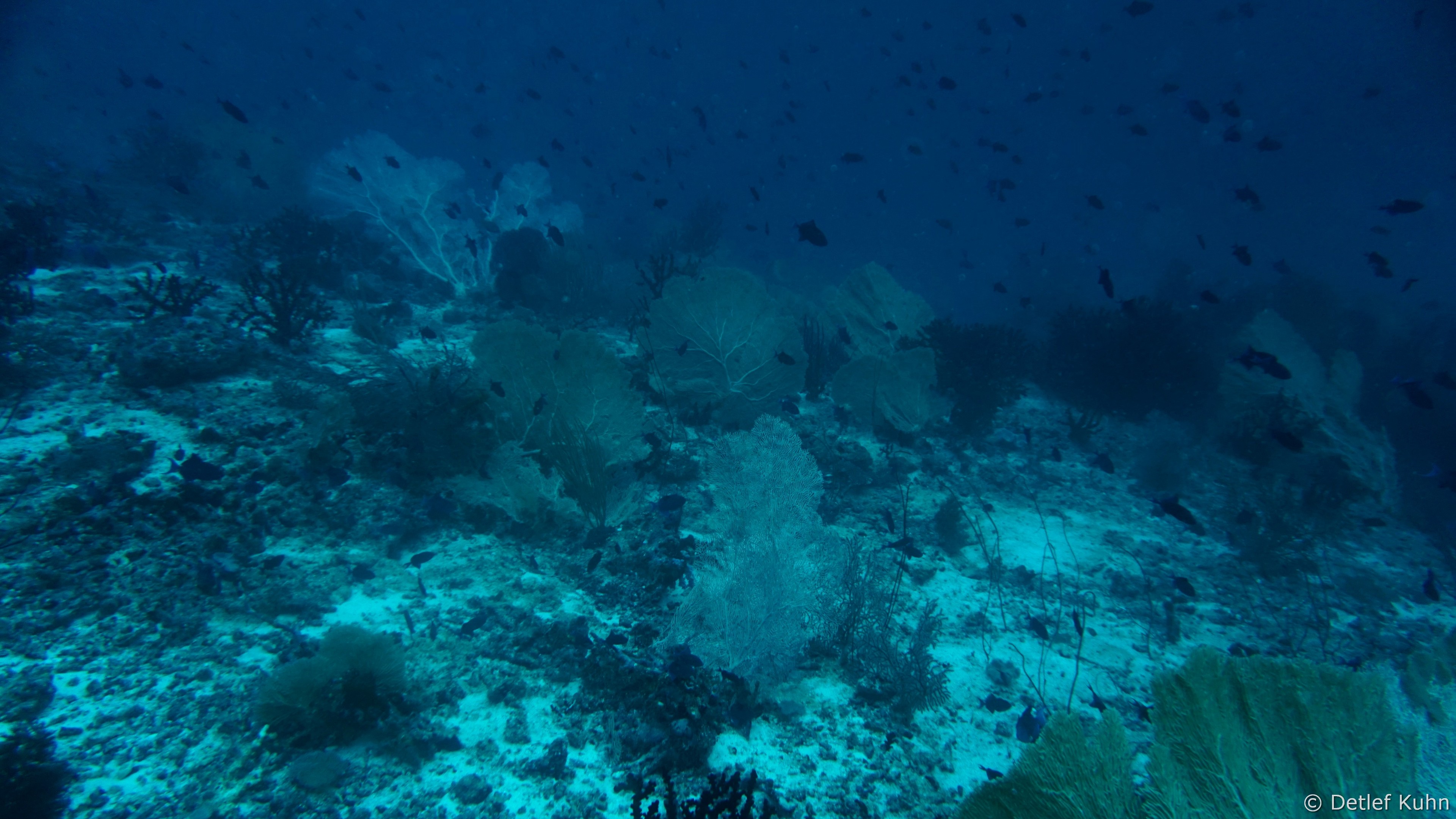 An den Wänden des Canyons sind besonders große Fächerkorallen zu finden,