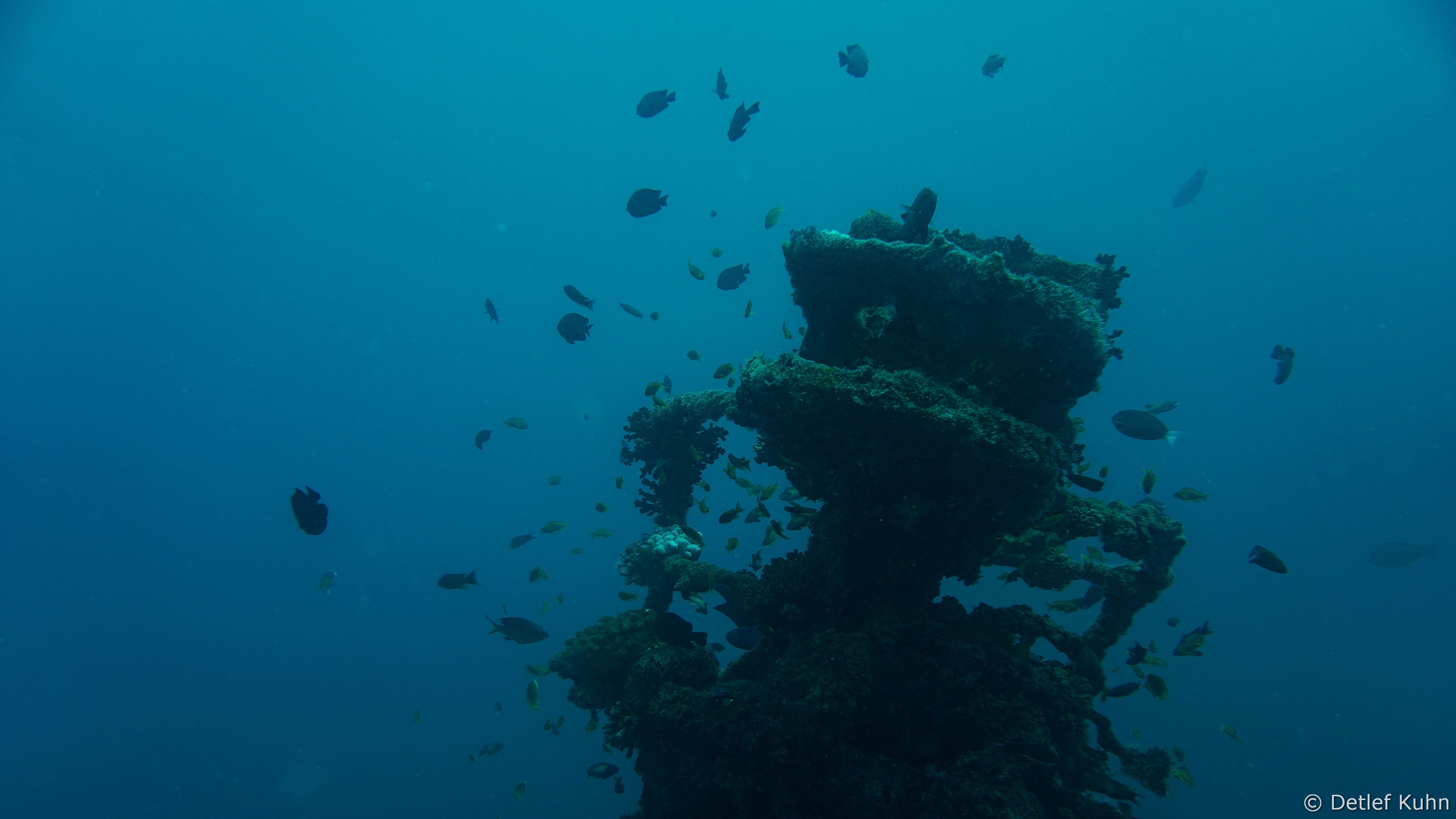 Das Deck des Wracks befindet sich in etwa 20 Metern Tiefe,