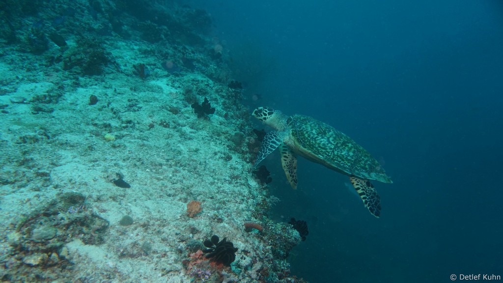 Am Tauchplatz Lux out im Süden des Ari-Atolls sind Walhaie mit hoher Wahrscheinlichkeit anzutreffen.