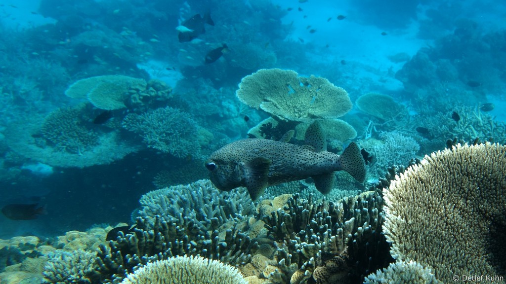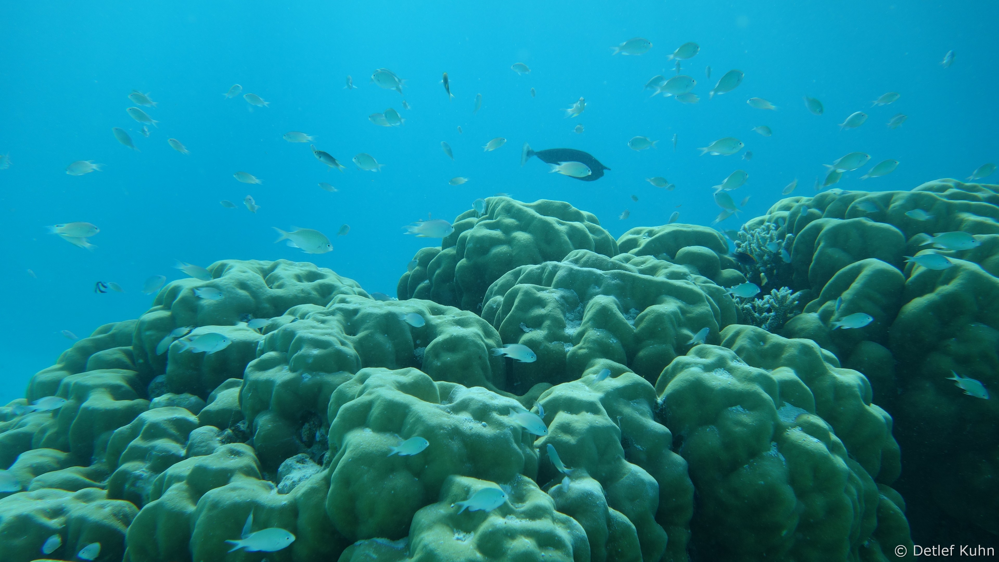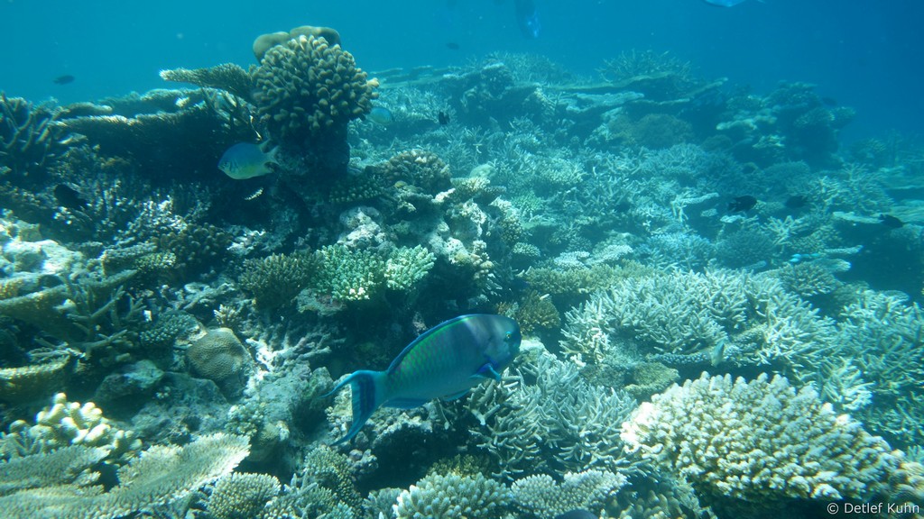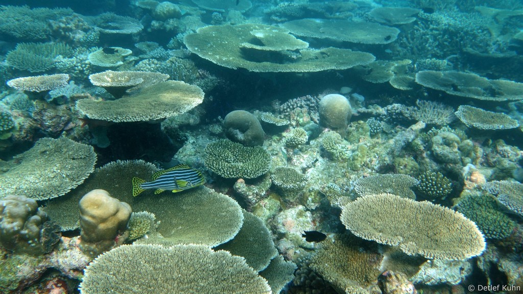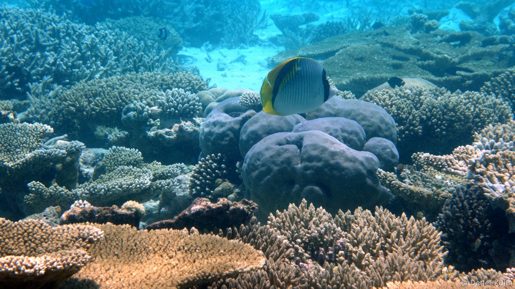 Das die Insel umgebende Hausriff war im Jahr 2014 noch weitgehend intakt und bot eine reiche Artenvielfalt.