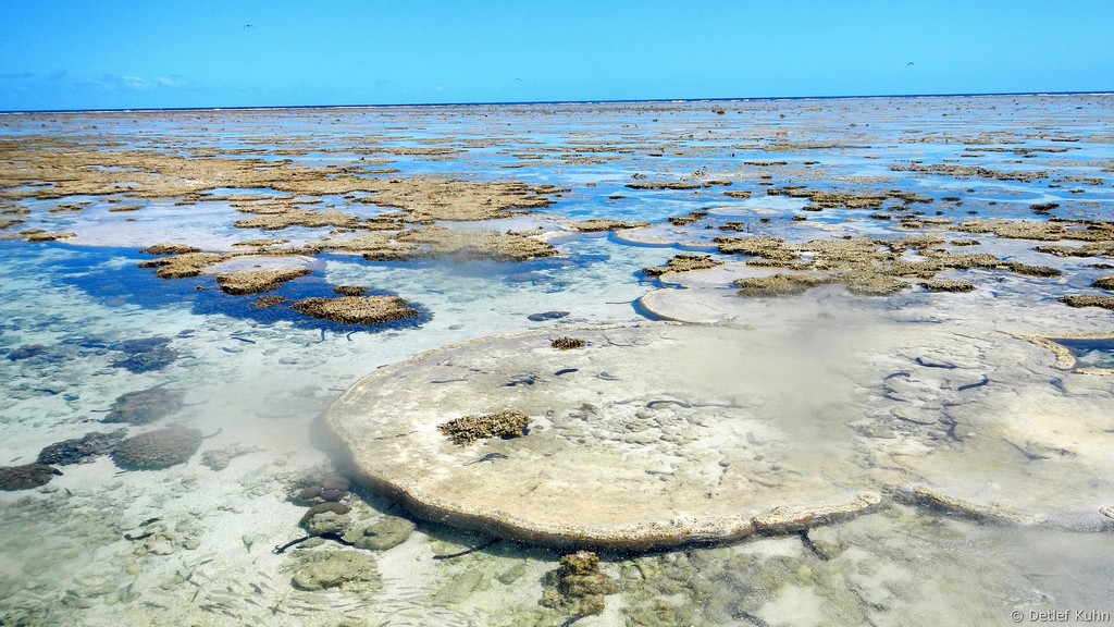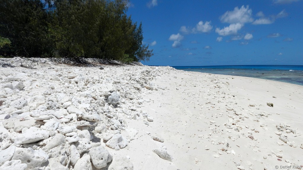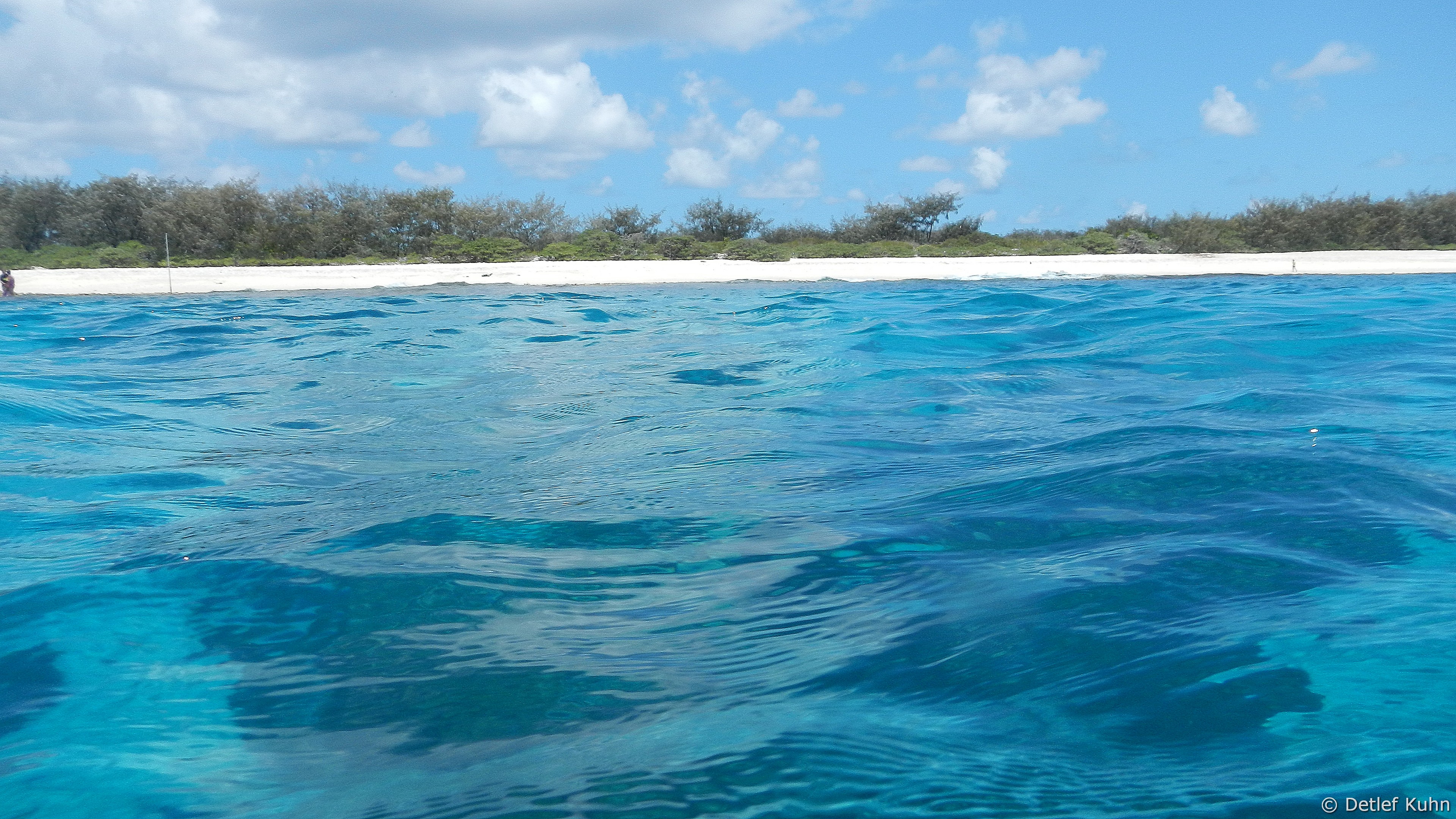Sie lässt sich bequem in gut einer Stunde zu Fuß über den Korallenstrand umrunden.