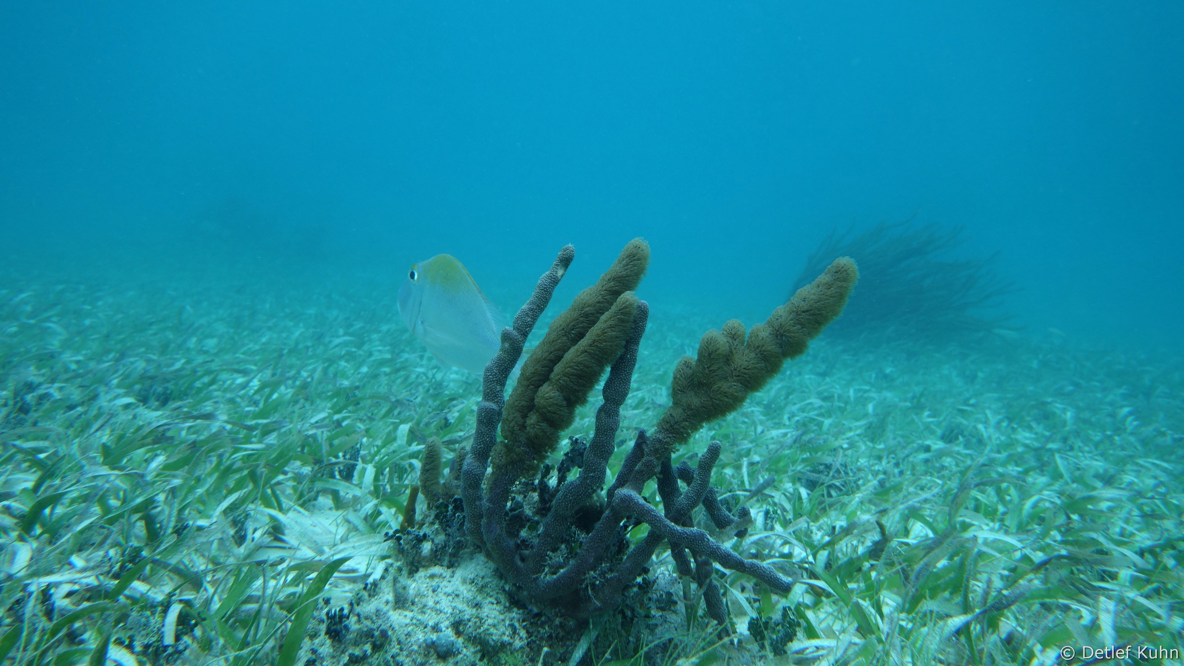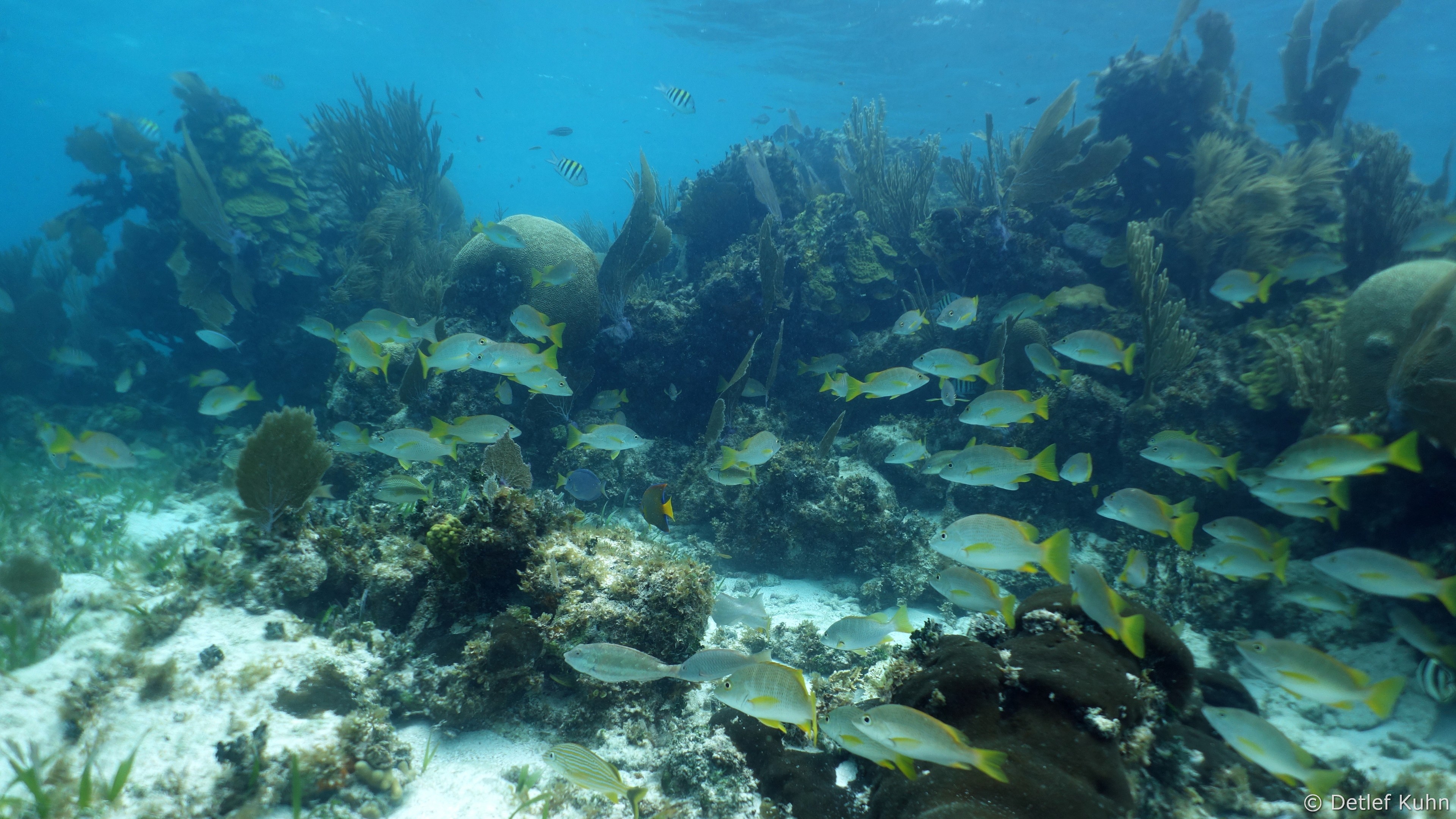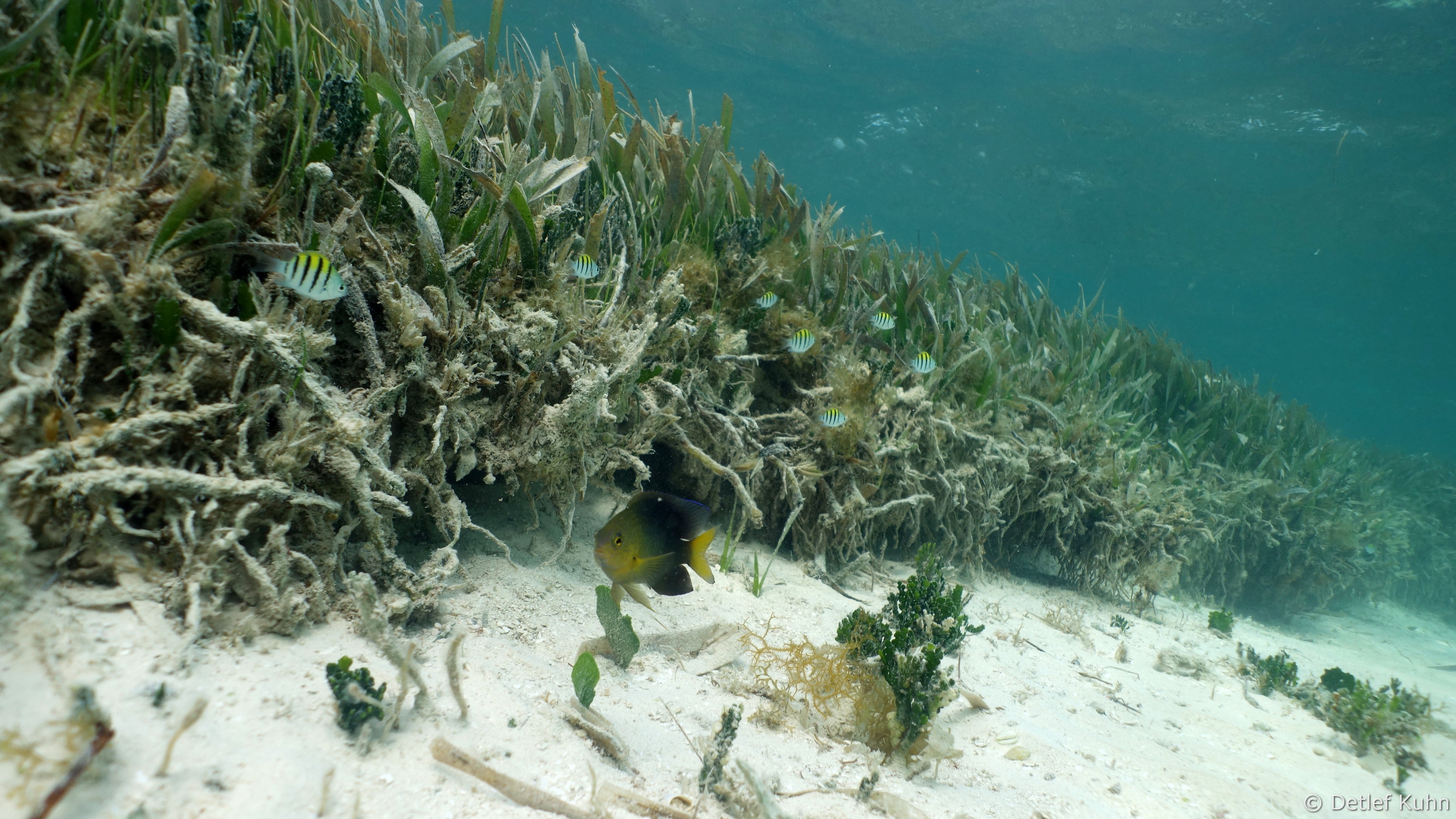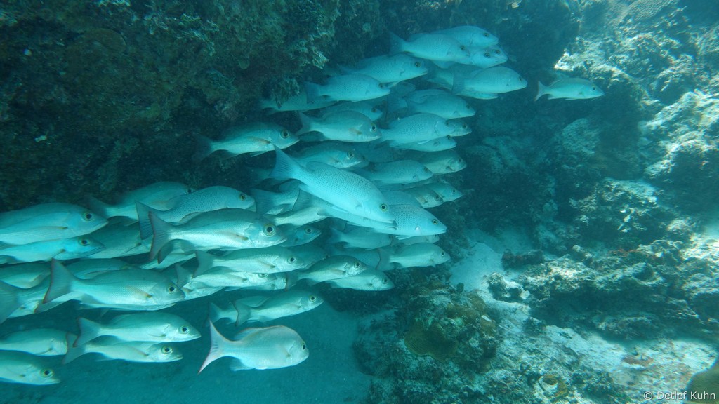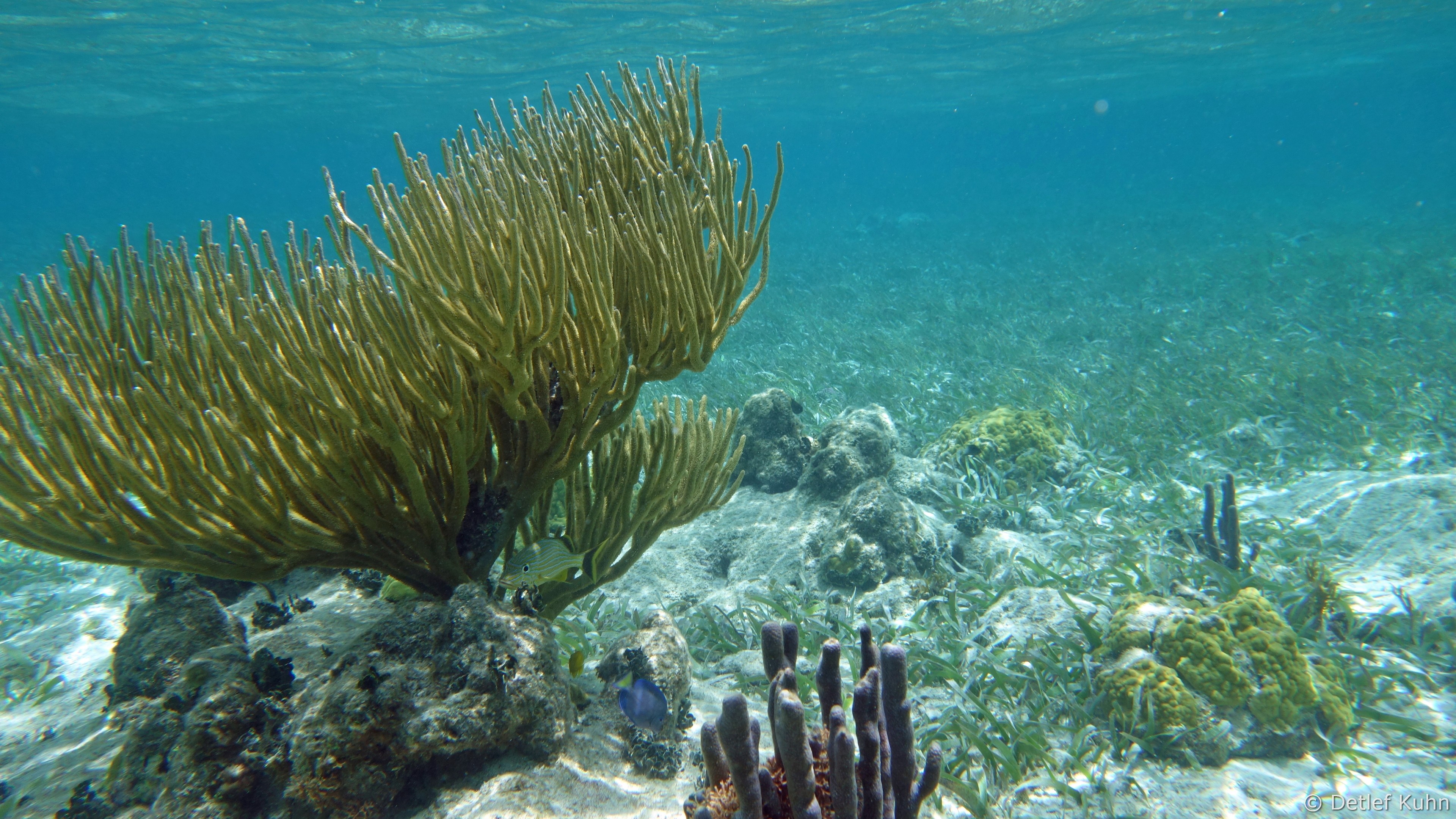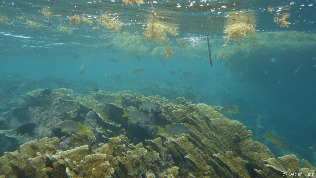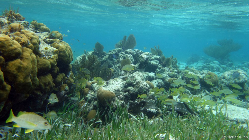 Mexico Rocks besteht aus 3 bis 3,5 Meter hohen Felsen, die von ausgedehnten Seegraswiesen in der Rifflagune umgeben sind.