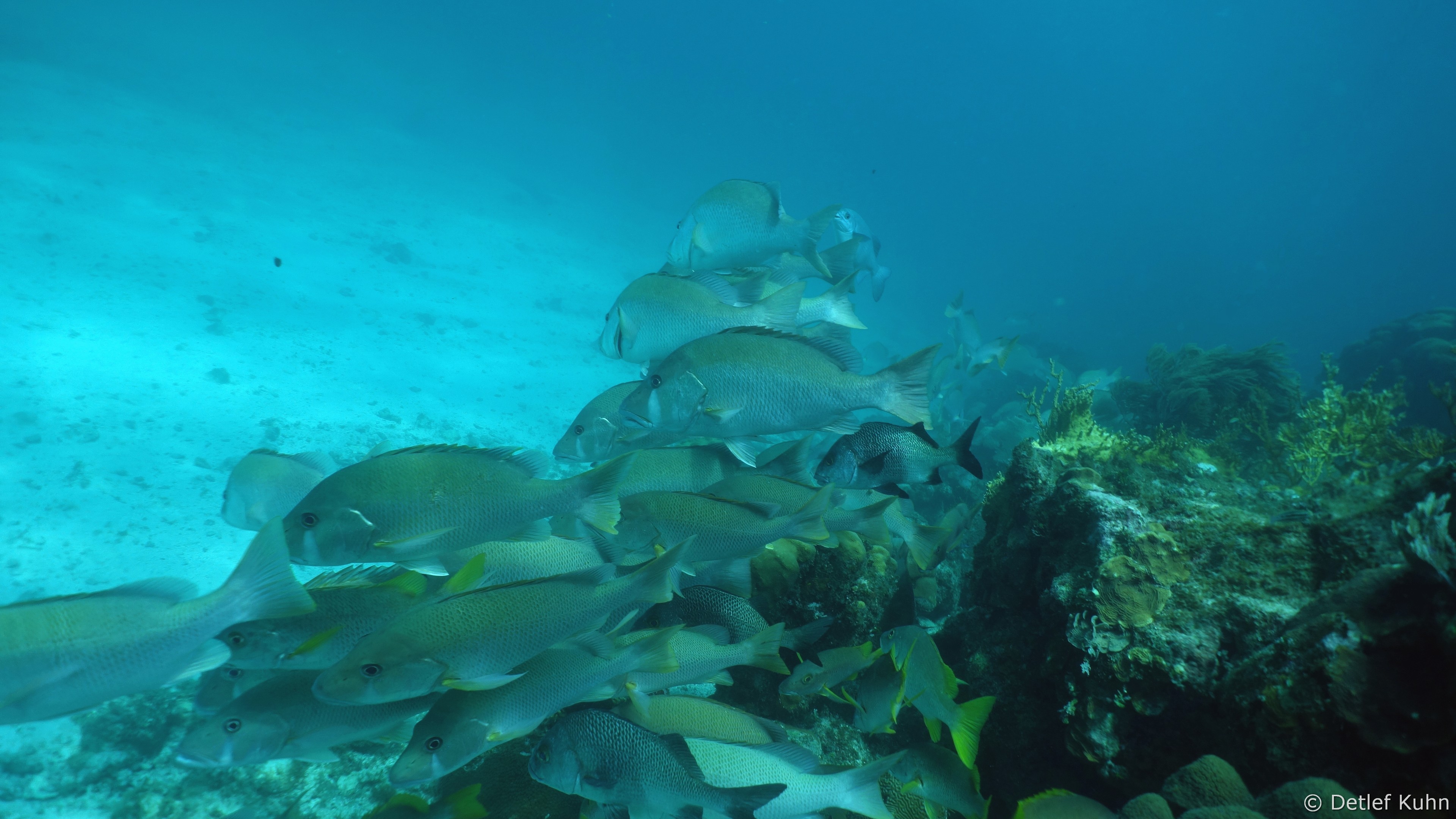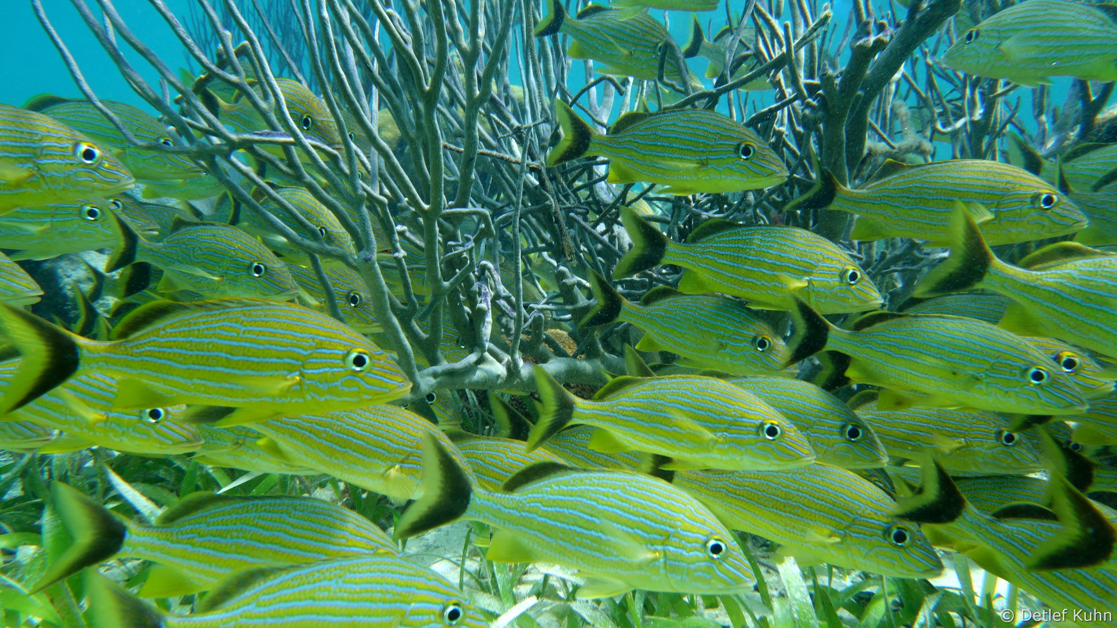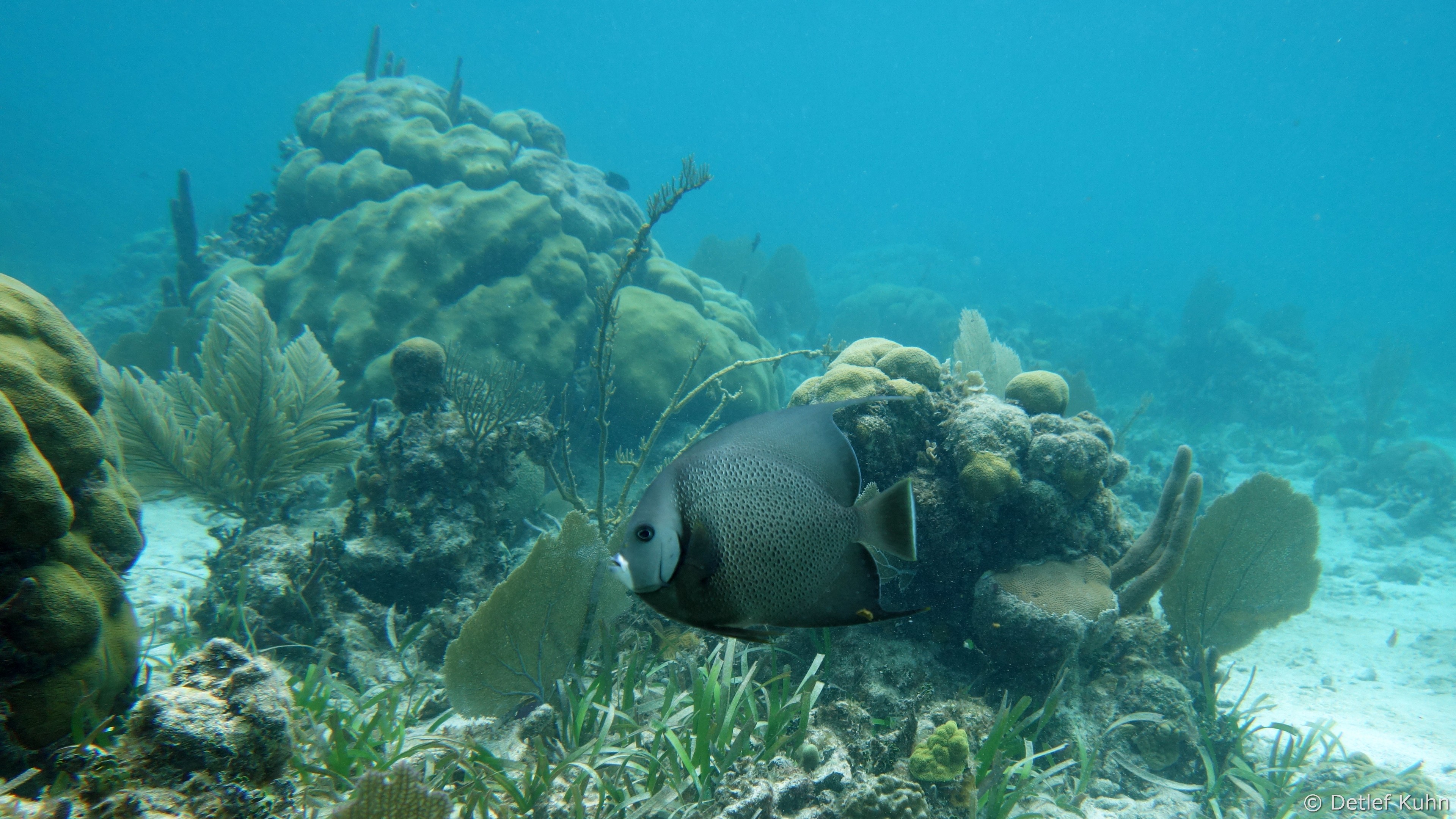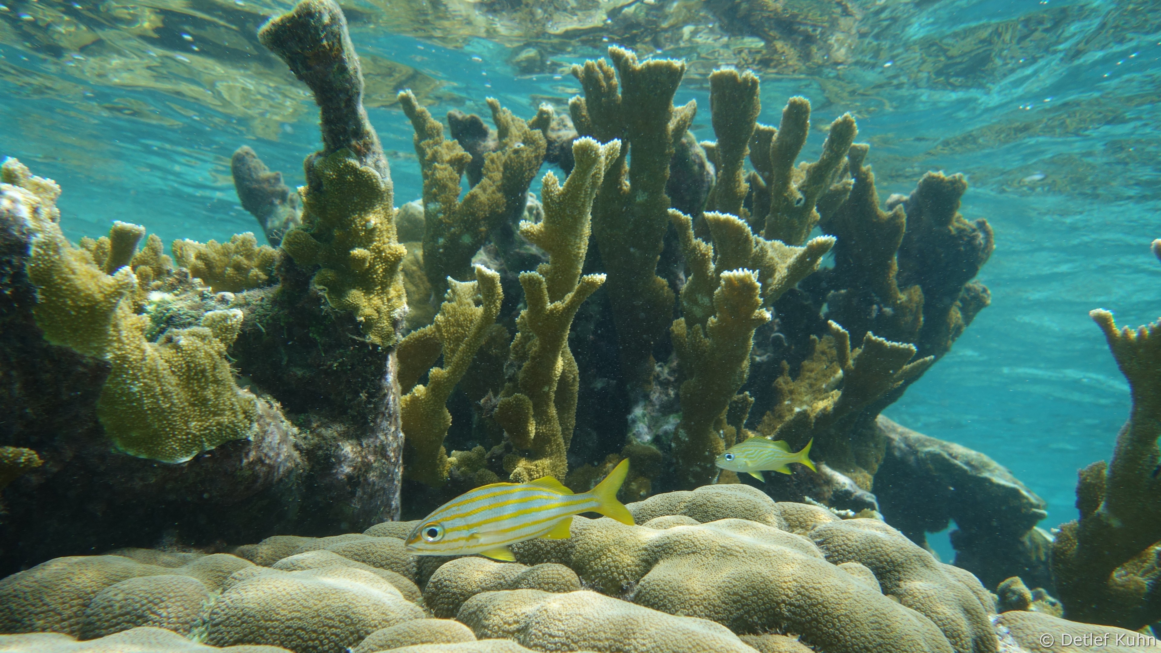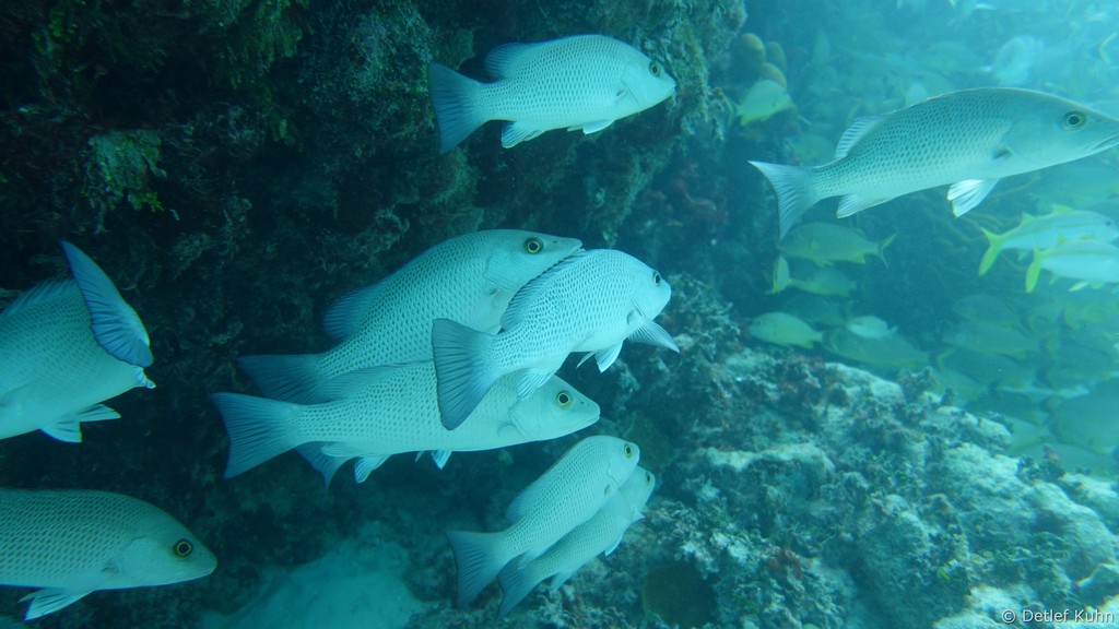 Mexico Rocks besteht aus 3 bis 3,5 Meter hohen Felsen, die von ausgedehnten Seegraswiesen in der Rifflagune umgeben sind.