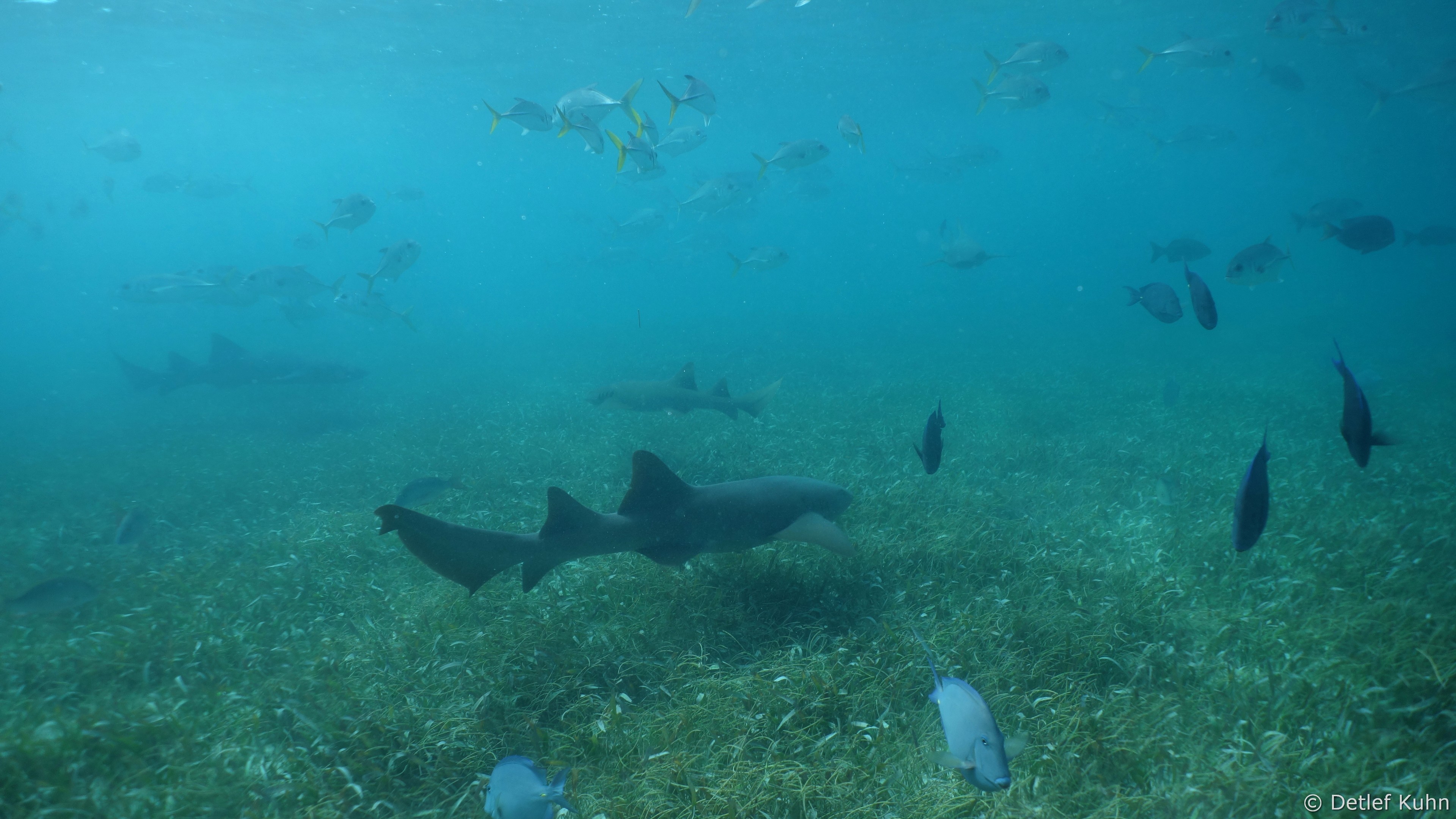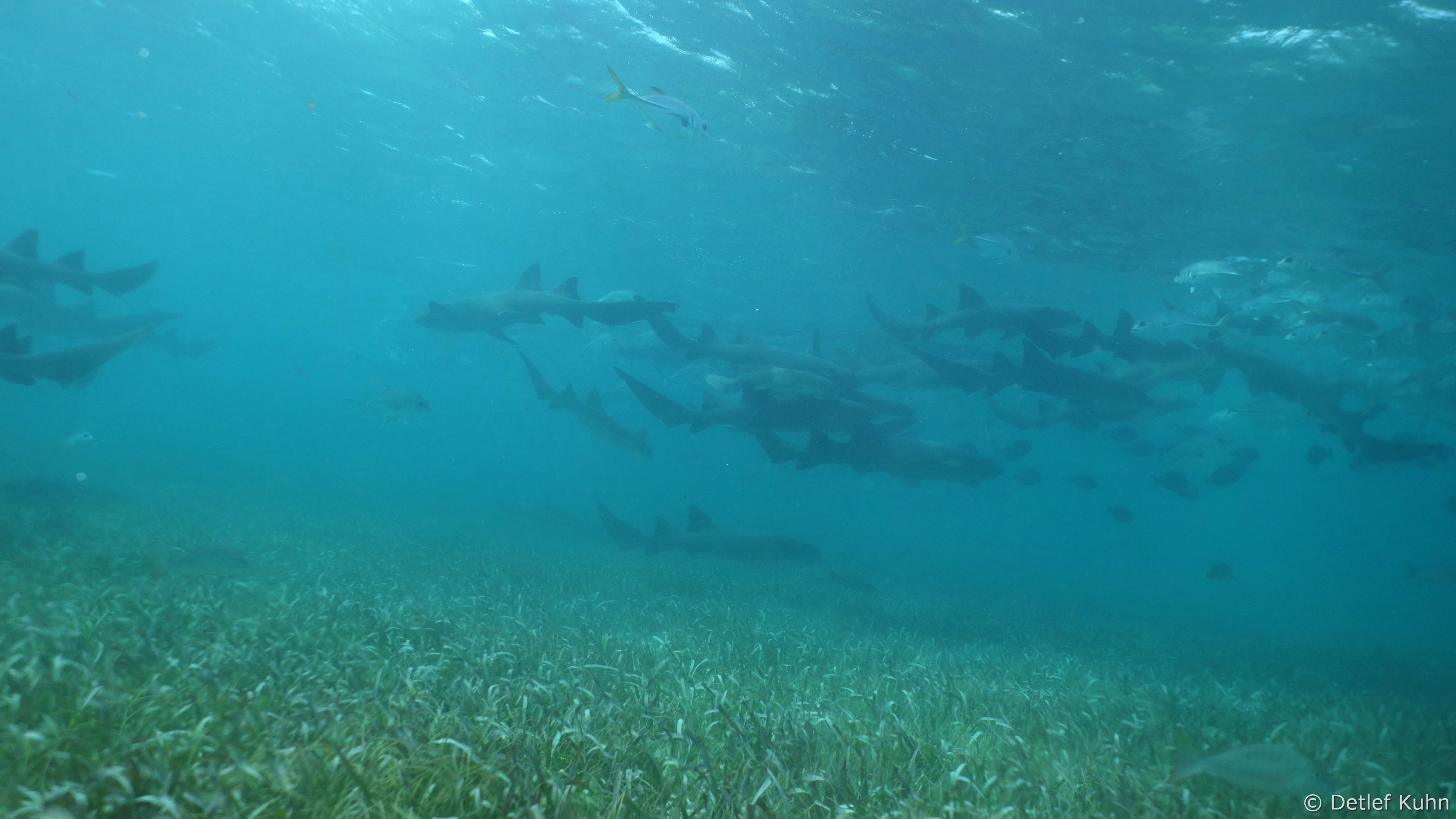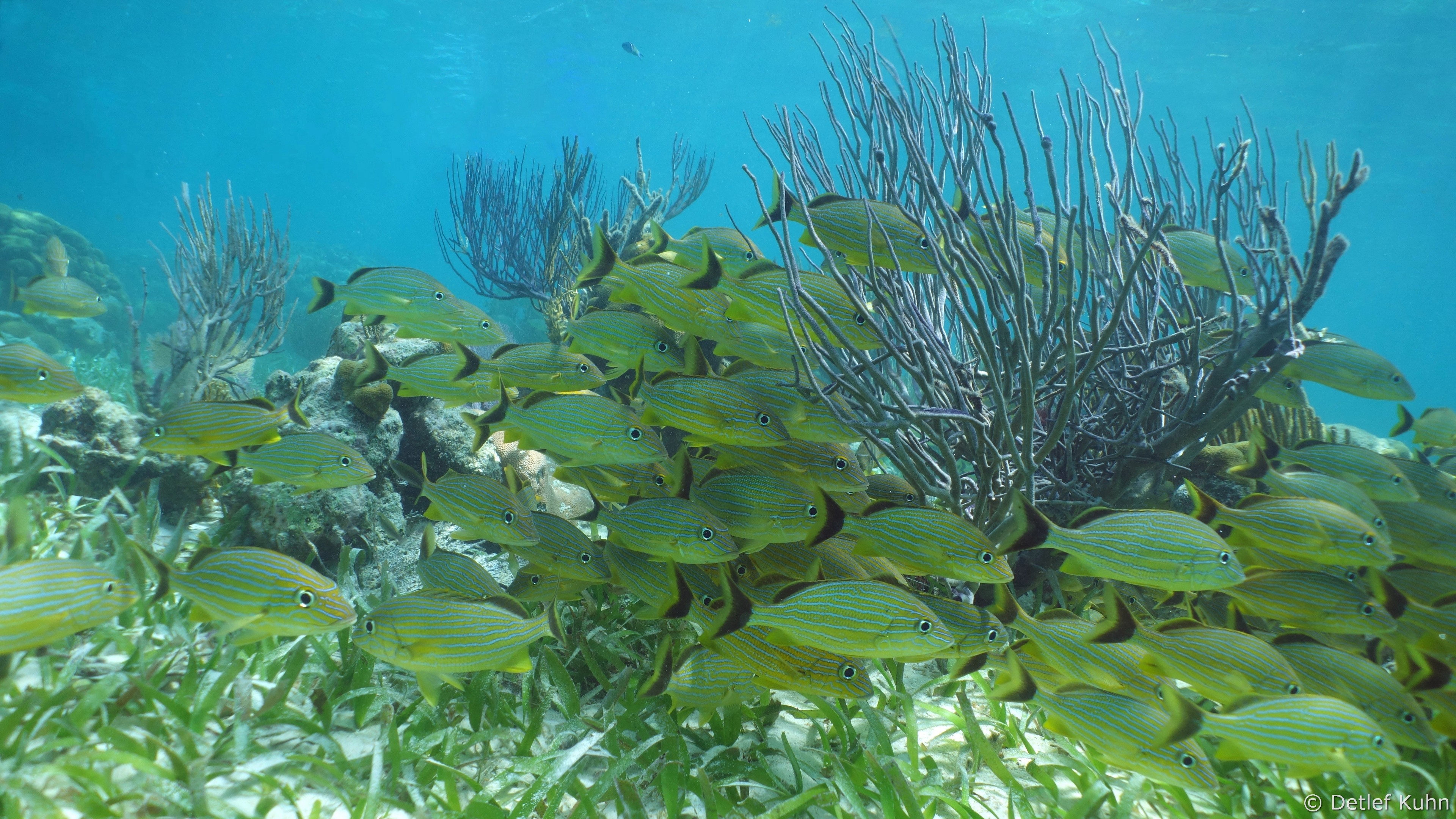 Seegrawiesen in der Rifflagune bei X'tan Ha, ca.10 nördlich von San Pedro.