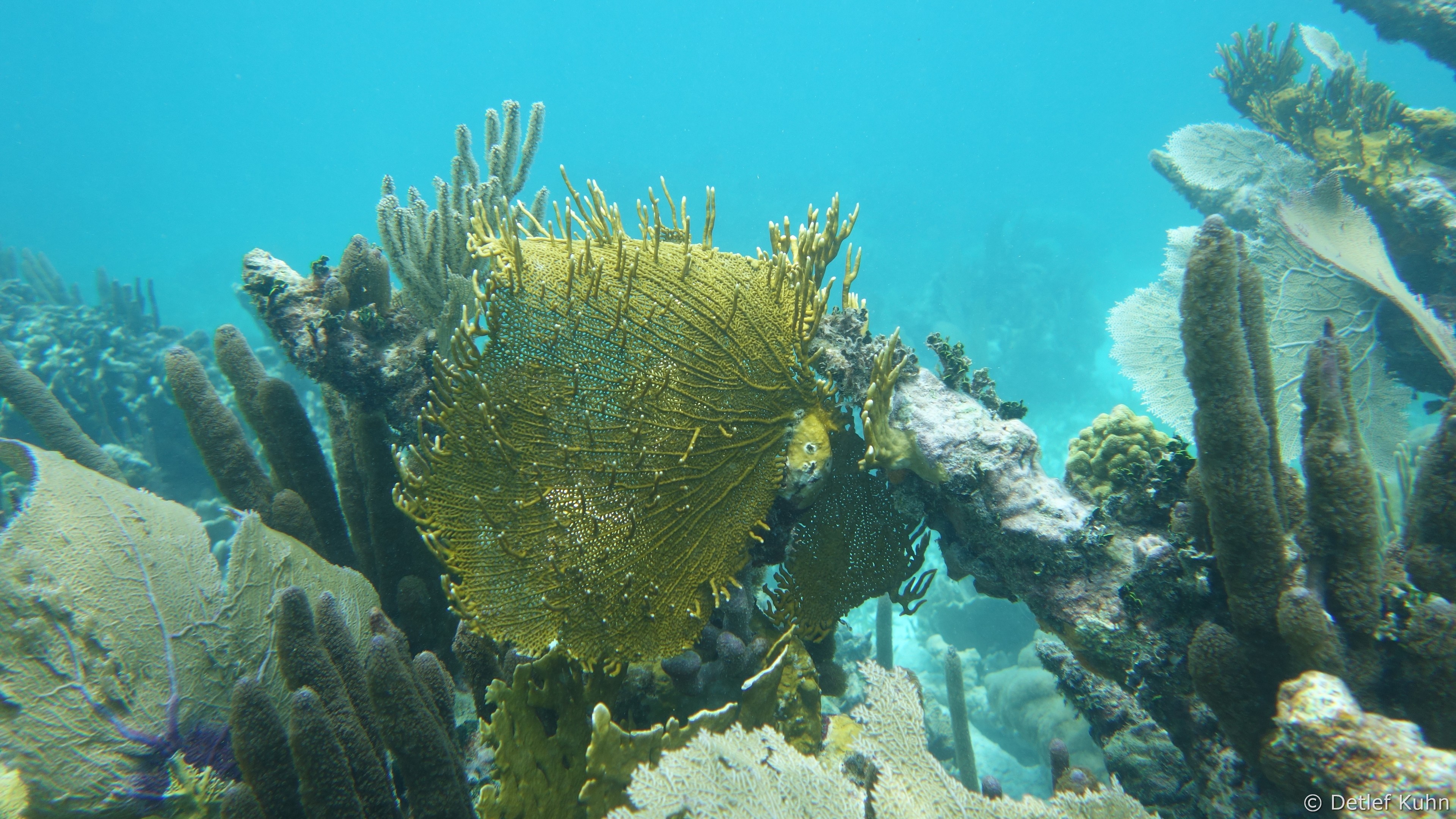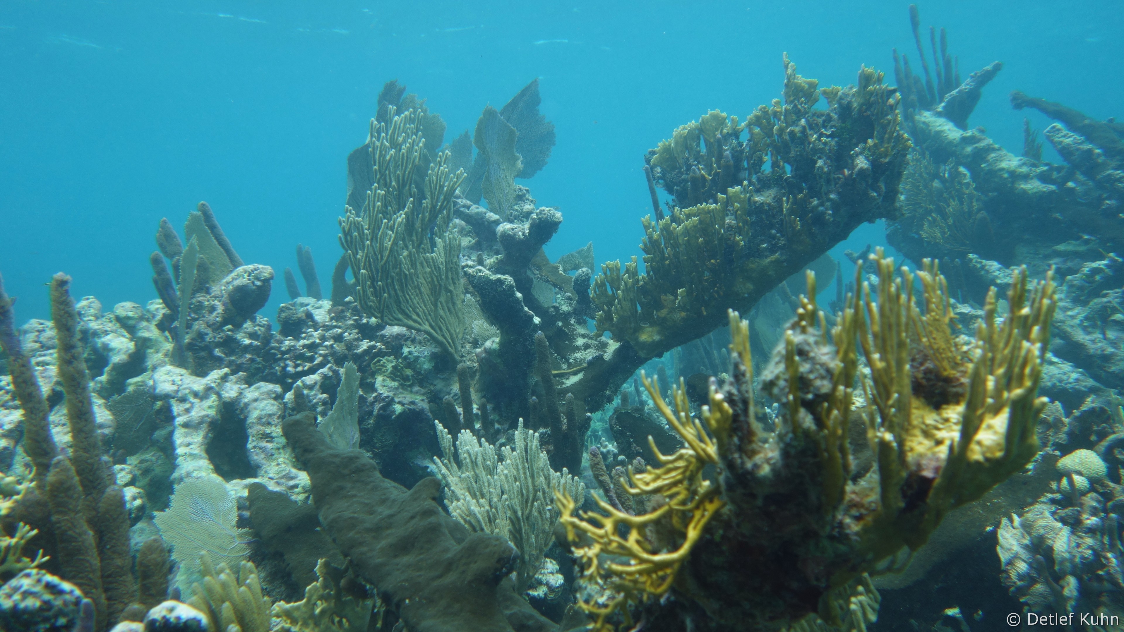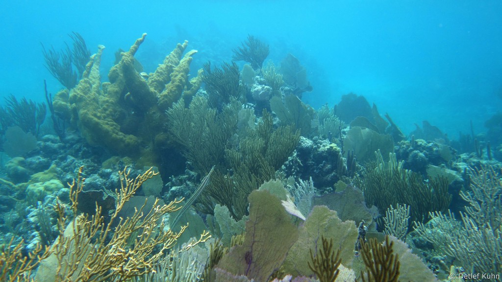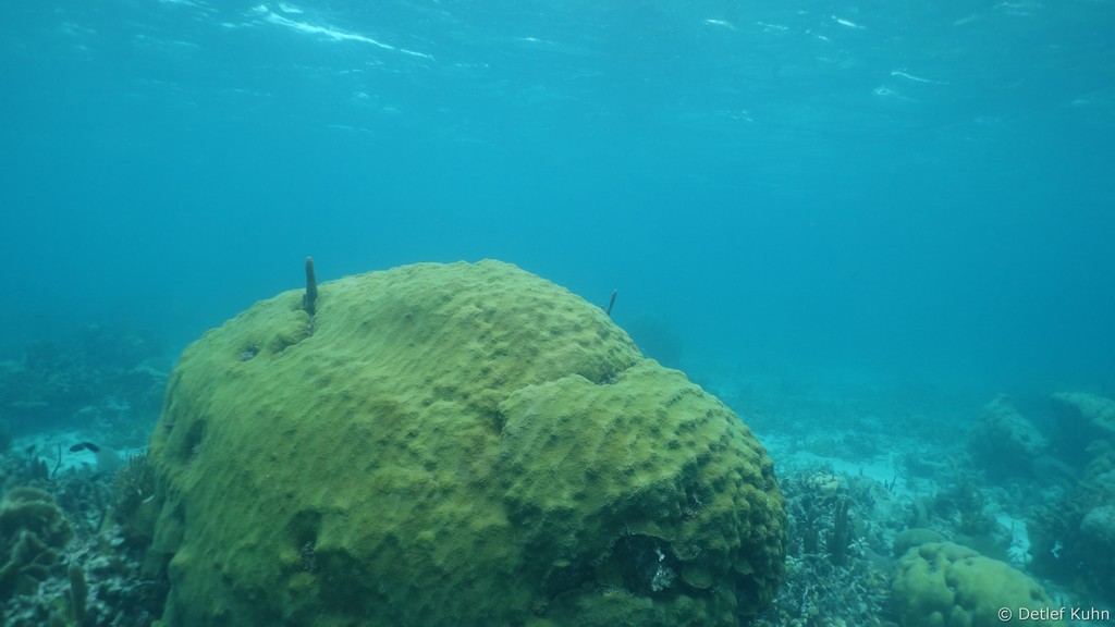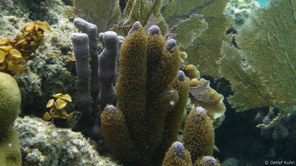 Auf ihrer Oberfläche haben sich zahlreiche Steinkorallen, Weichkorallen und Gorgonien angesiedelt,