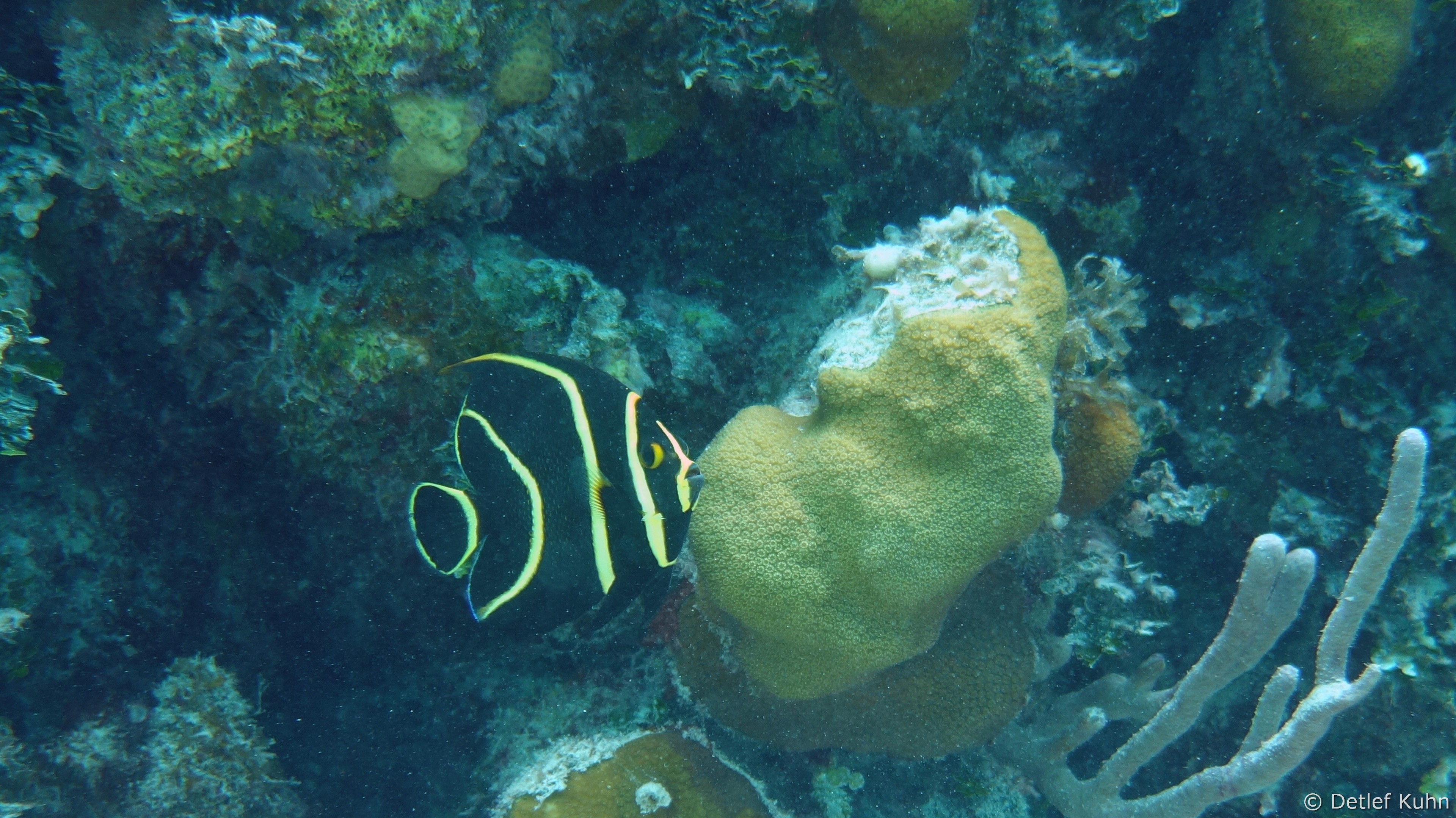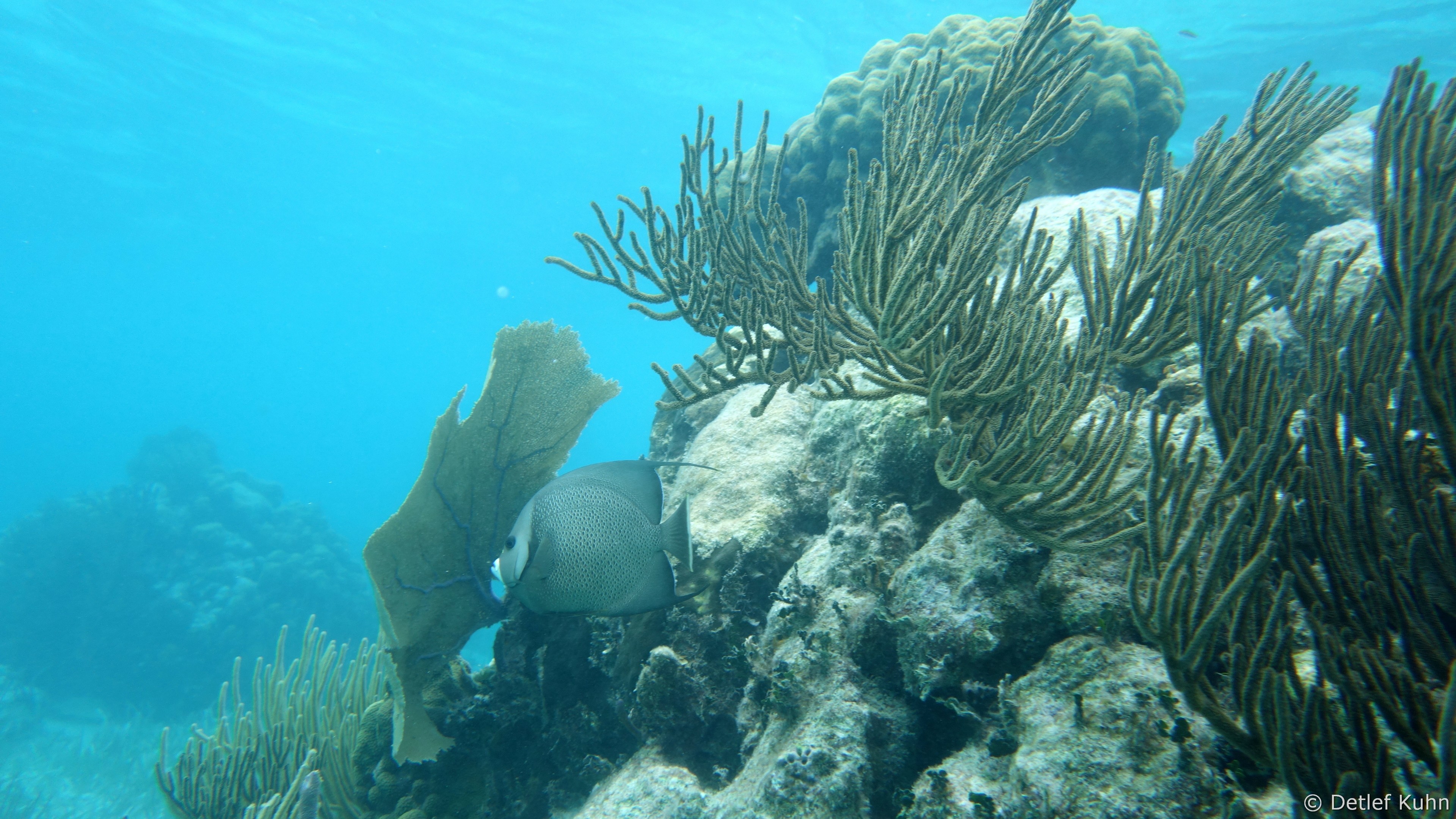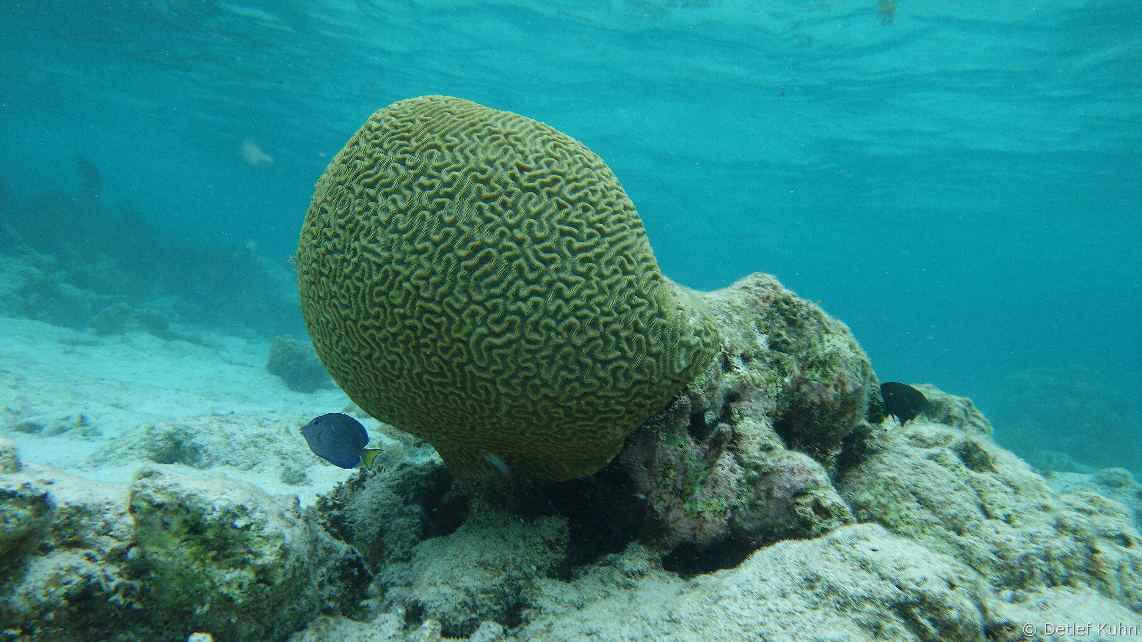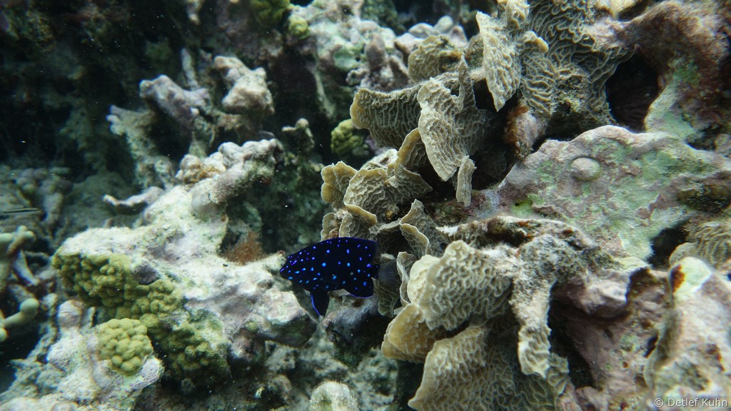 Auf ihrer Oberfläche haben sich zahlreiche Steinkorallen, Weichkorallen und Gorgonien angesiedelt,
