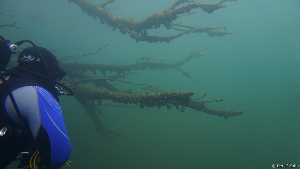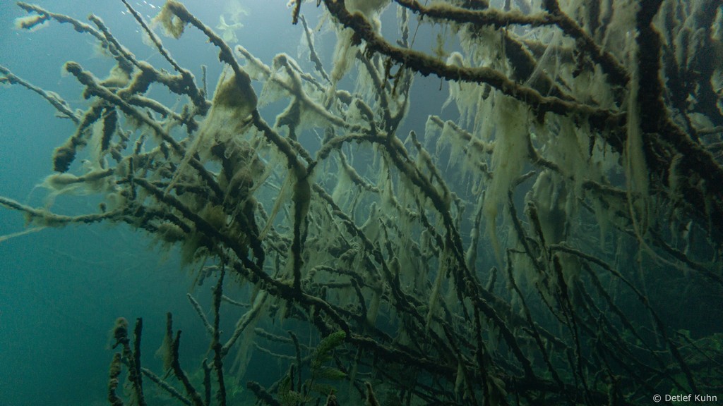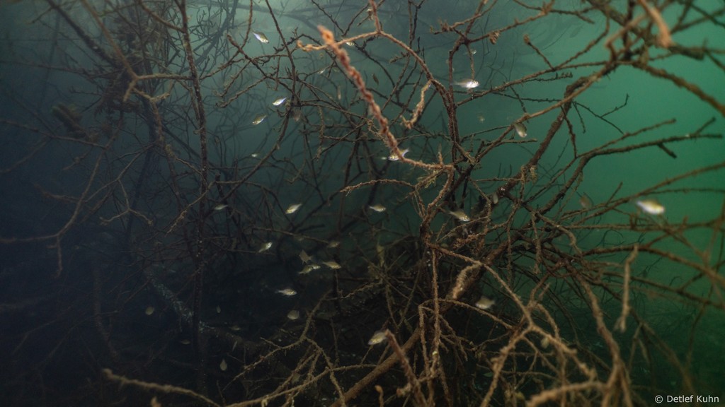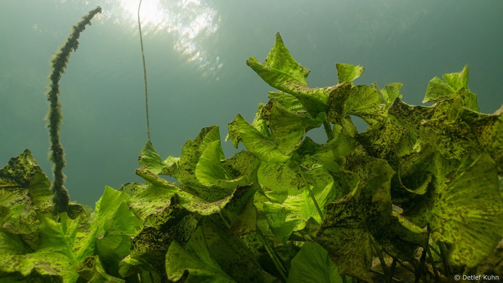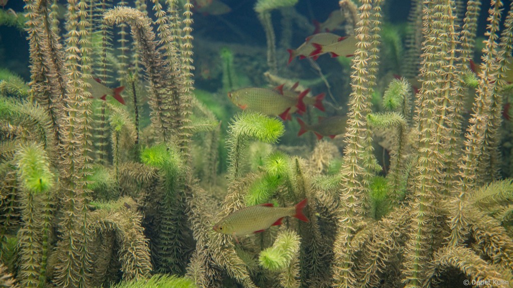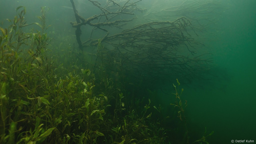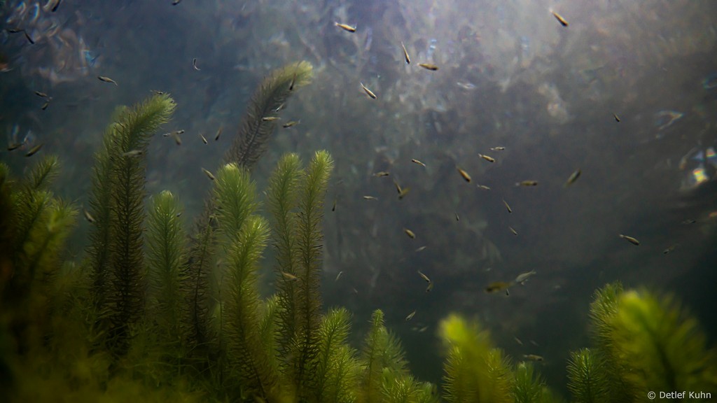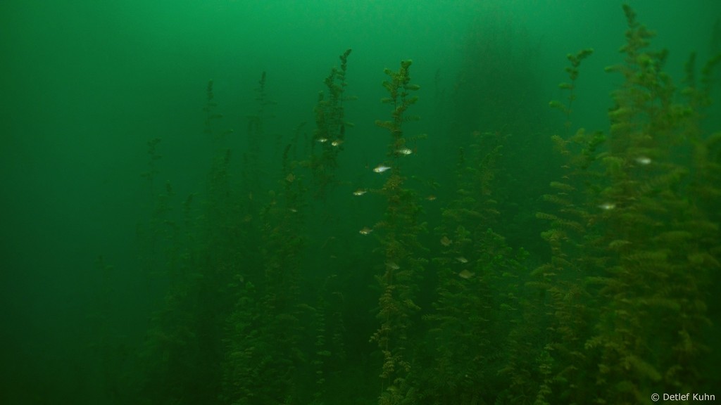 Schon unmittelbar unter der Wasseroberfläche hat man im Uferbereich, dem Litoral, den Eindruck man ist in einem Aquarium.
