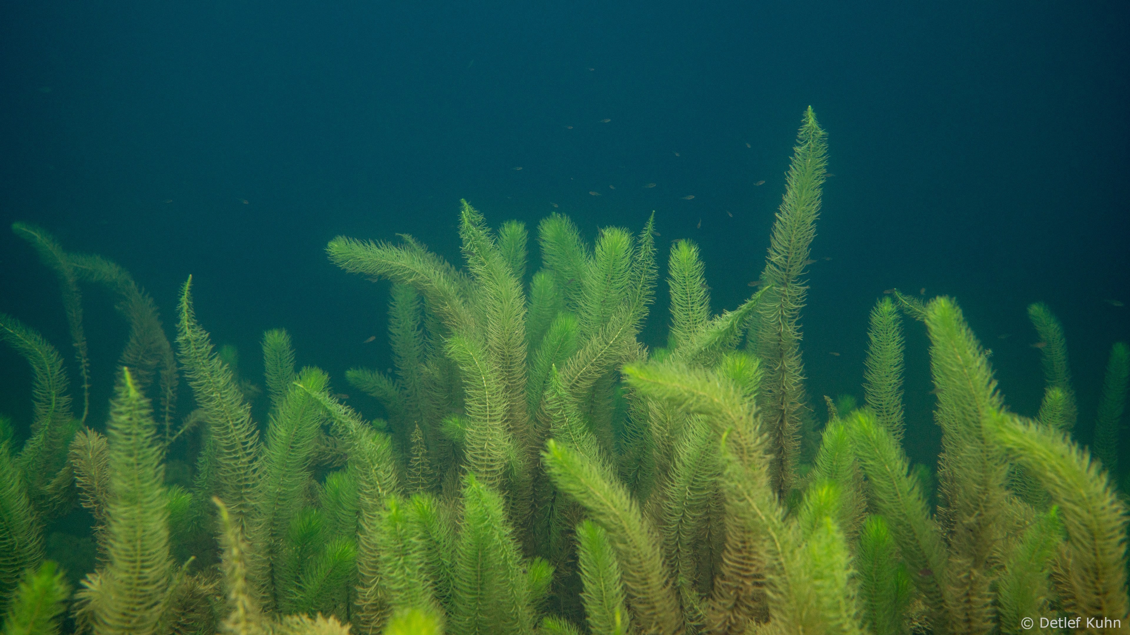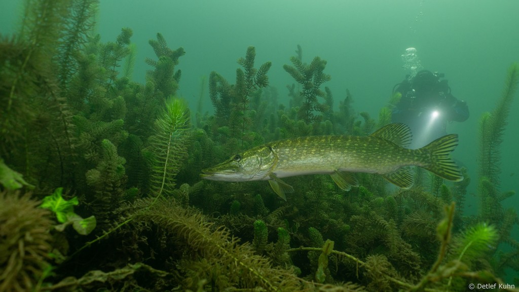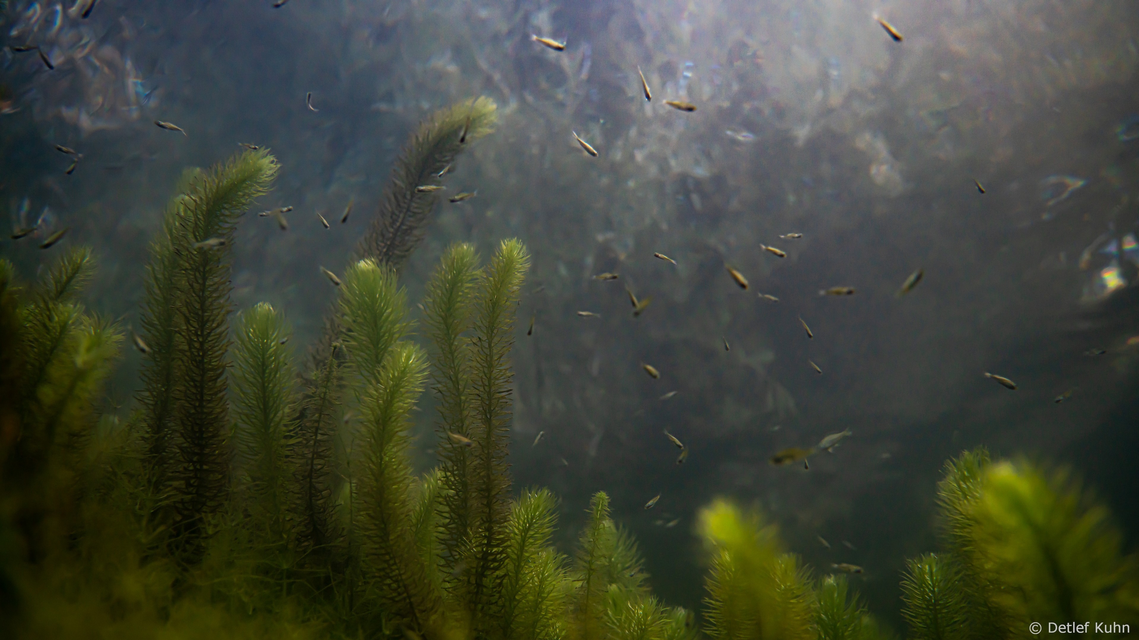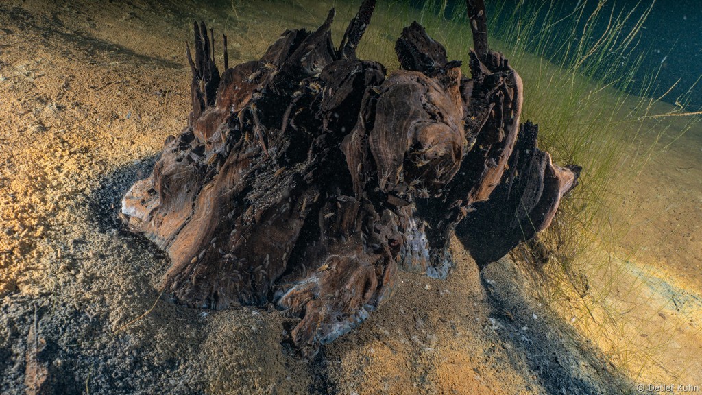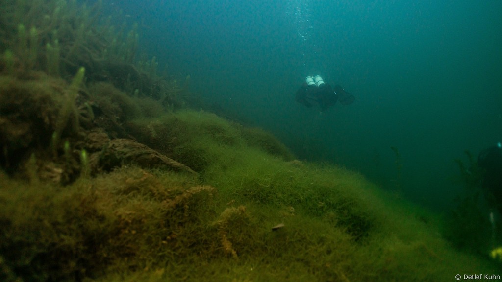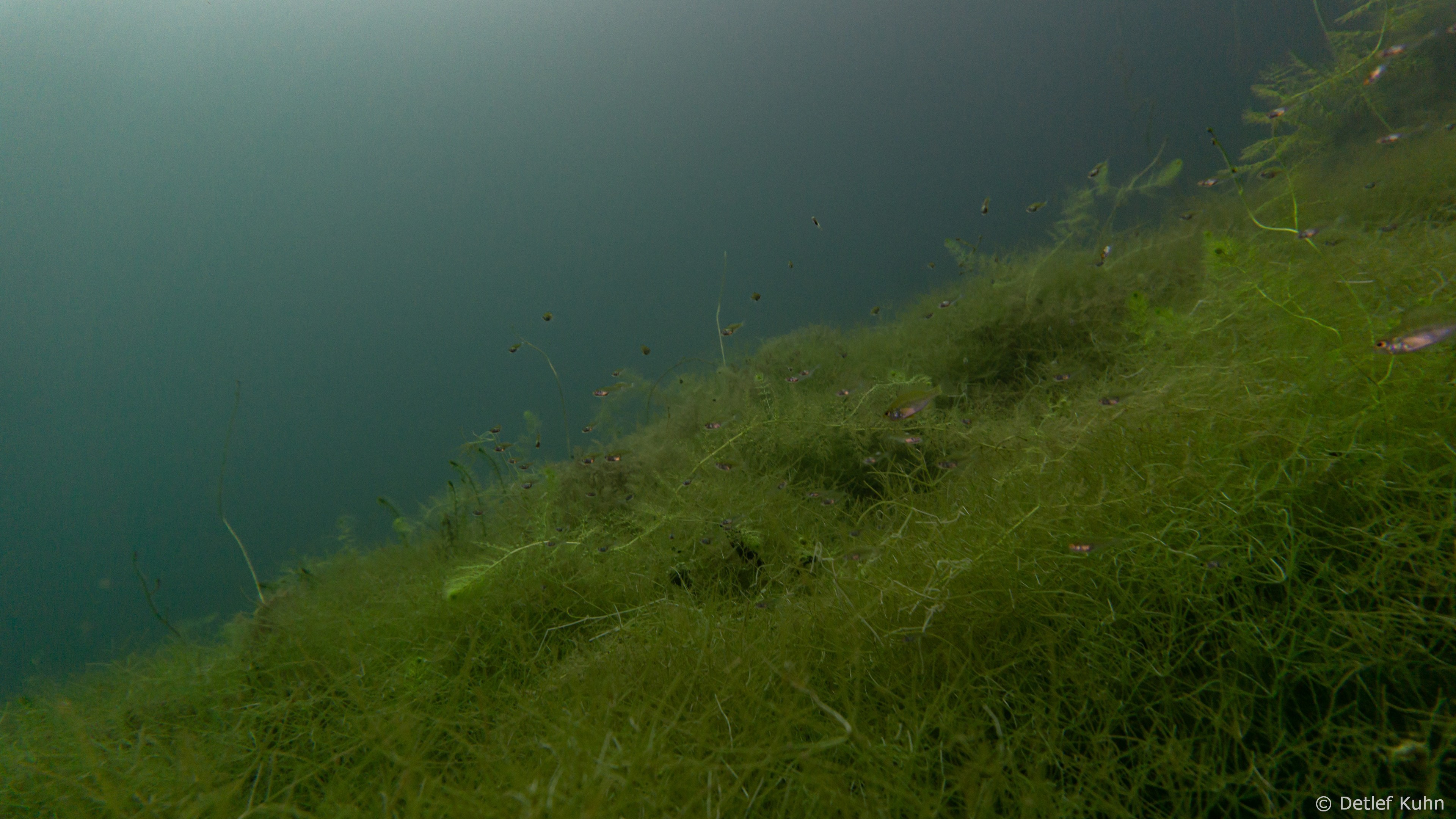 Schon unmittelbar unter der Wasseroberfläche hat man im Uferbereich, dem Litoral, den Eindruck man ist in einem Aquarium.