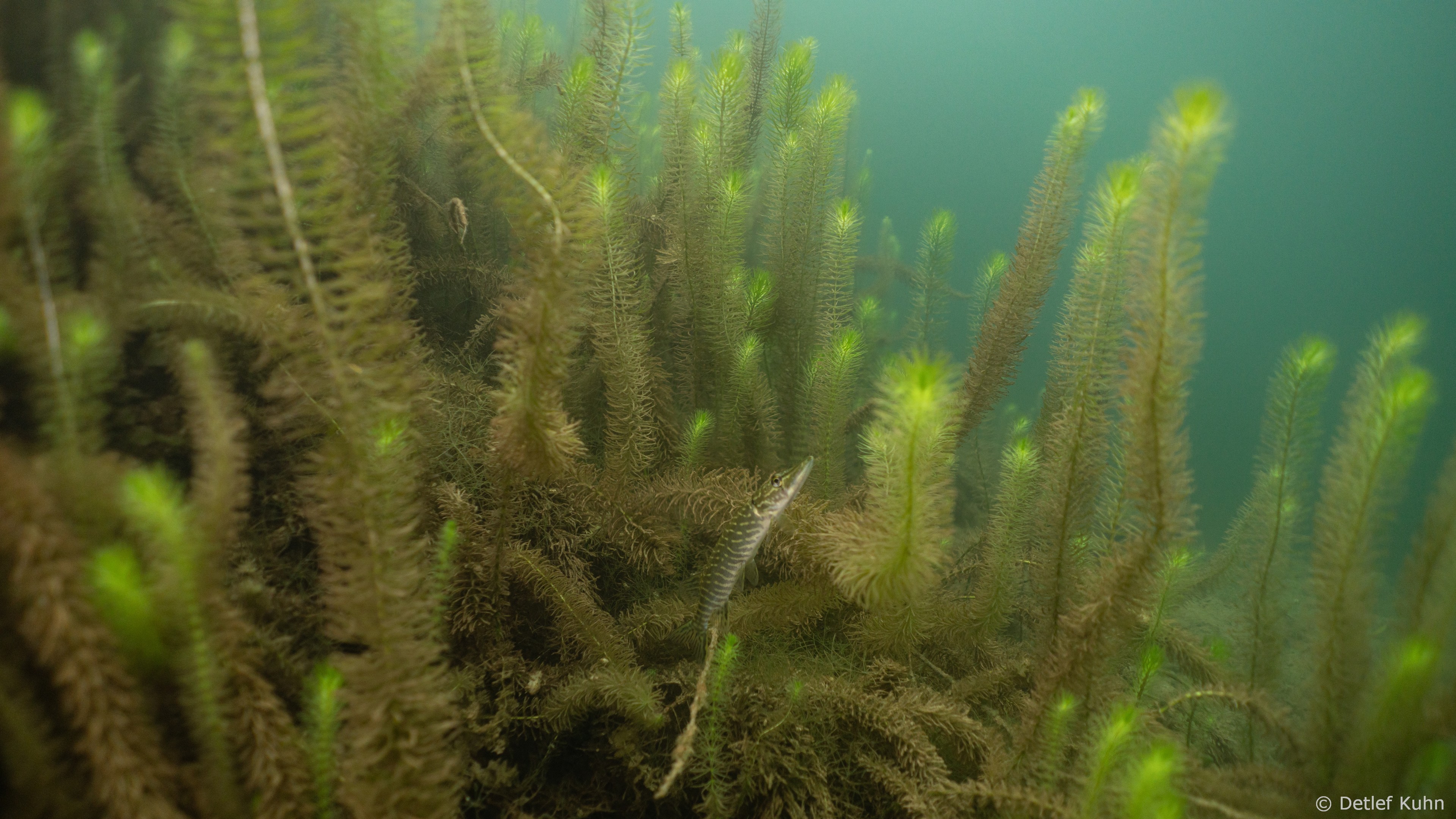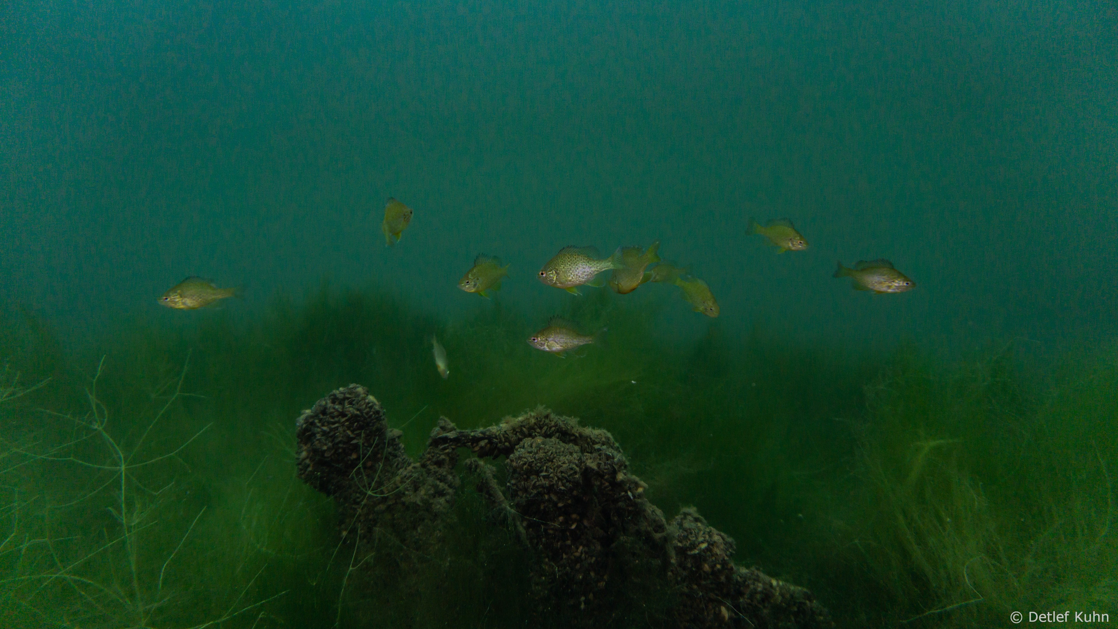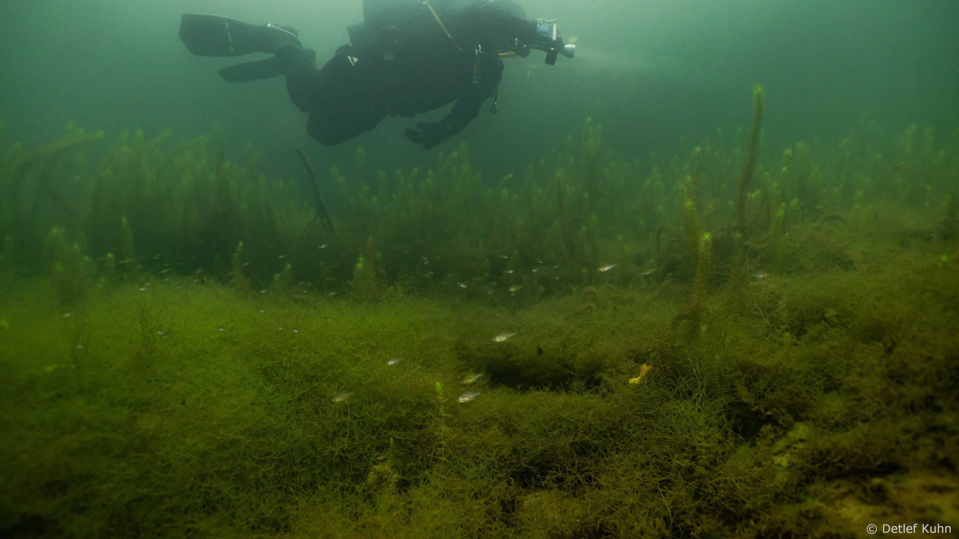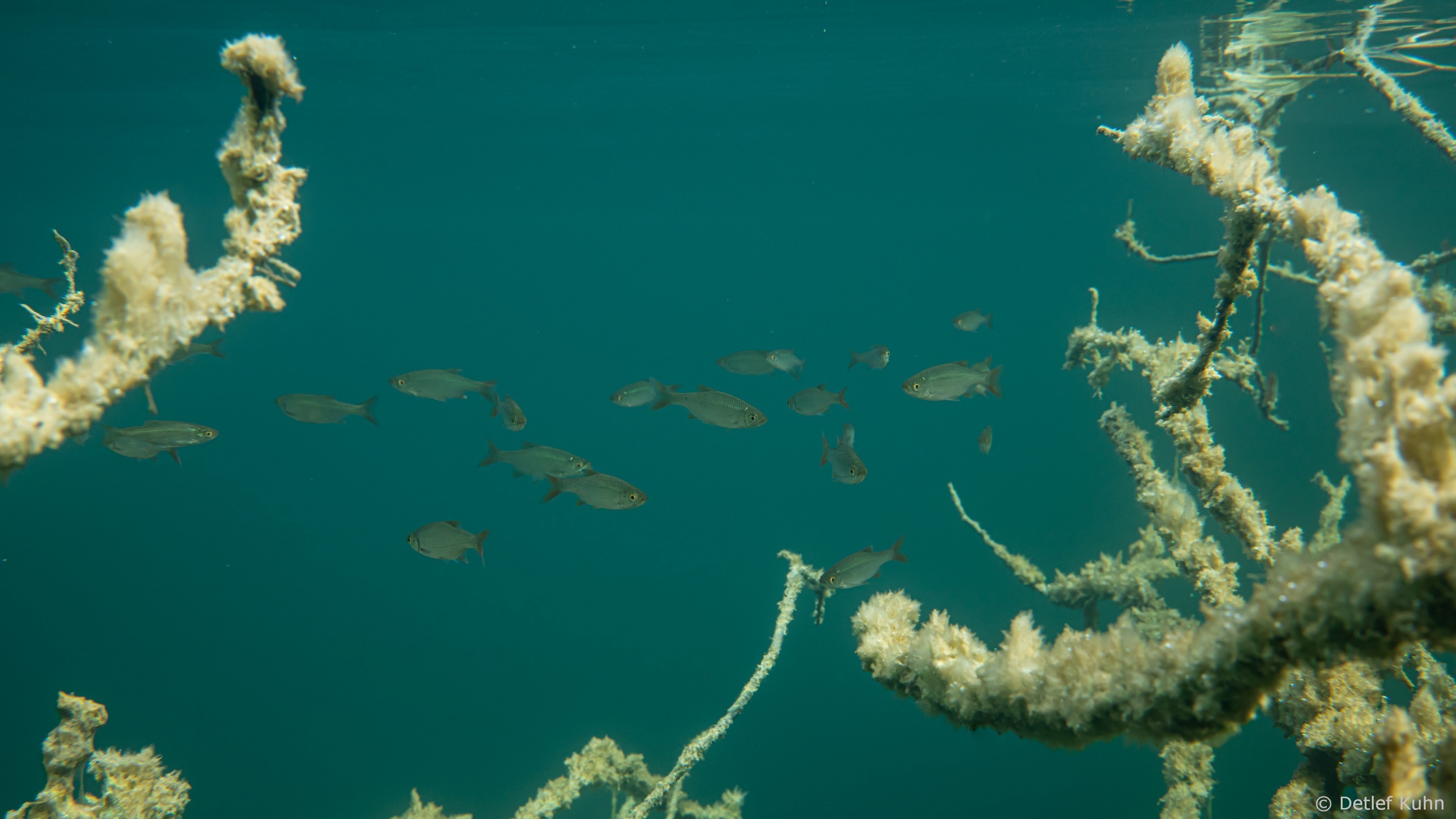 Schon unmittelbar unter der Wasseroberfläche hat man im Uferbereich, dem Litoral, den Eindruck man ist in einem Aquarium.