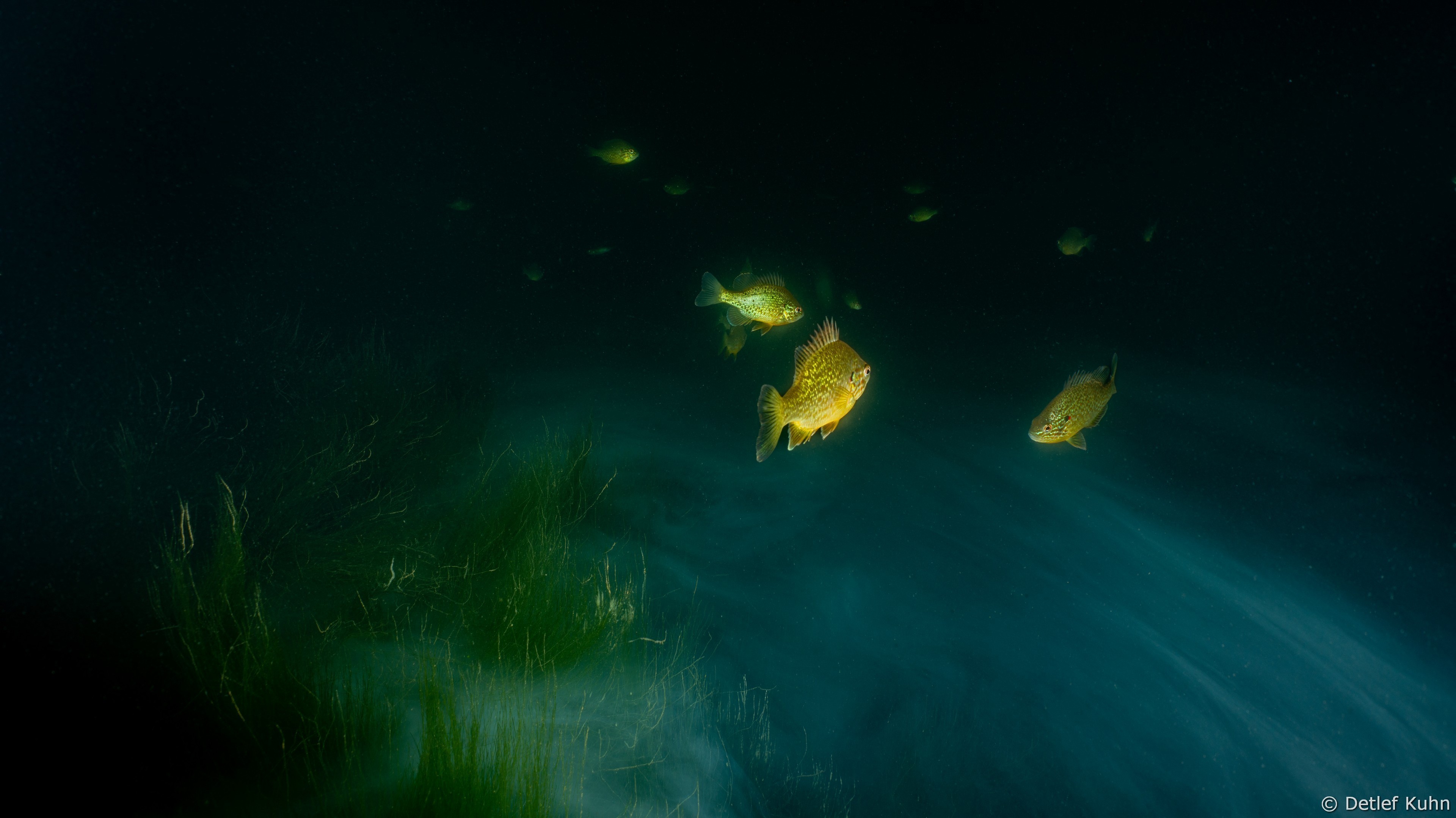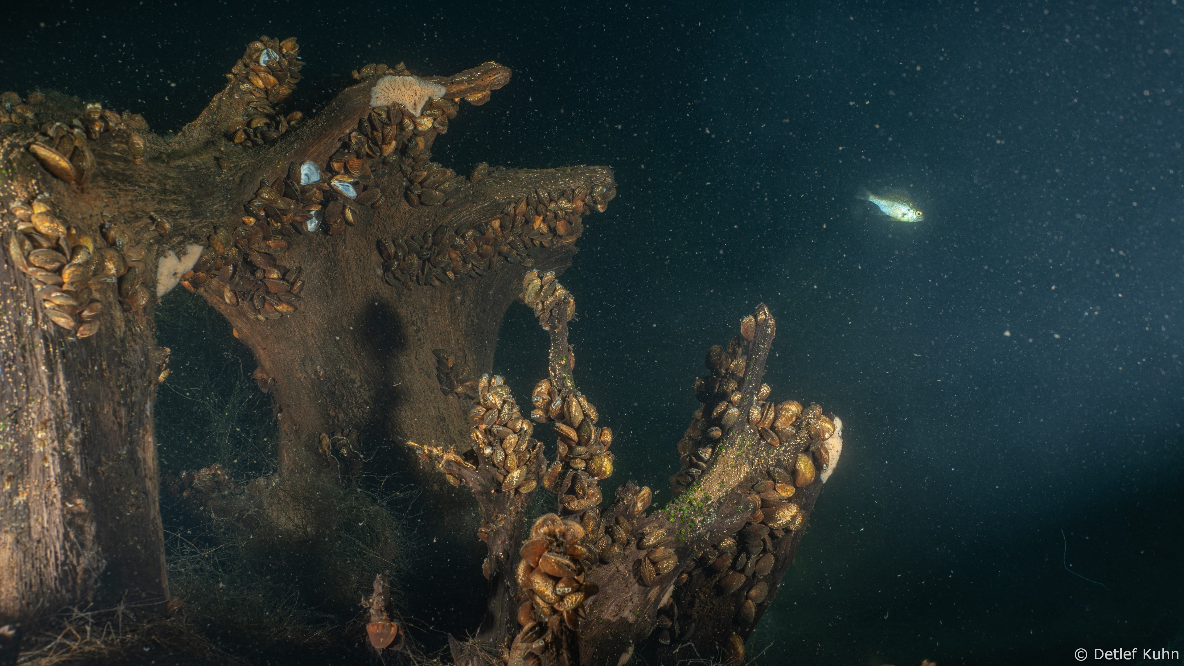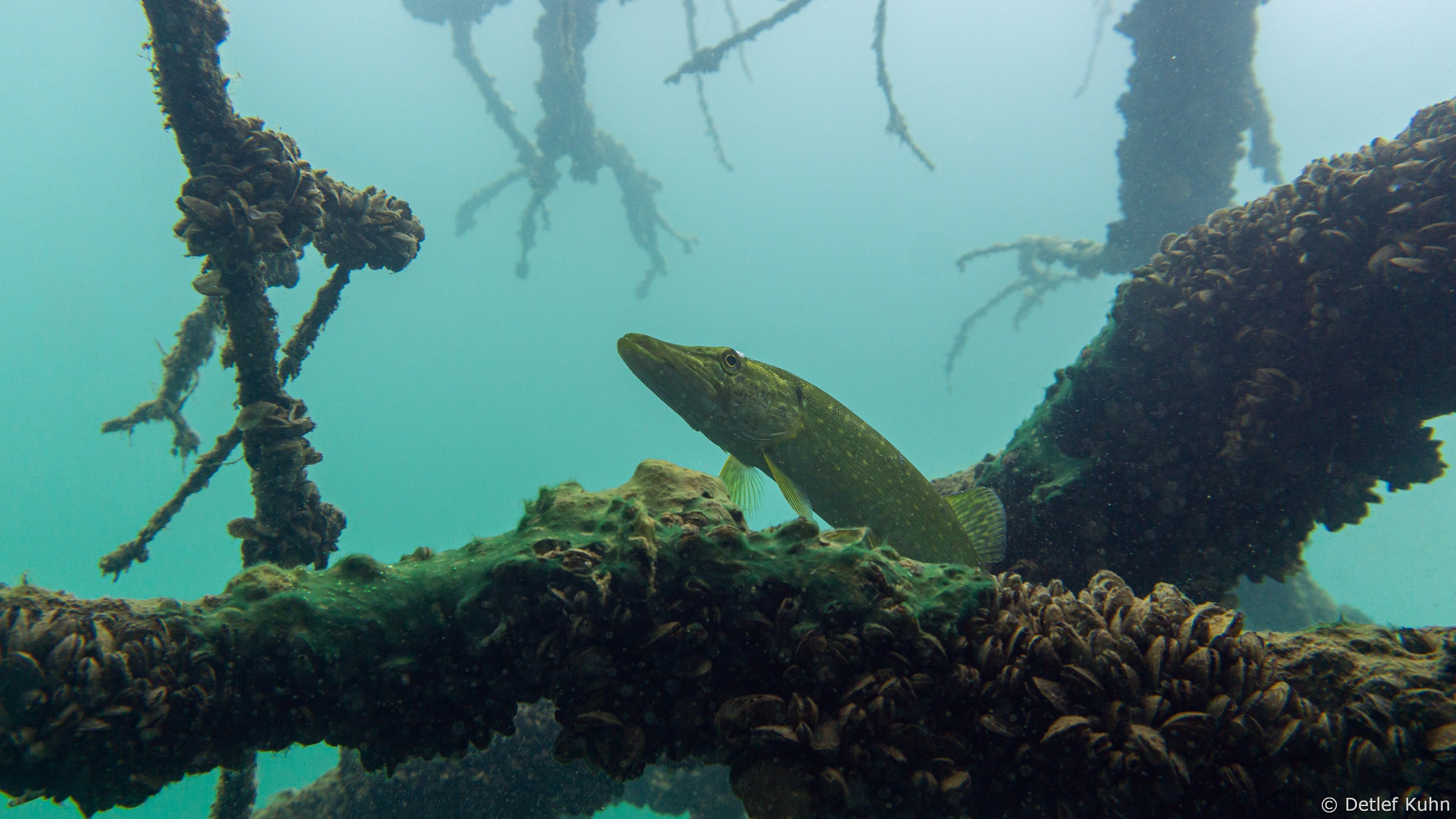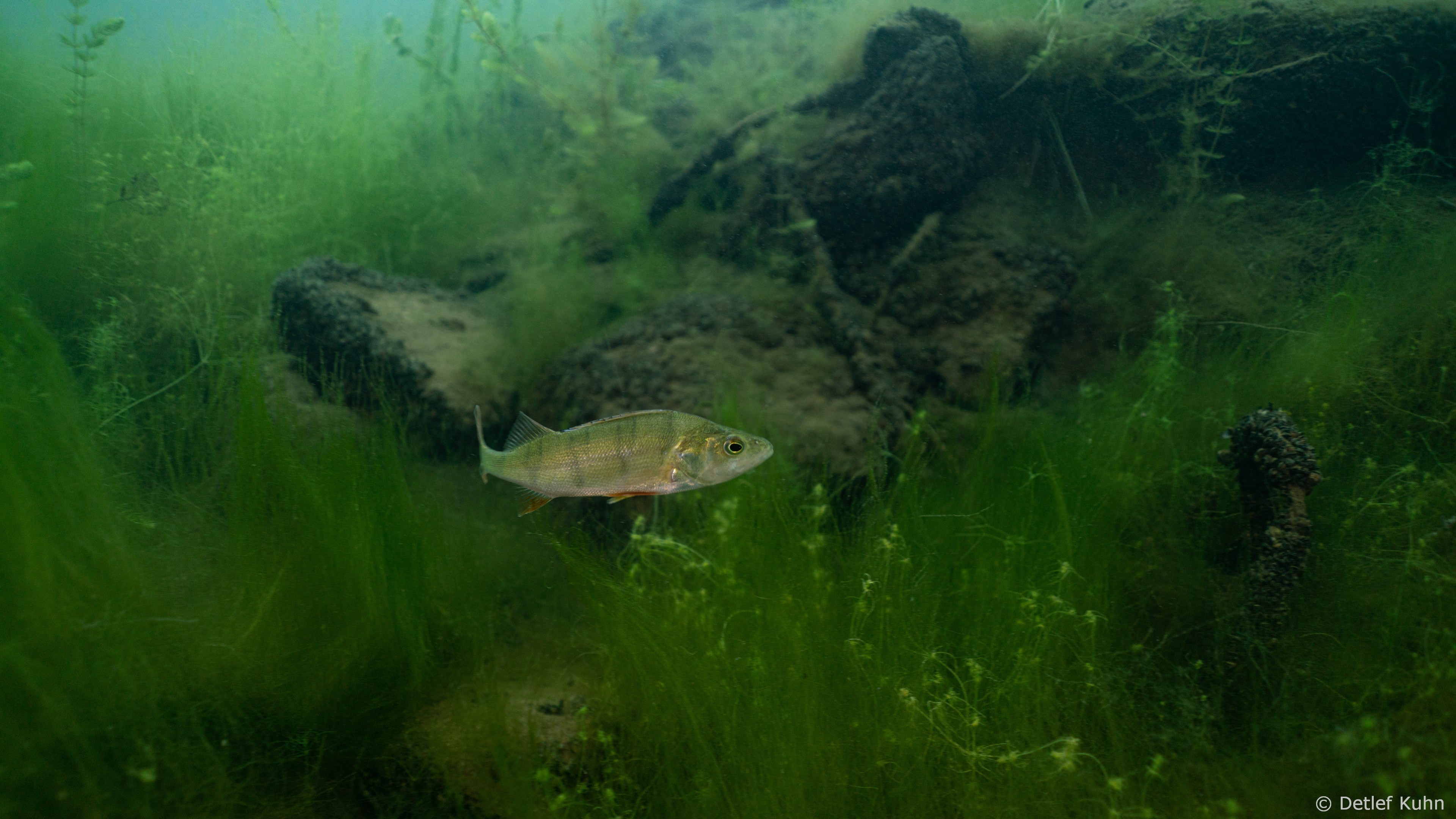 Schon unmittelbar unter der Wasseroberfläche hat man im Uferbereich, dem Litoral, den Eindruck man ist in einem Aquarium.
