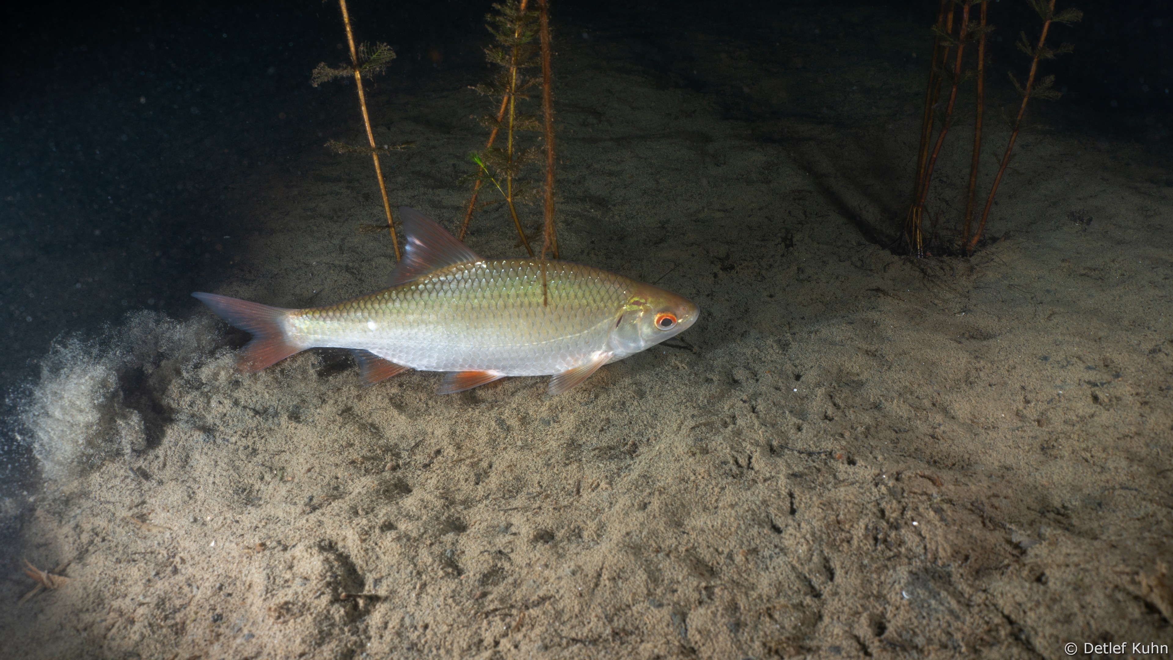 um die feinen Sedimente des Grundes auszuspülen und den Kiesboden freizulegen.