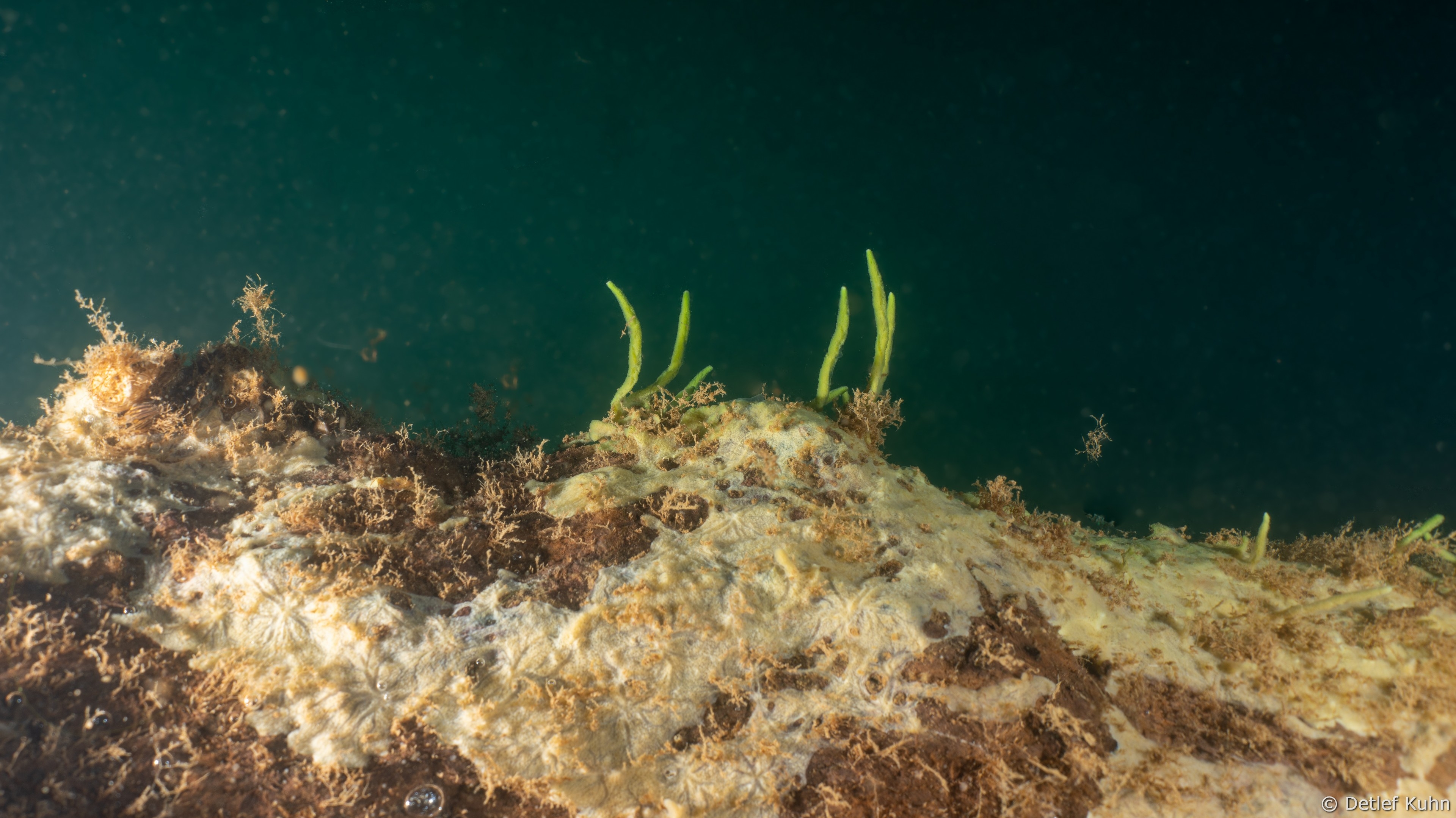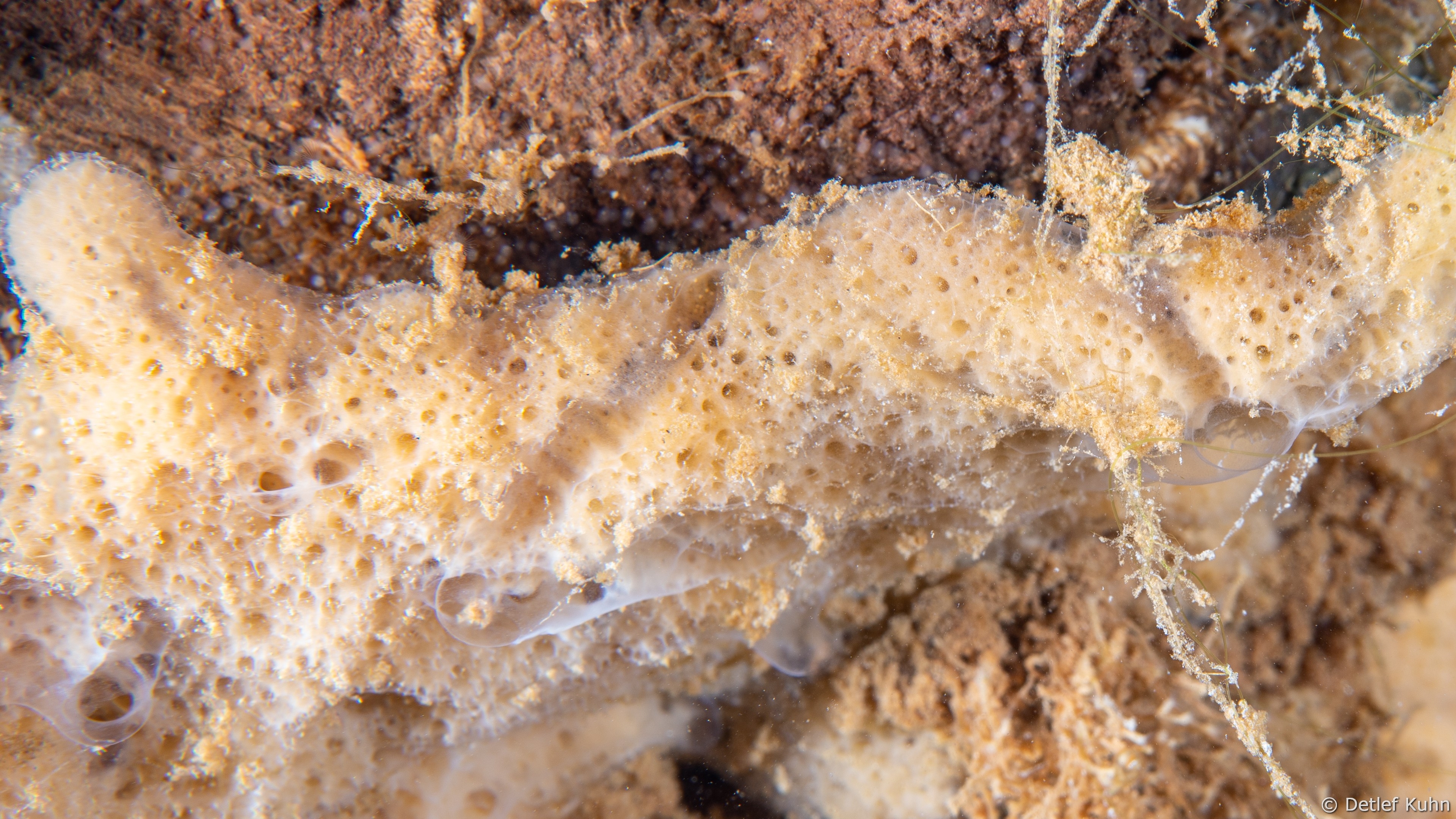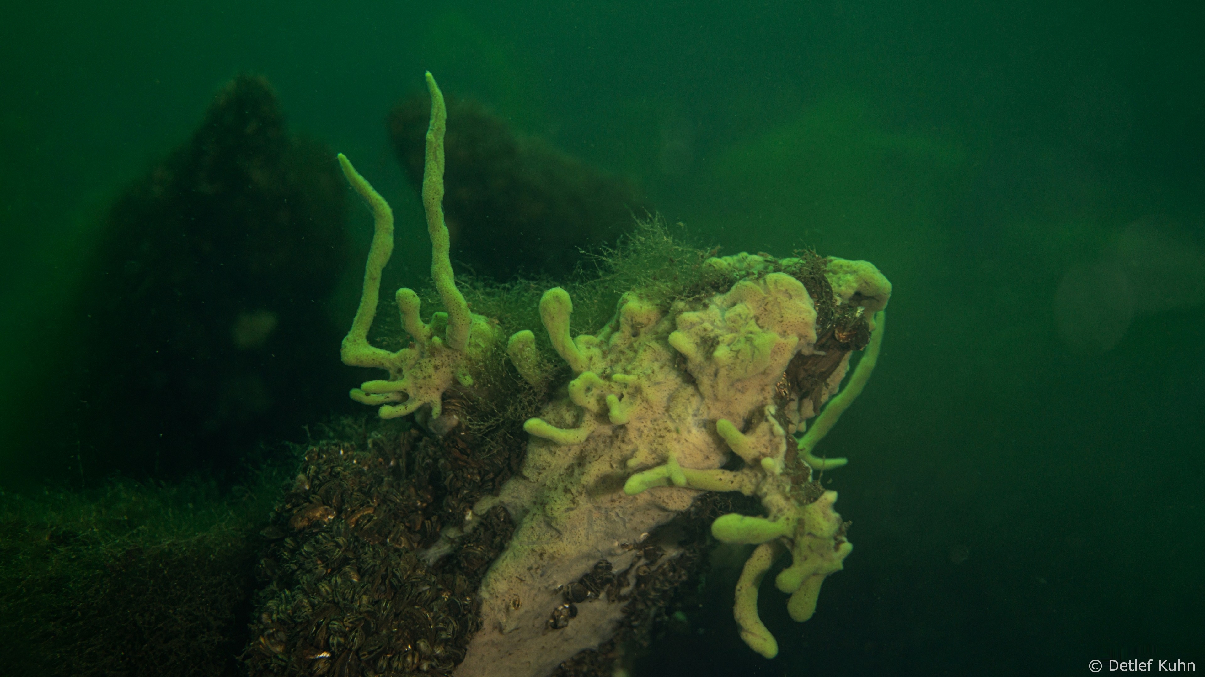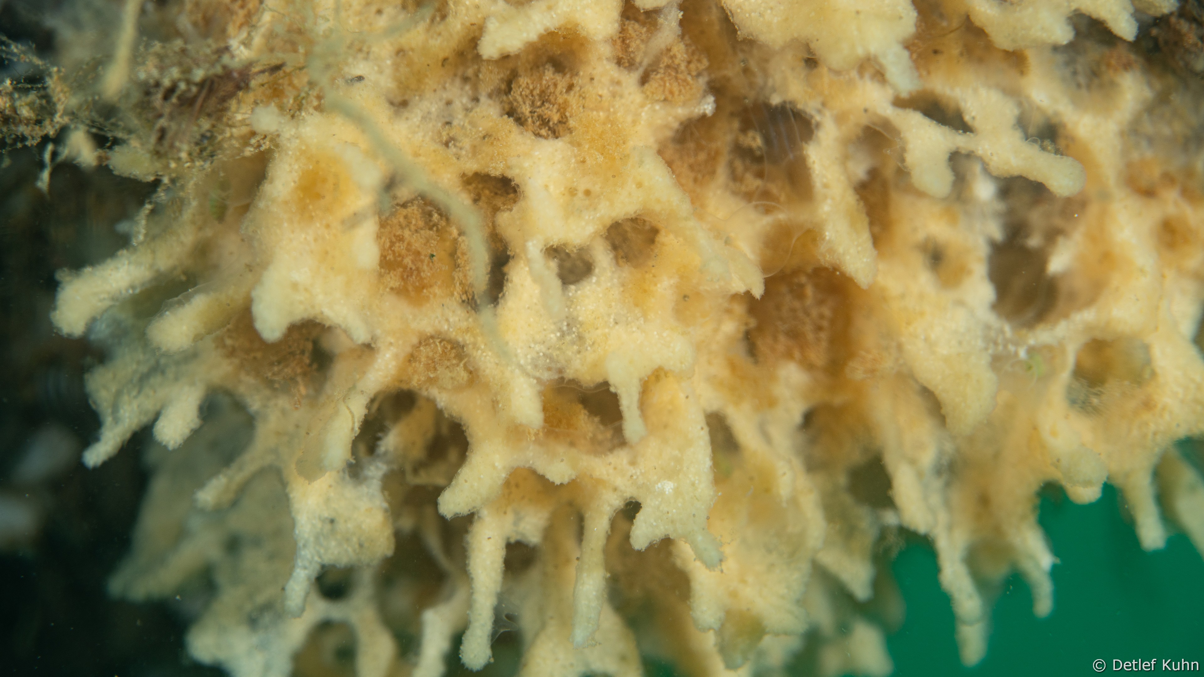 - Ephydatia muelleri: bildet krusten- oder klumpenartige Schwammkörper mit kurzen Fortsätzen.
