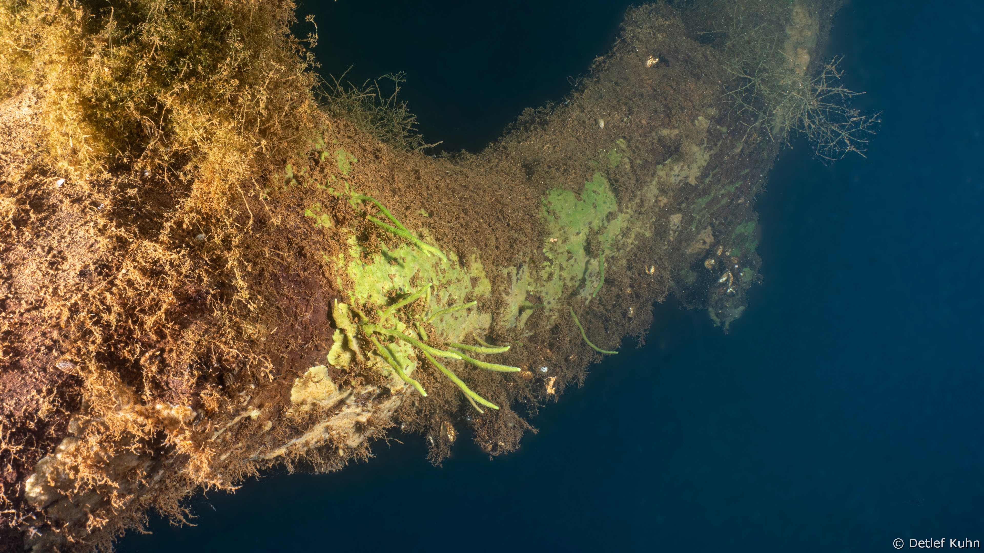 - Spongilla lacustris - Geweihschwamm: Schwammkörper ist meist geweihartig verzweigt. Auf dem Schwamm siedeln sich an gut belichteten Stellen einzellige Grünalgen