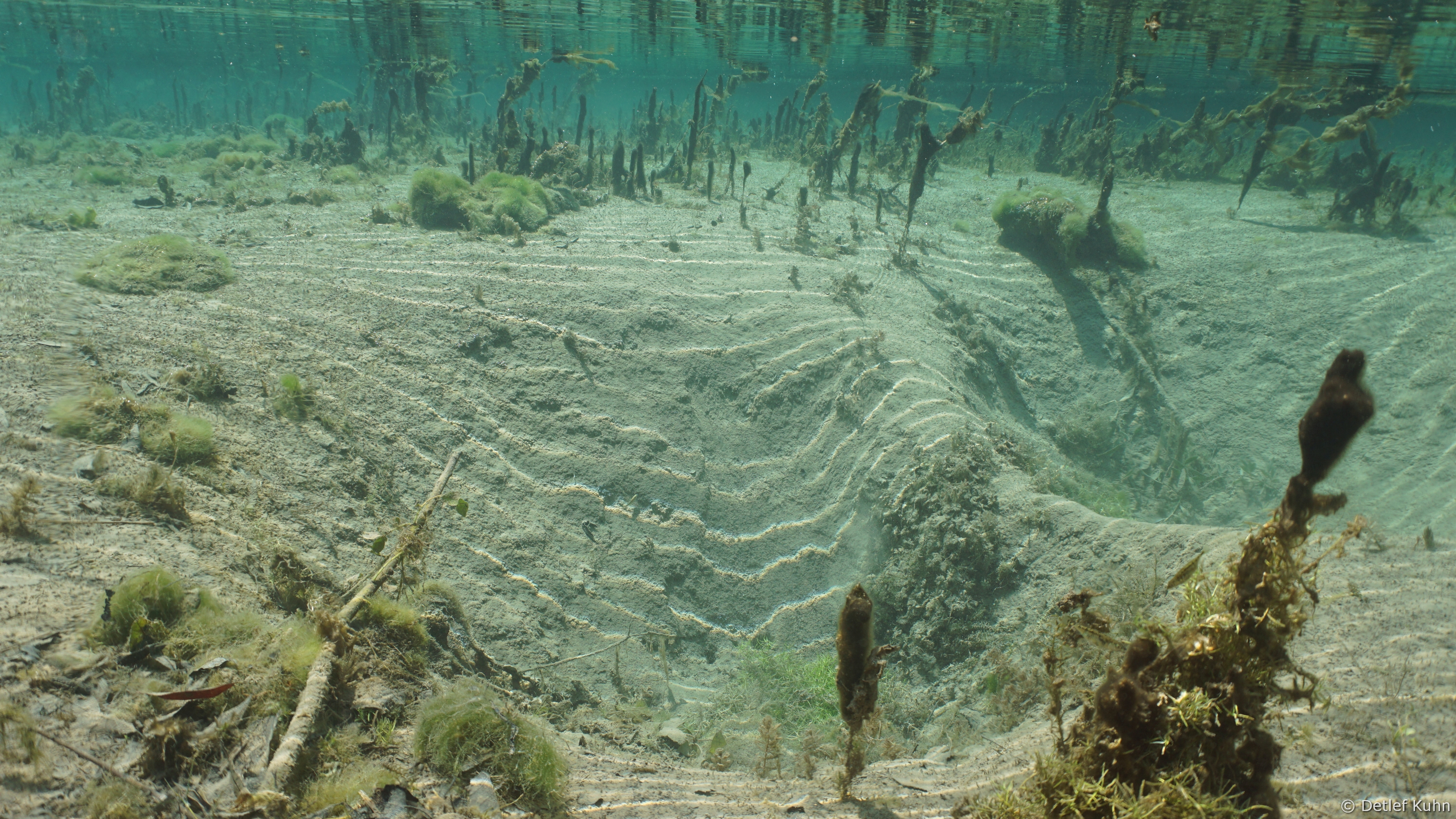 Gespeist wird er durch eine Schüttquelle am Grund – ein sogenannter Giesen.