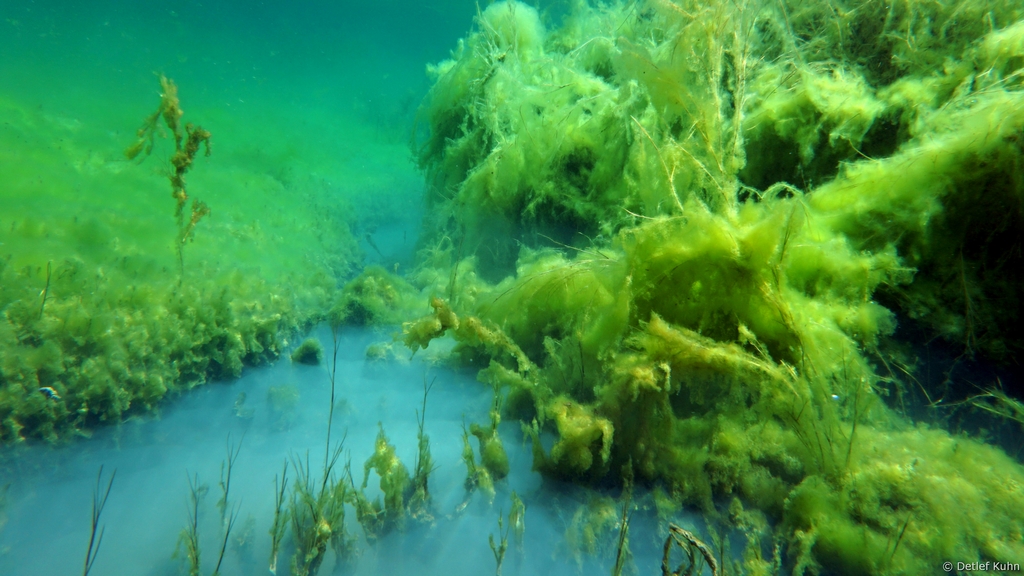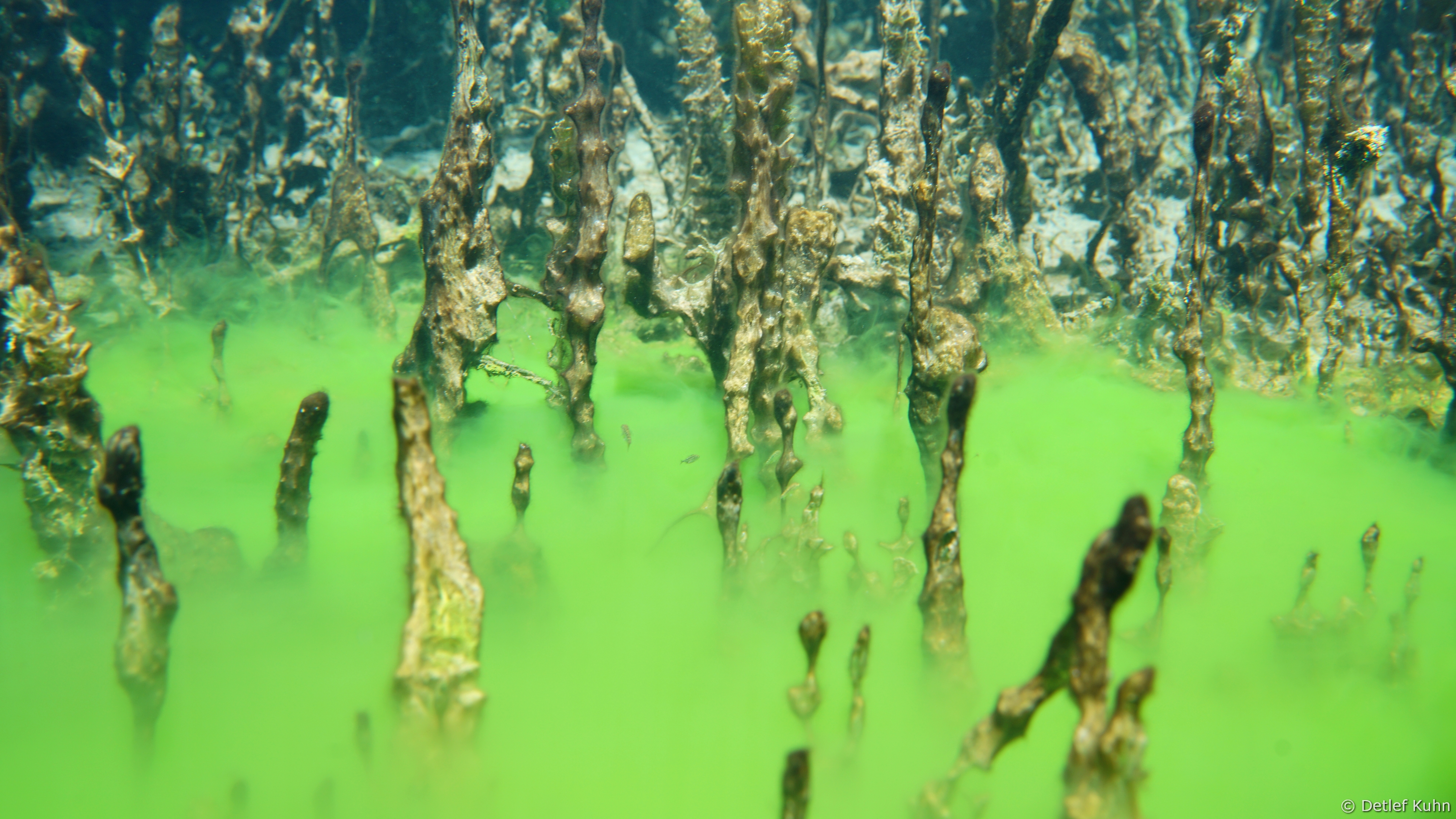 Sauerstofffreie Zonen mit Schwefelbakterien und Algen stehen sauerstoffreichen Bereichen gegenüber,