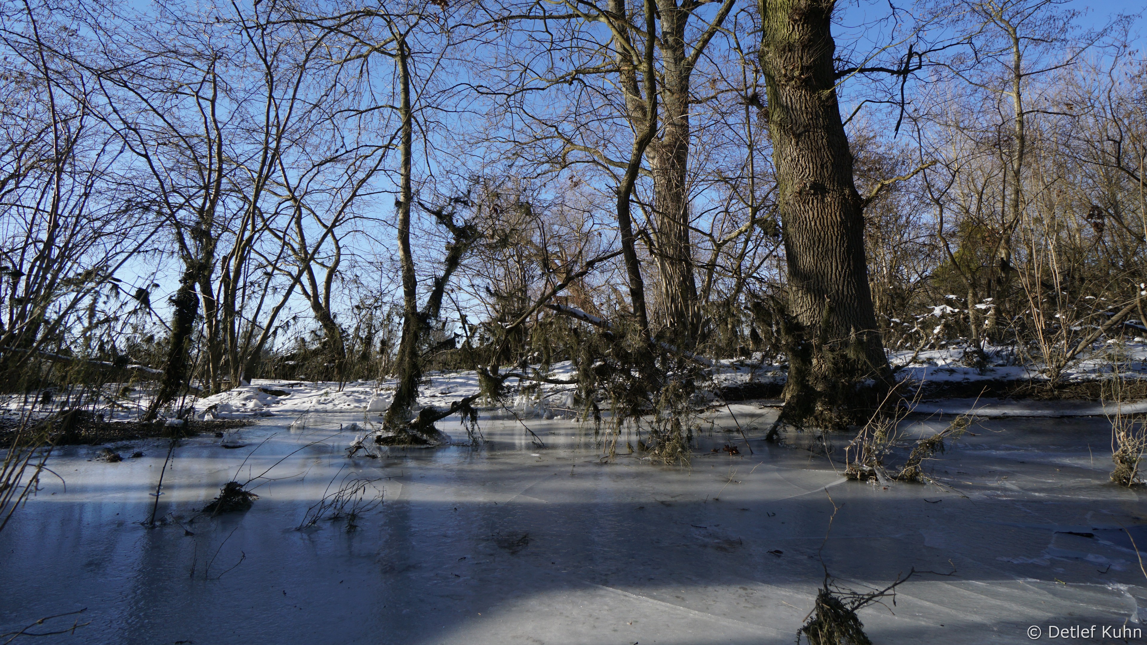 mit dichtem Unterholz, alten Bäumen und einem Netz aus Wasserläufen, den sogenannten Schluten.