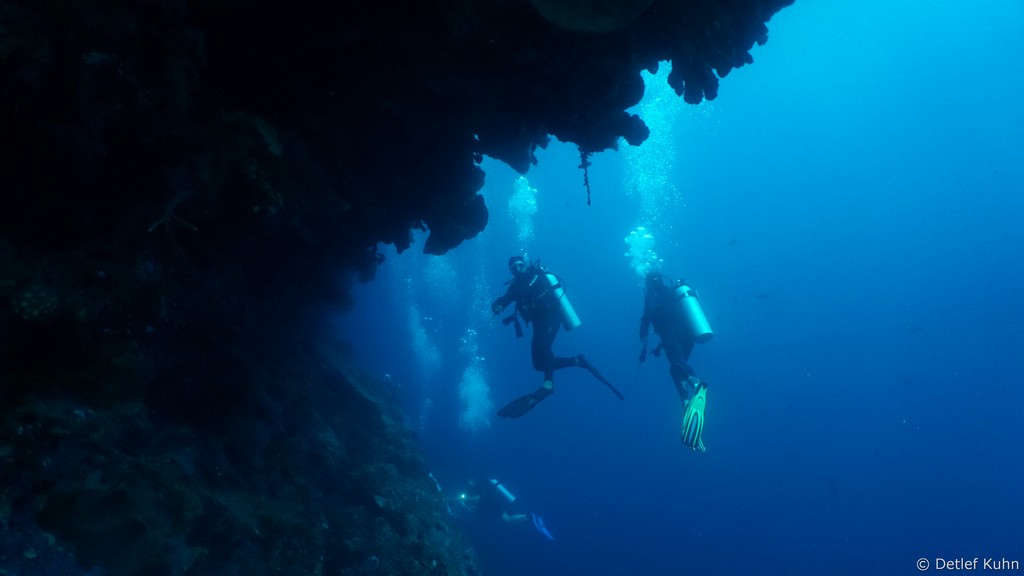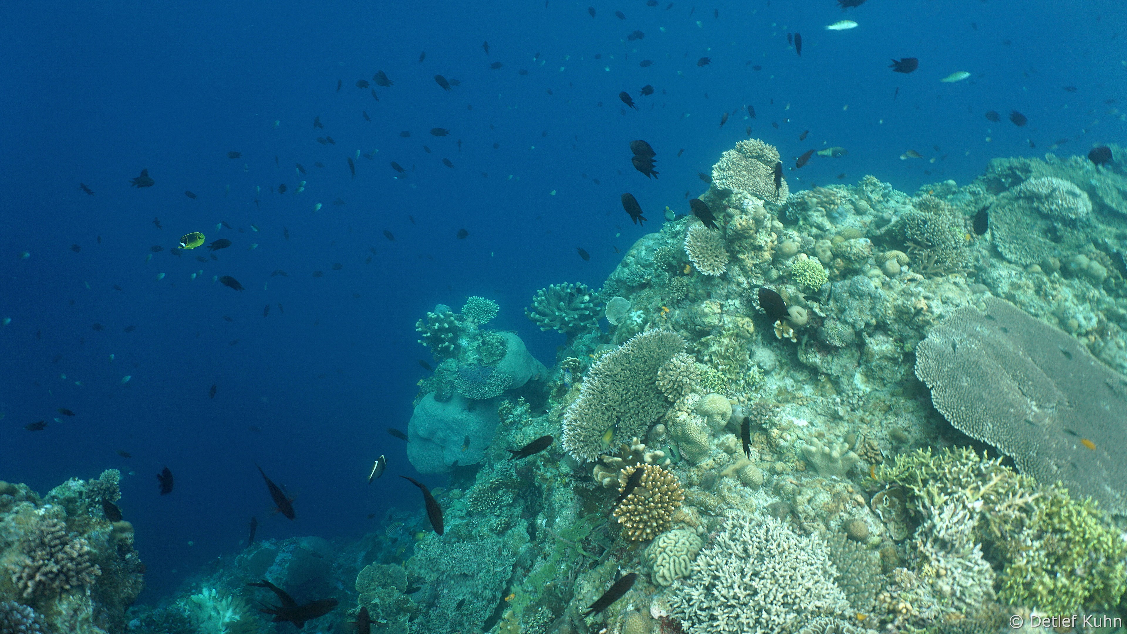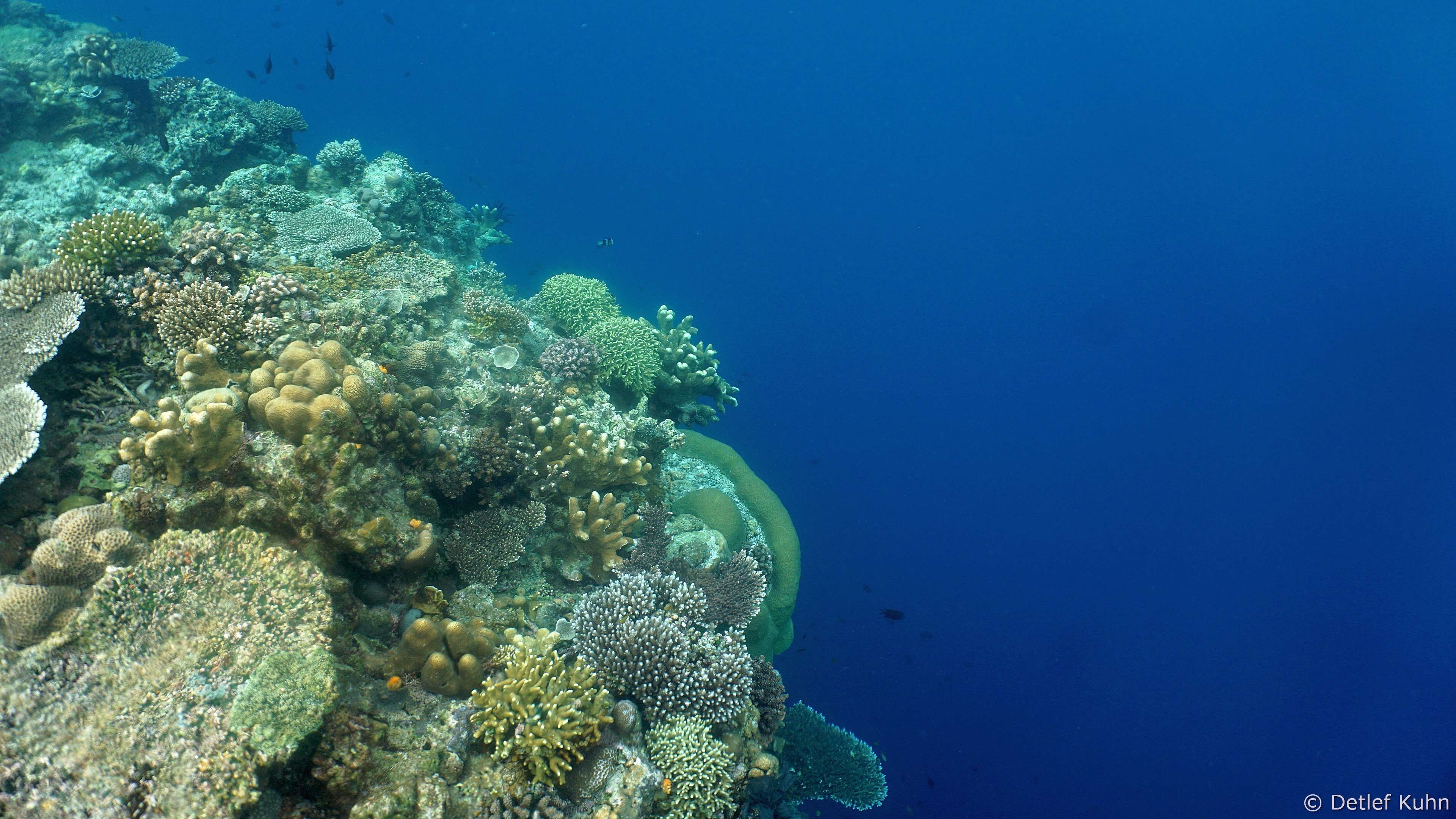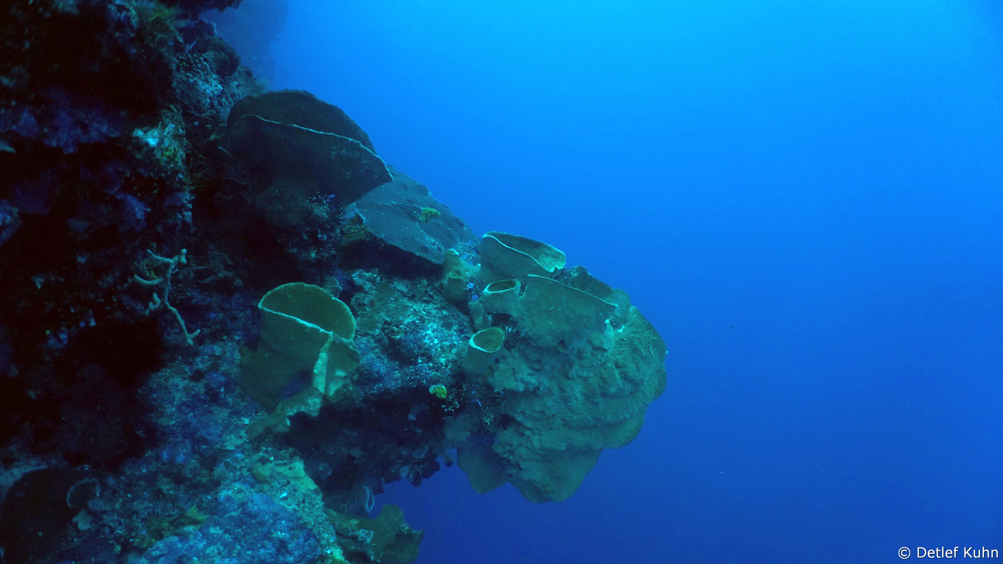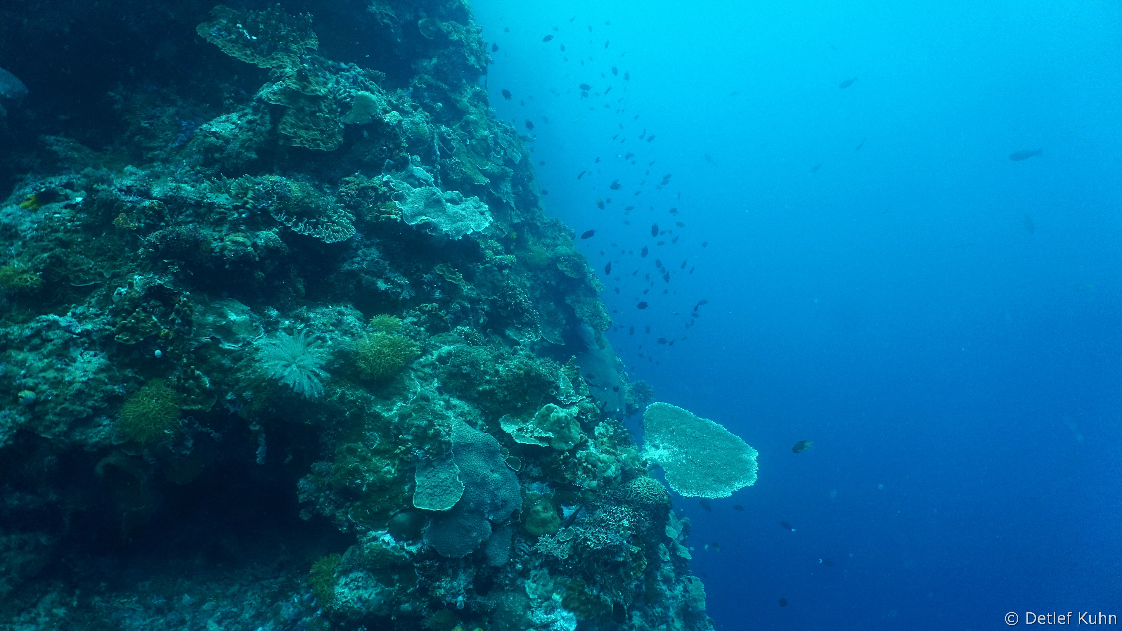 Steilwand-Tauchgang mit einer lebendigen und artenreichen Riffkante und Riffdach.