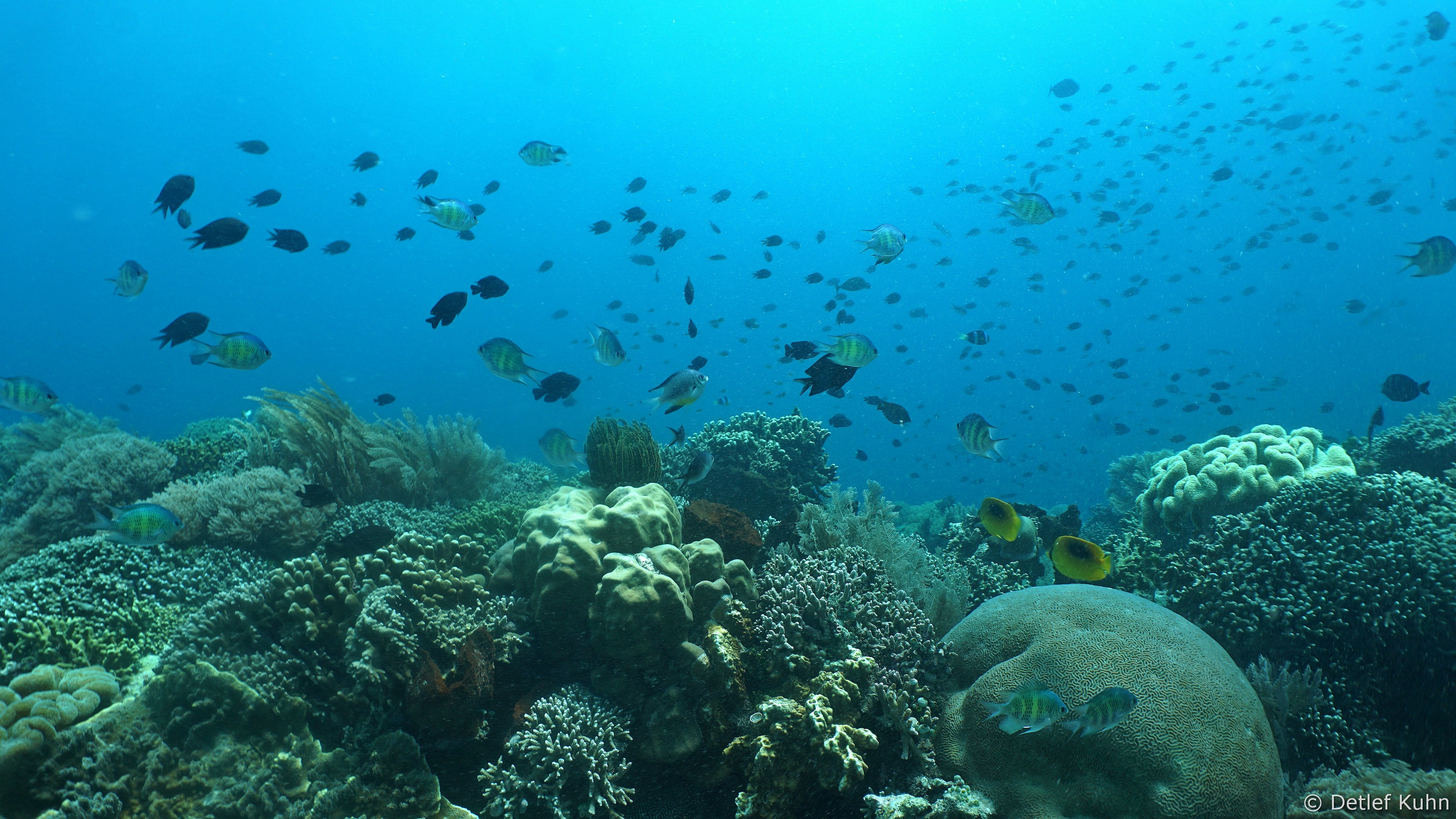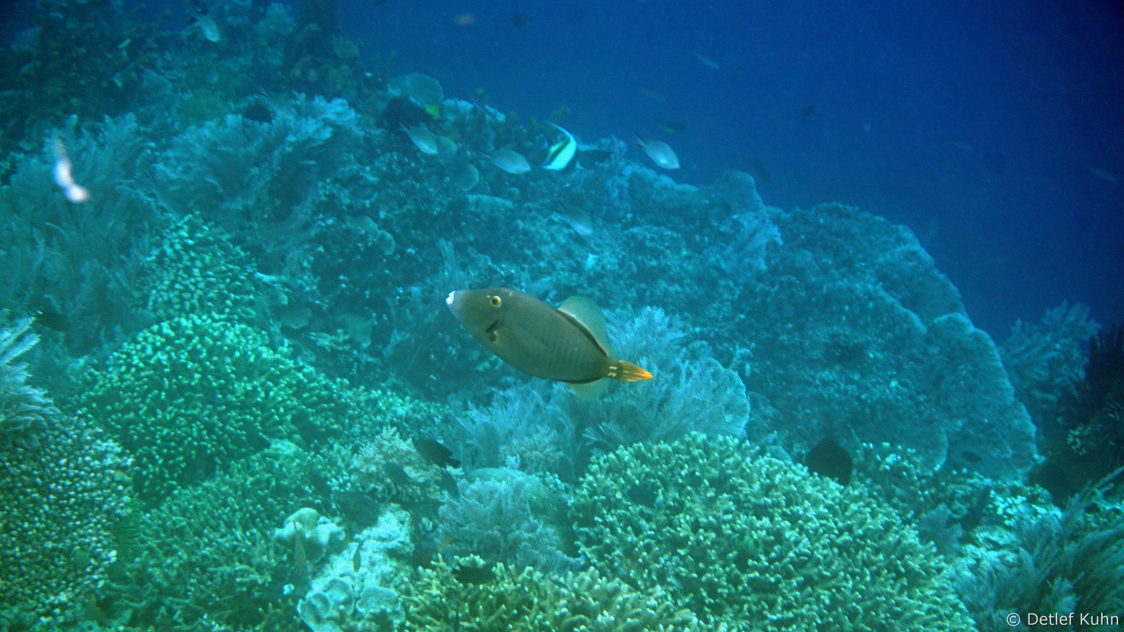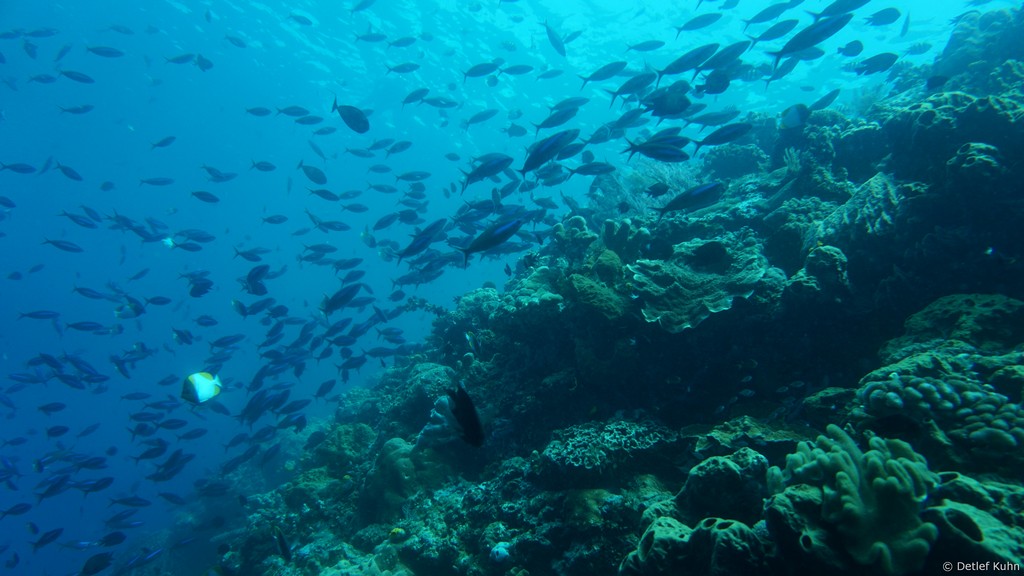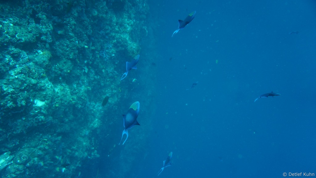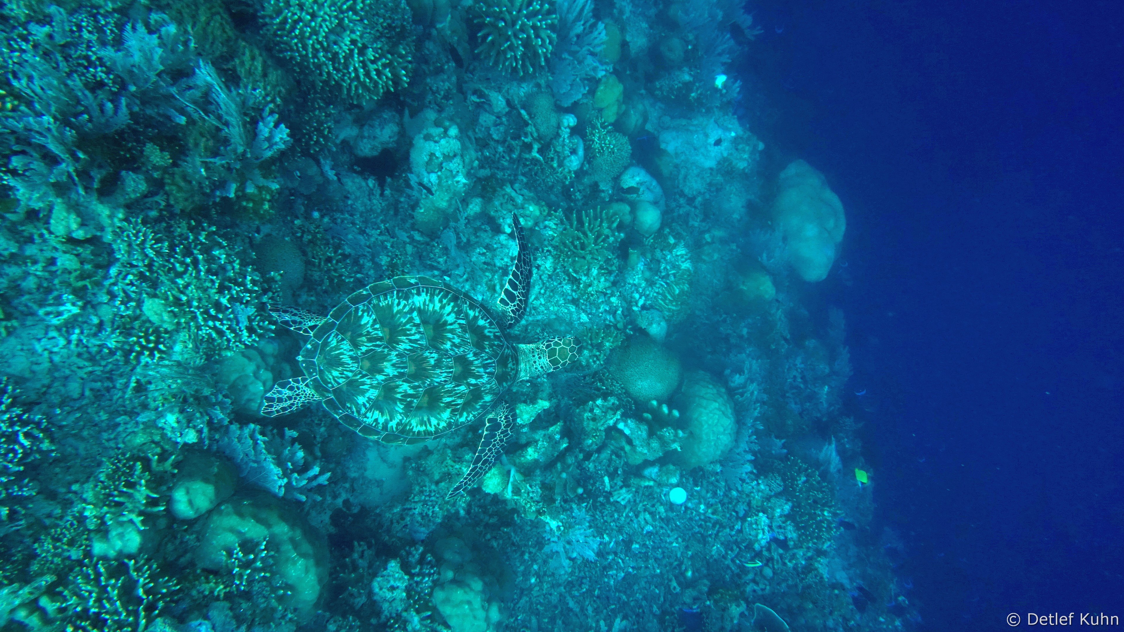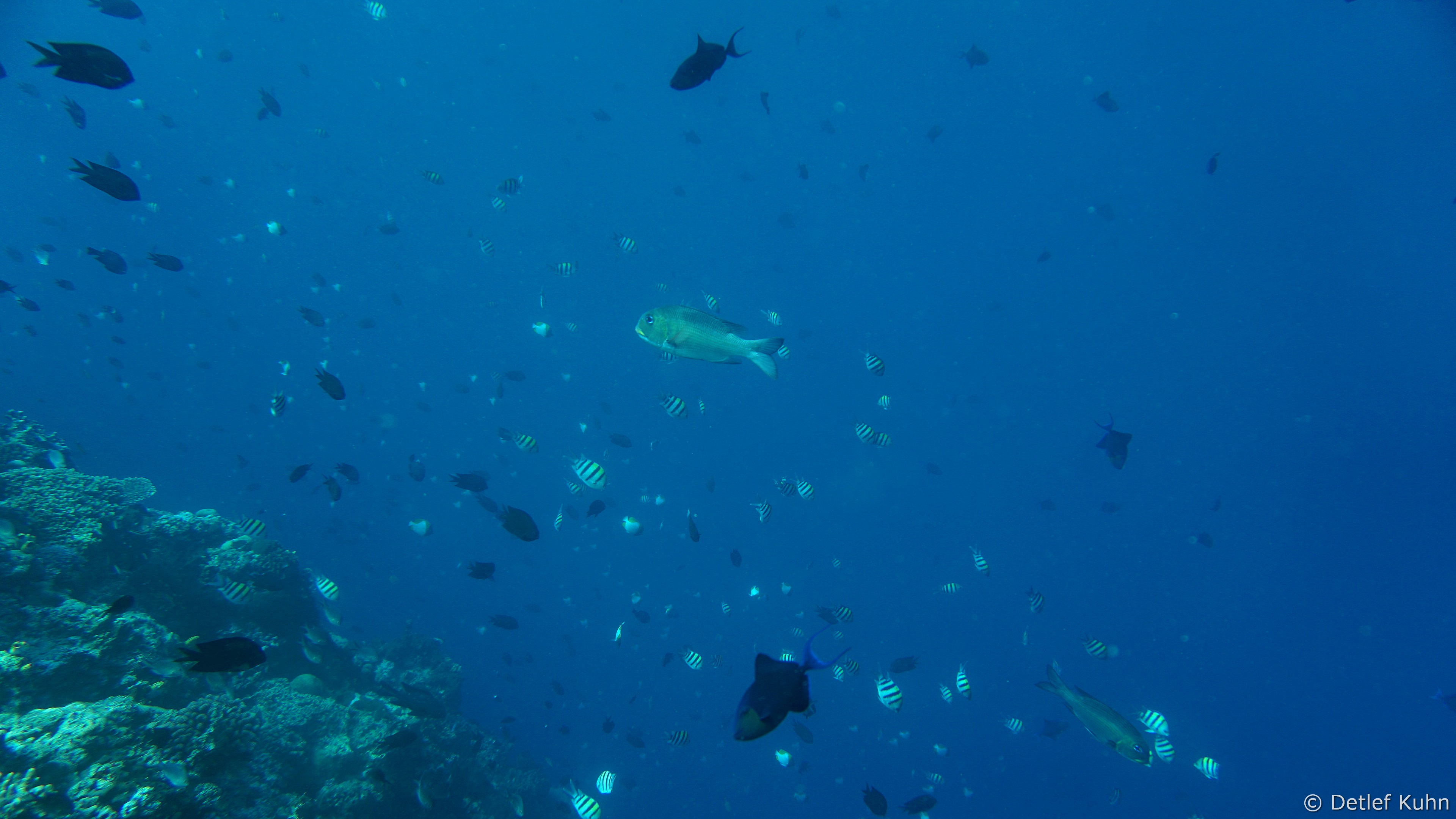 Steilwand-Tauchgang mit einer lebendigen und artenreichen Riffkante und Riffdach.