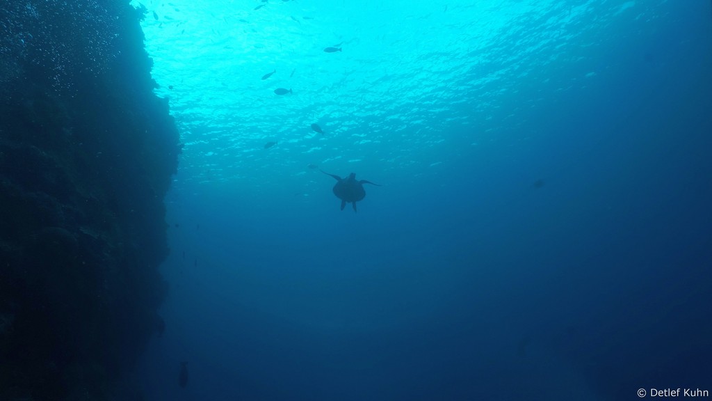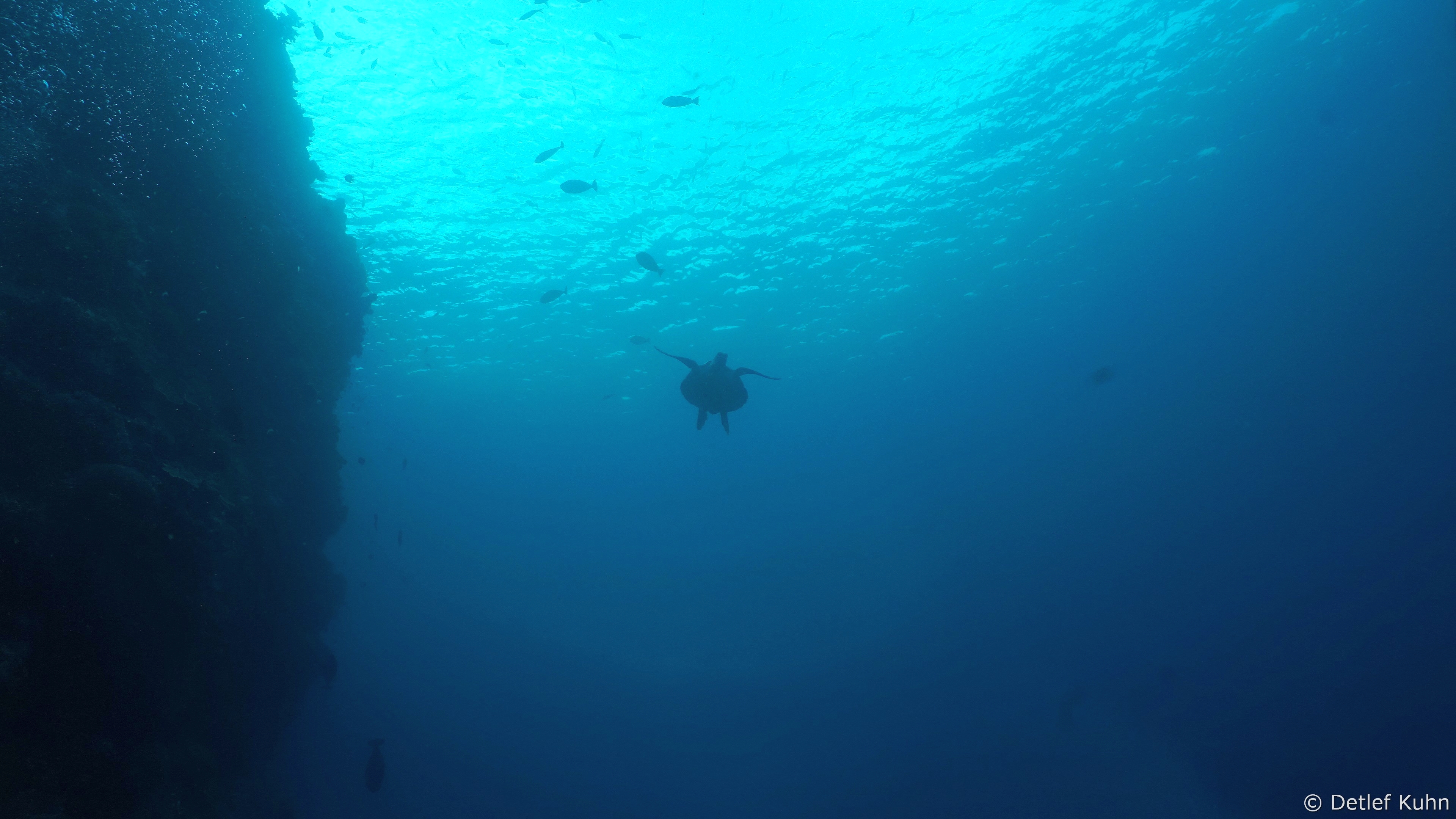 Die Bedingungen sind nicht jeden Tag gleich – trübe Sichtverhältnisse beim Steilwand-Tauchgang.