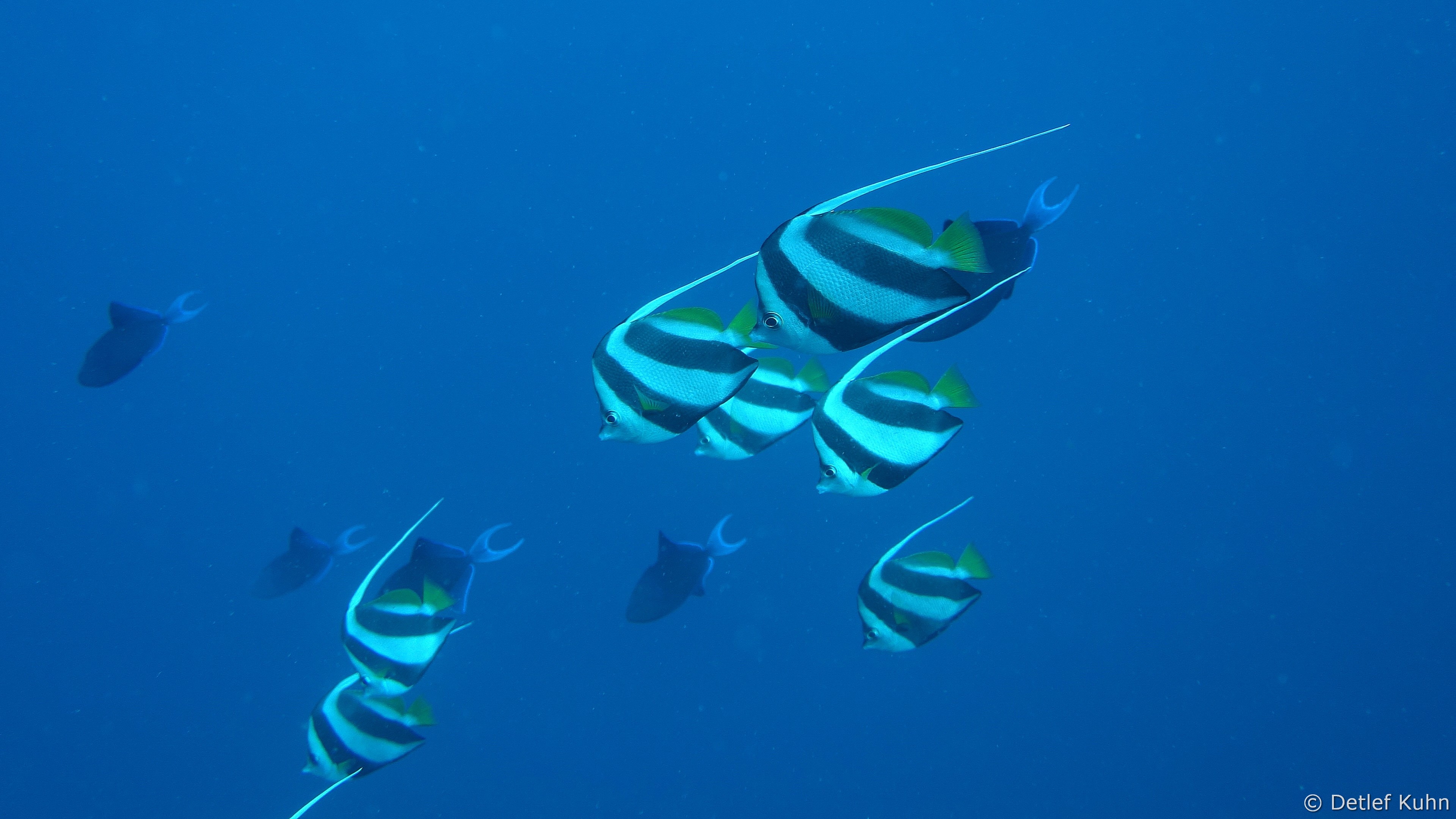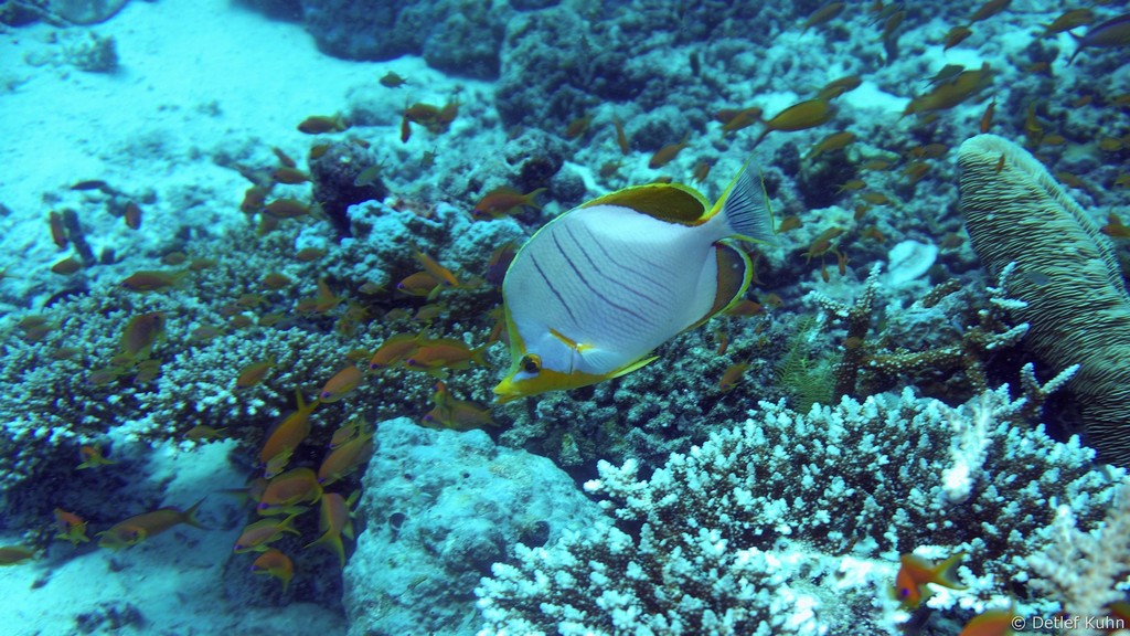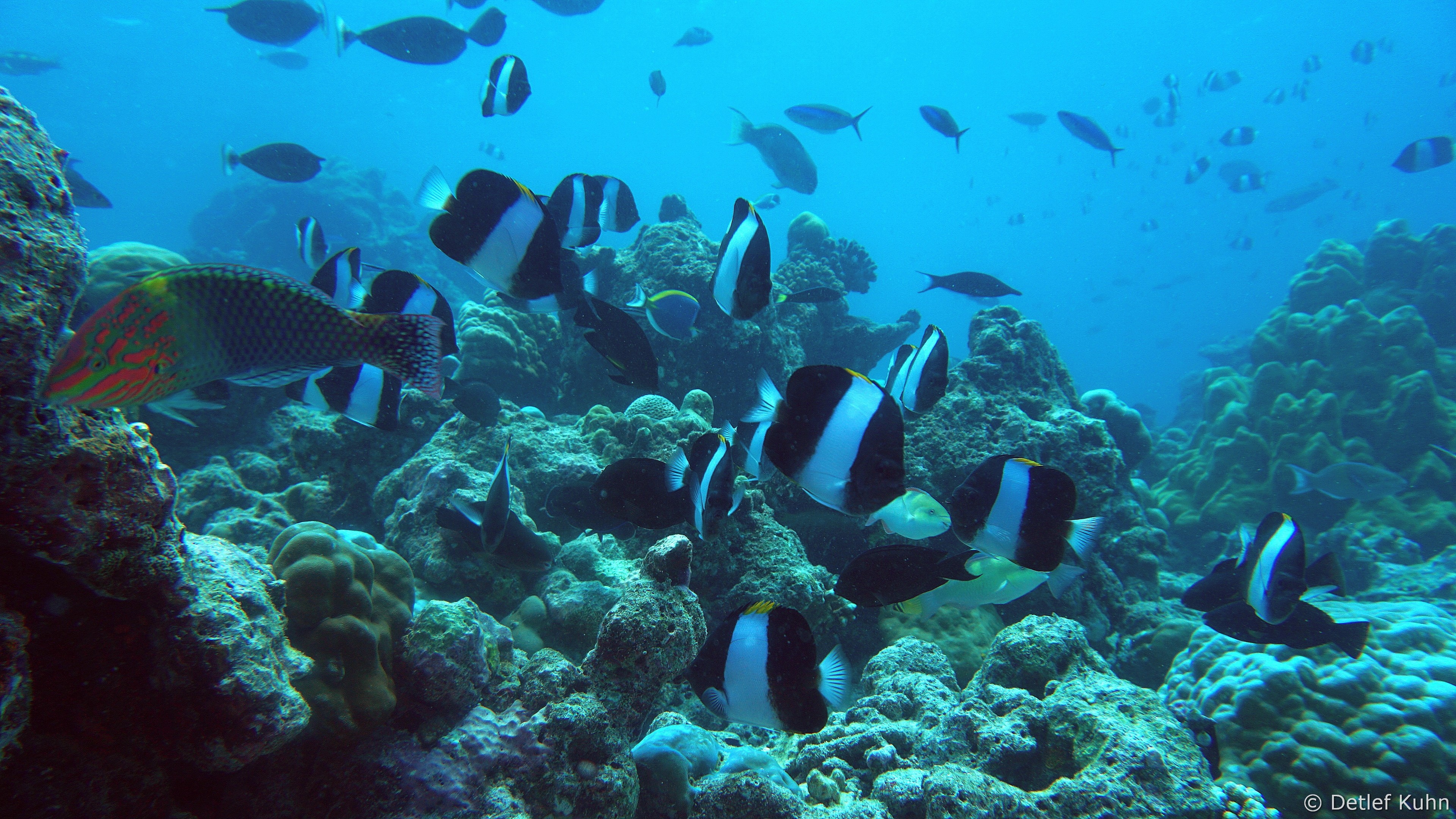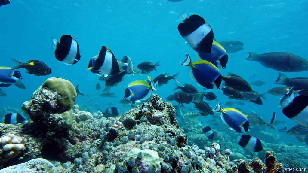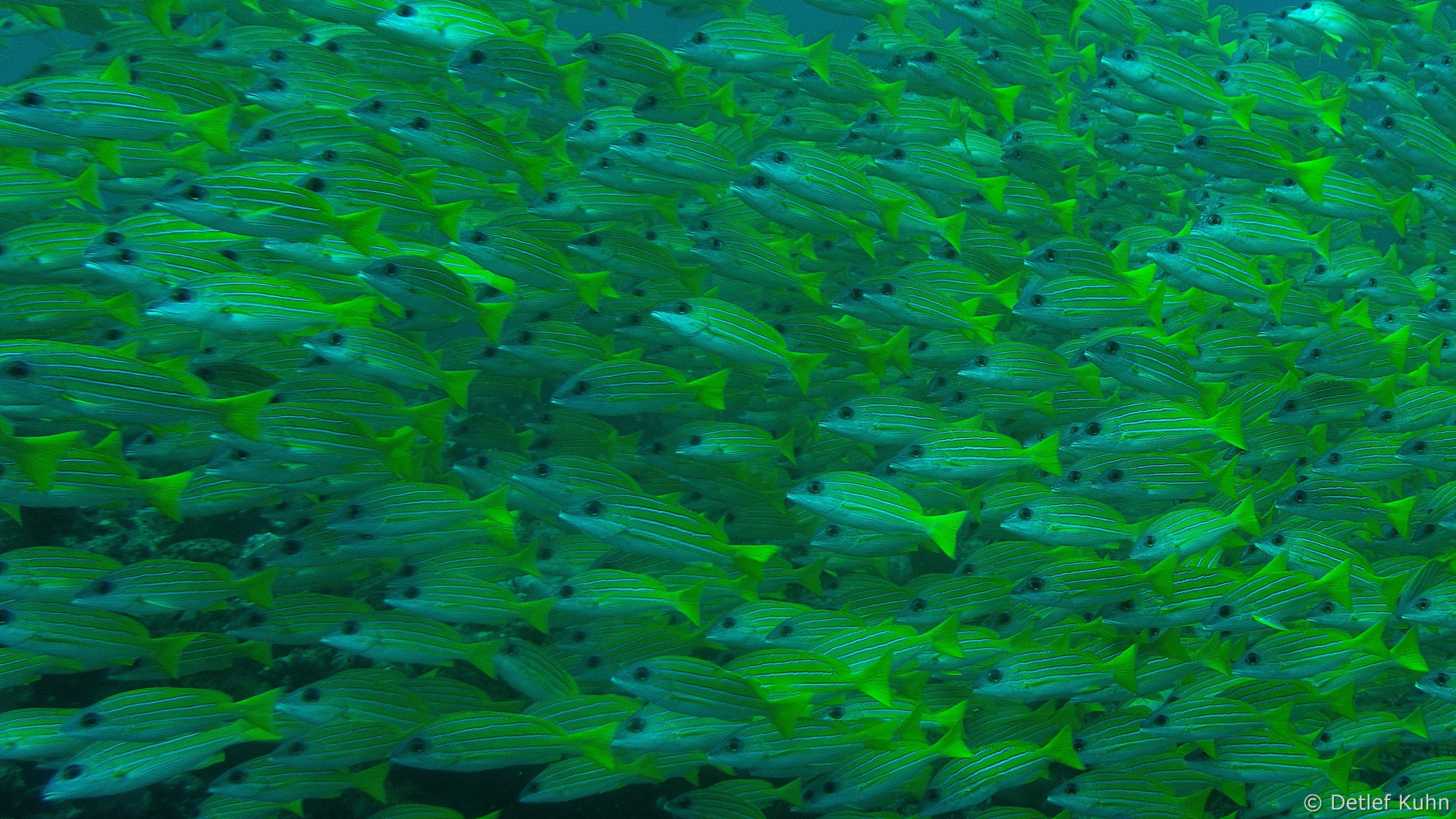 Um den Unterwasserberg Kuda Rah Thila halten sich Große Schwärme von Blaustreifenschnappern