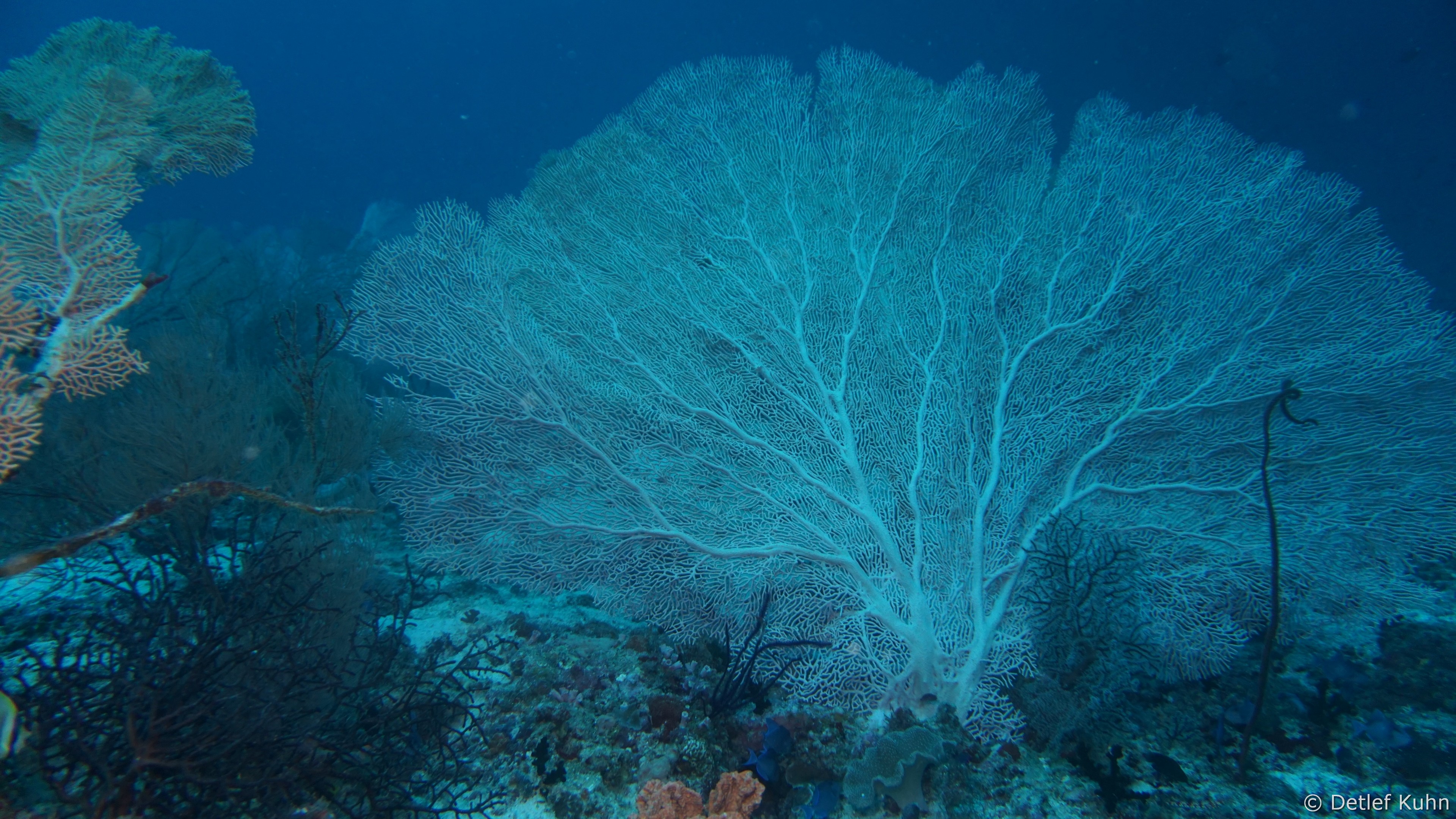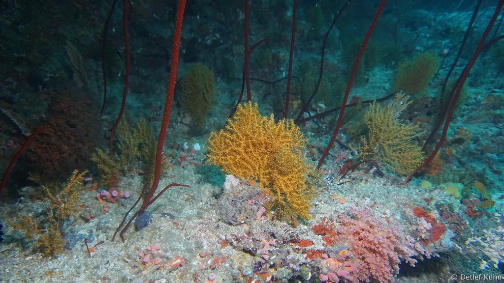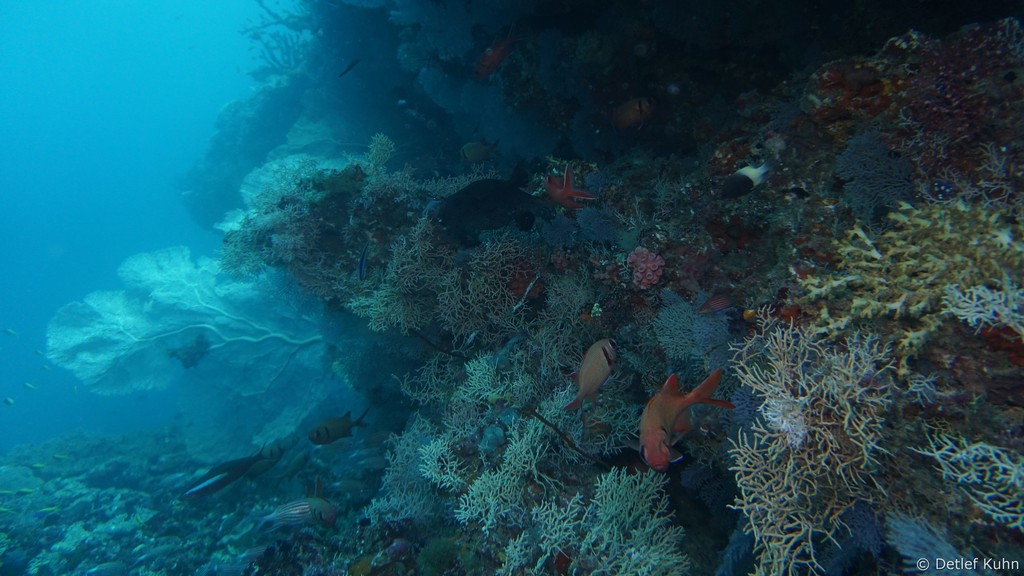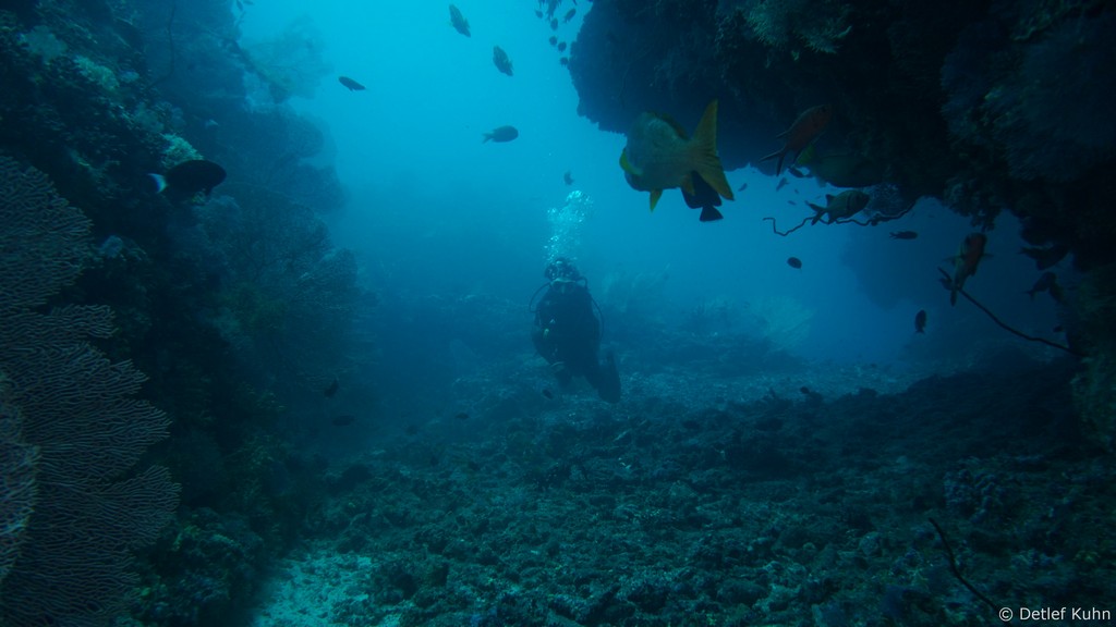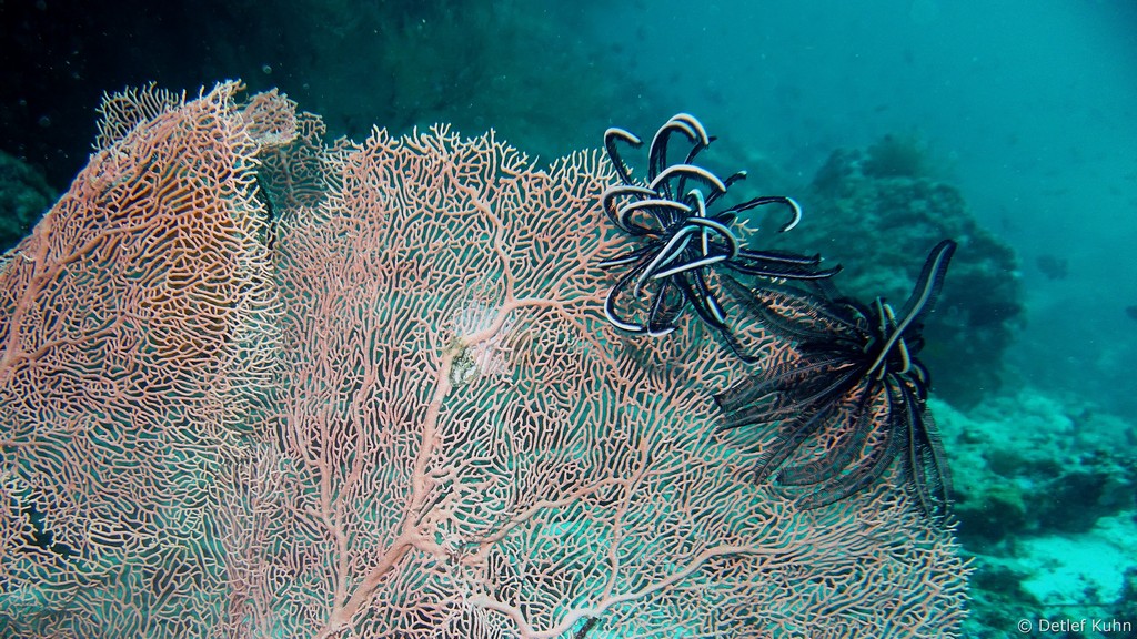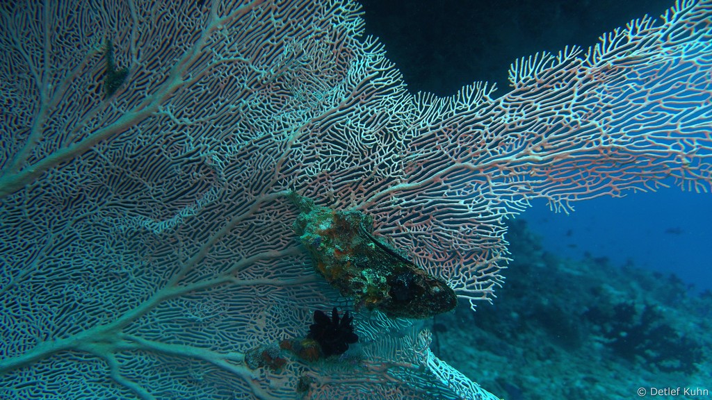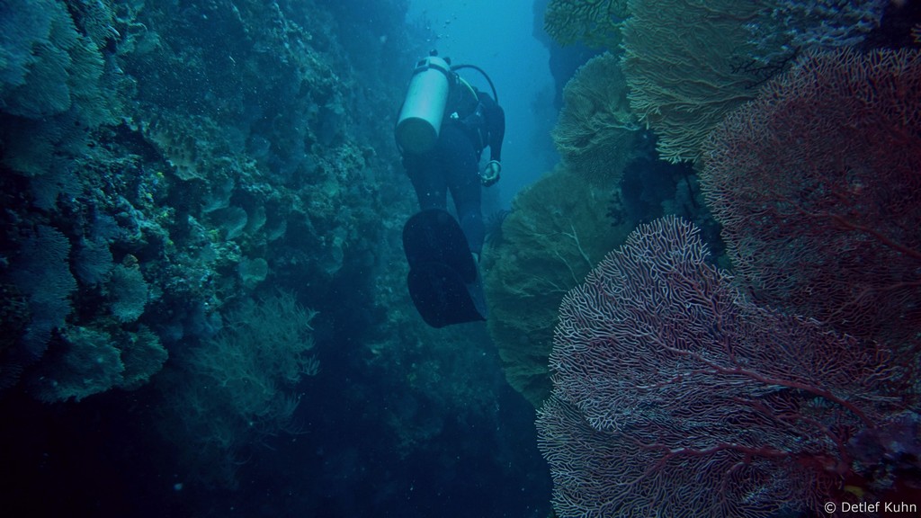 An den Wänden des Canyons sind besonders große Fächerkorallen zu finden,