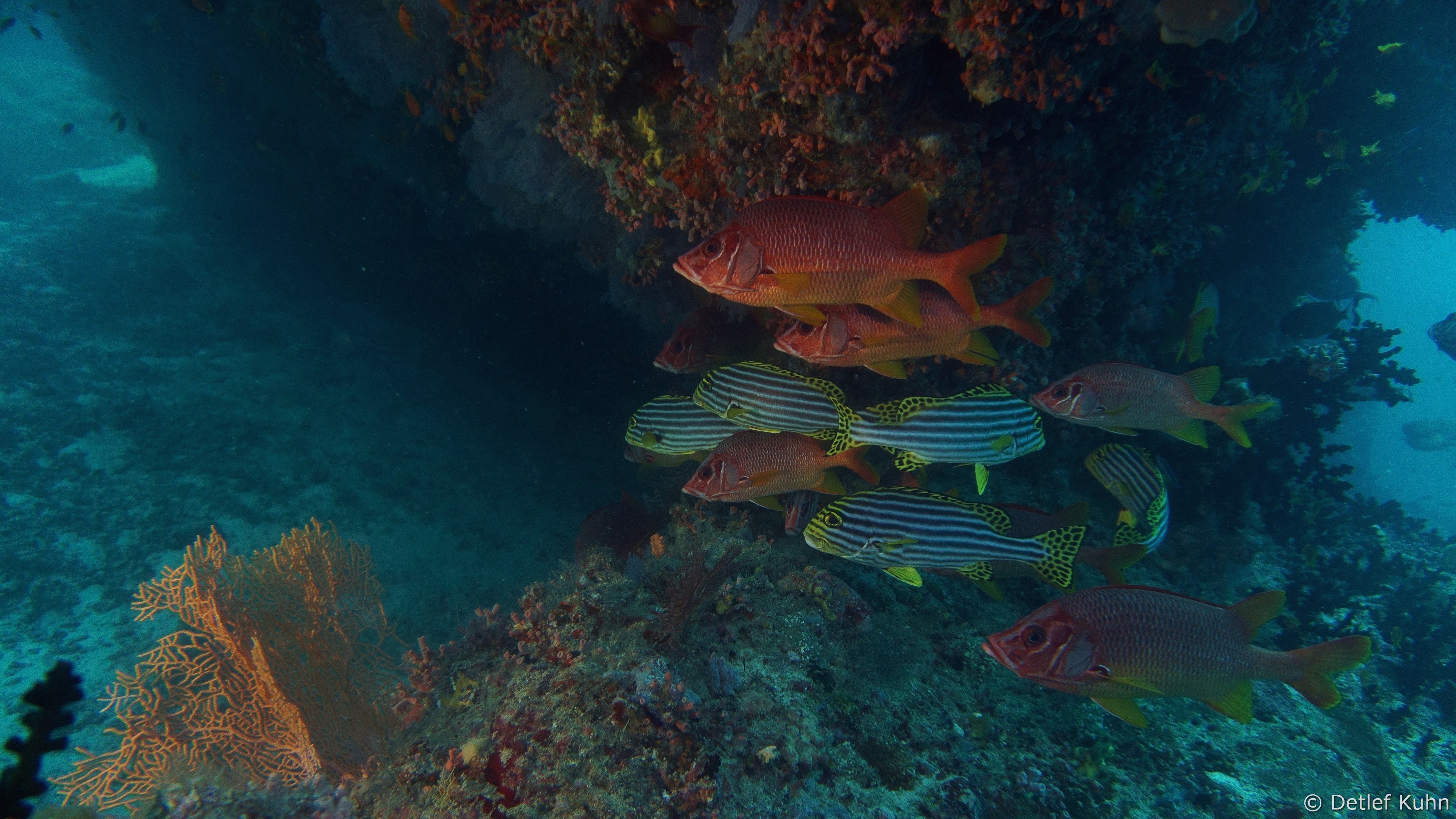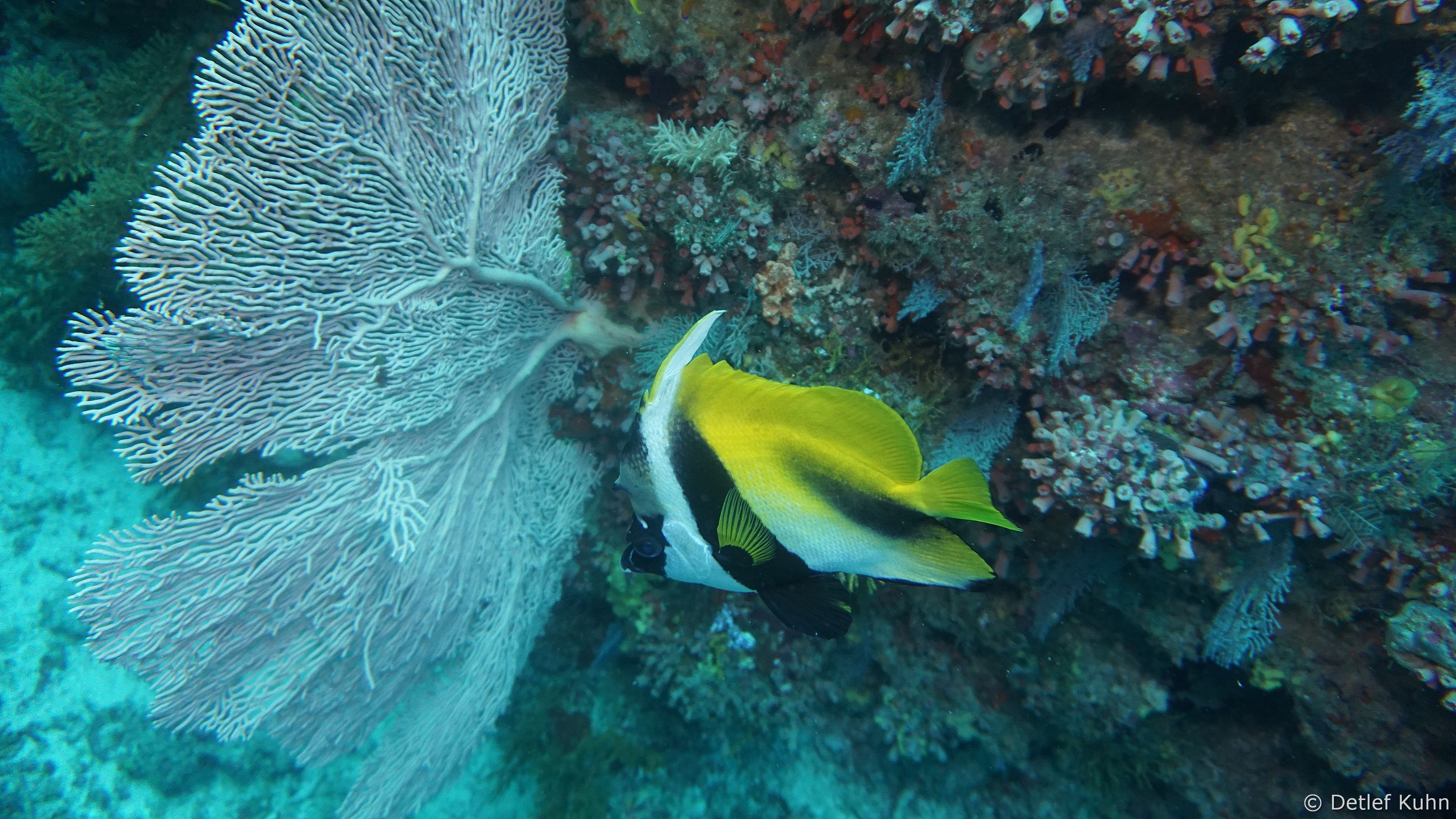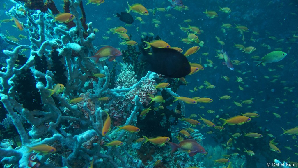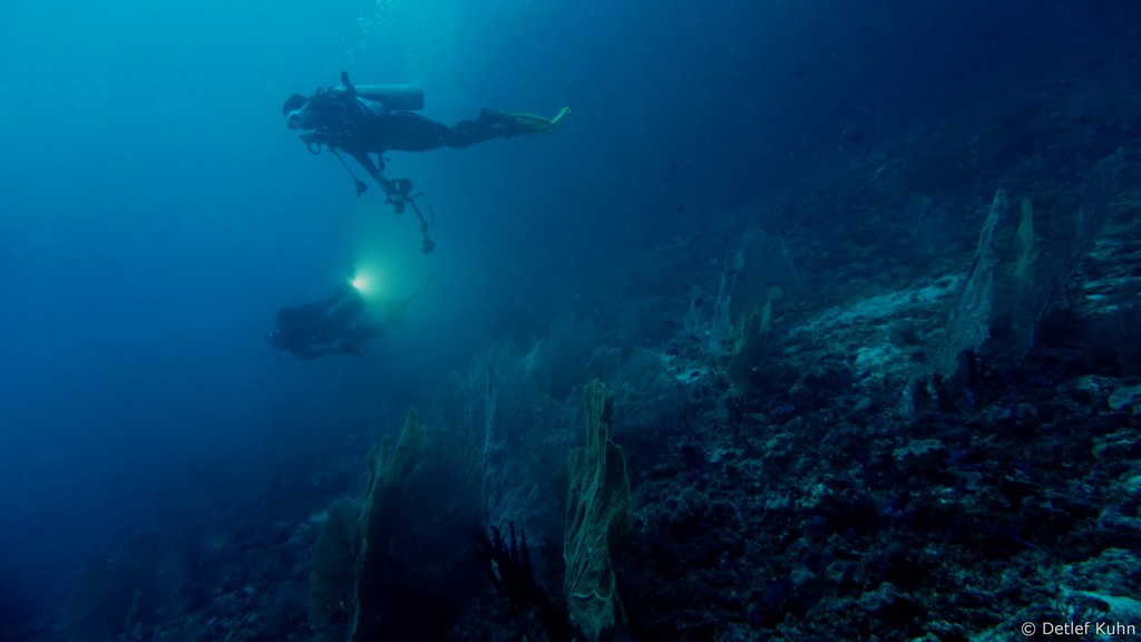 An den Wänden des Canyons sind besonders große Fächerkorallen zu finden,