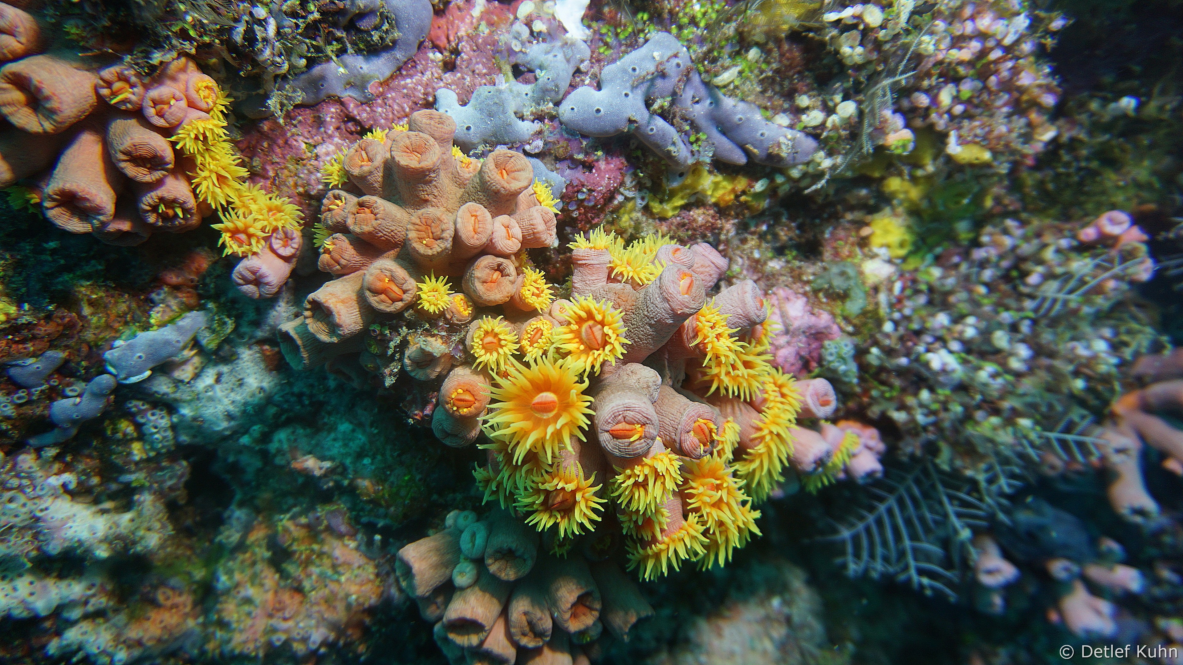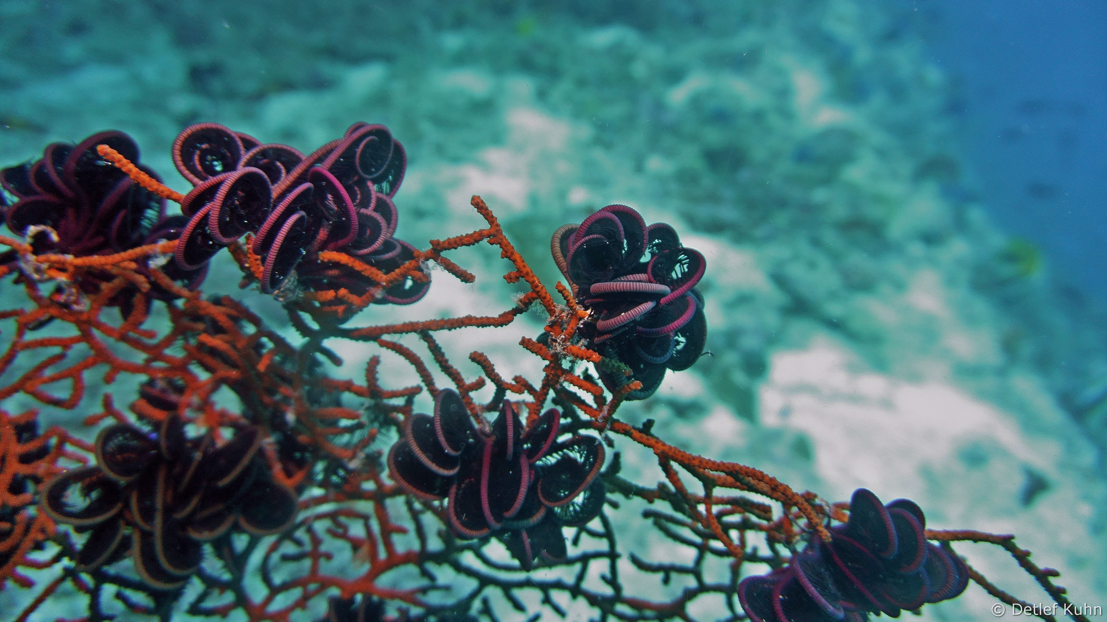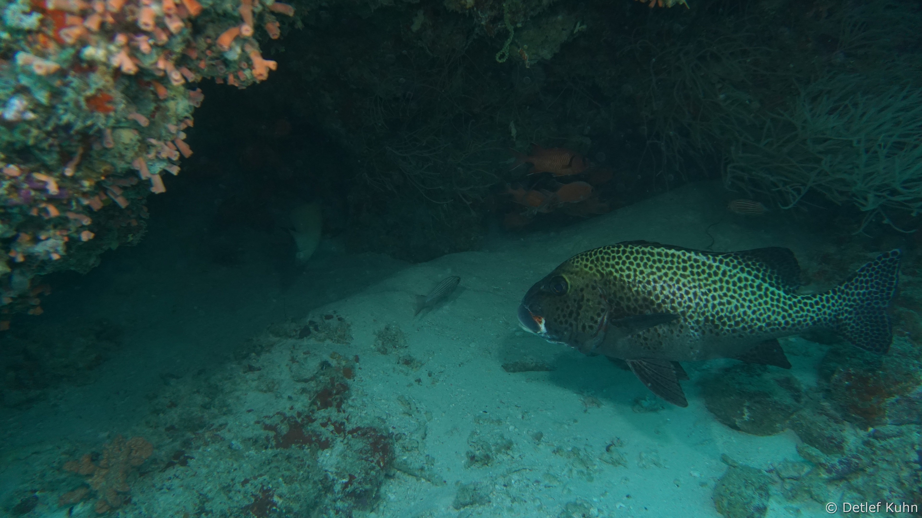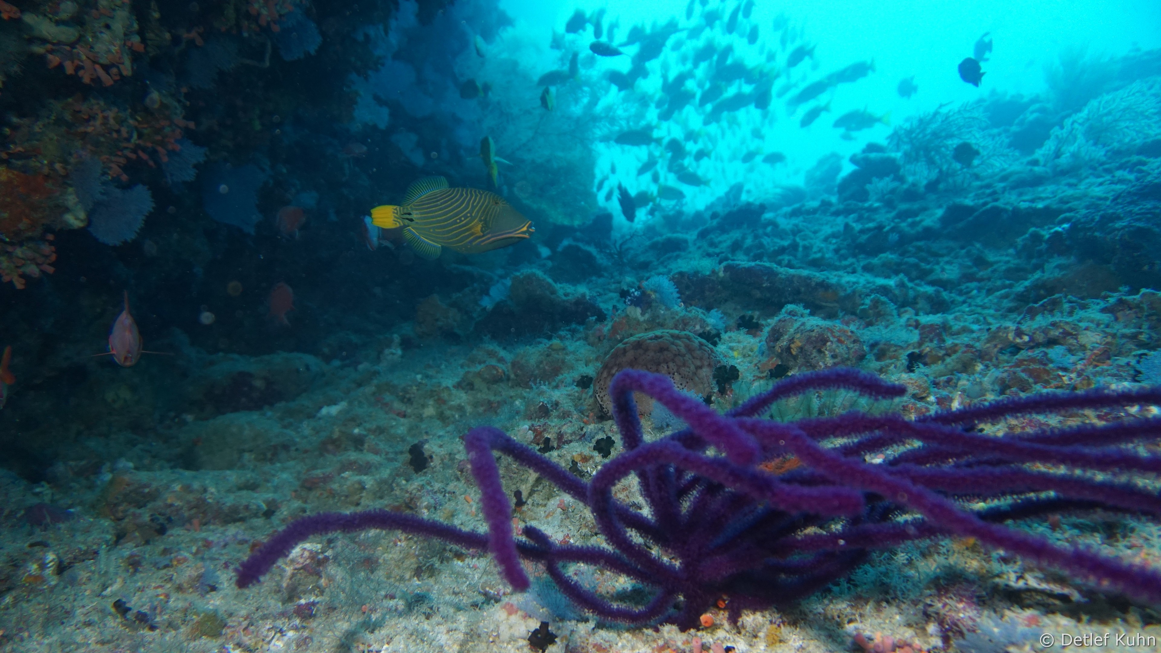 An den Wänden des Canyons sind besonders große Fächerkorallen zu finden,