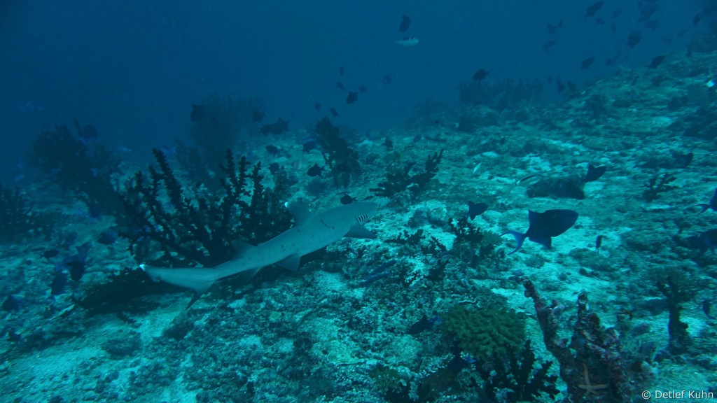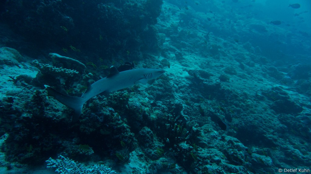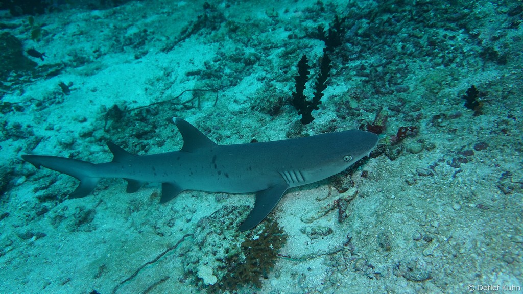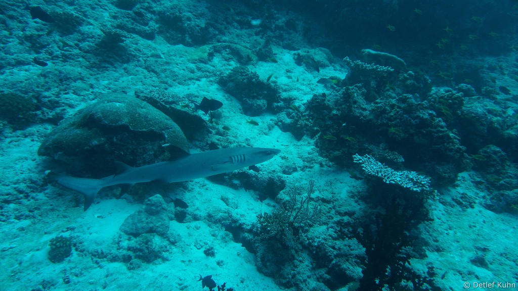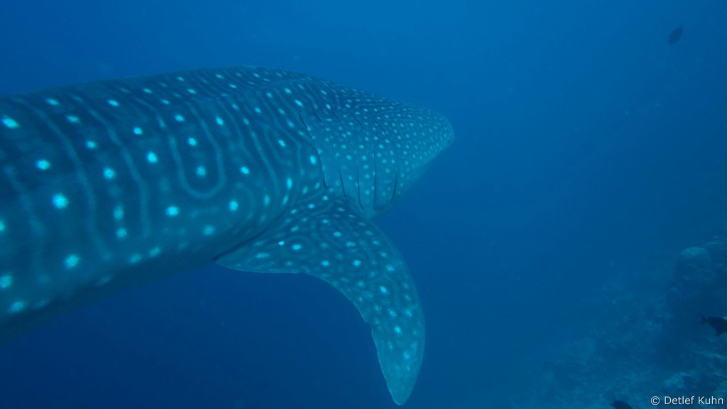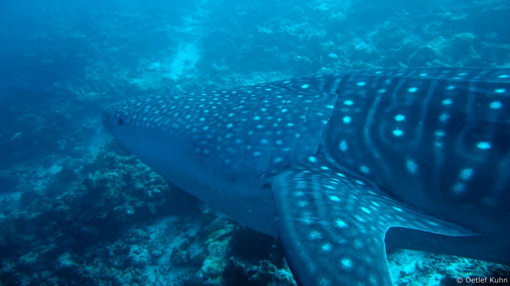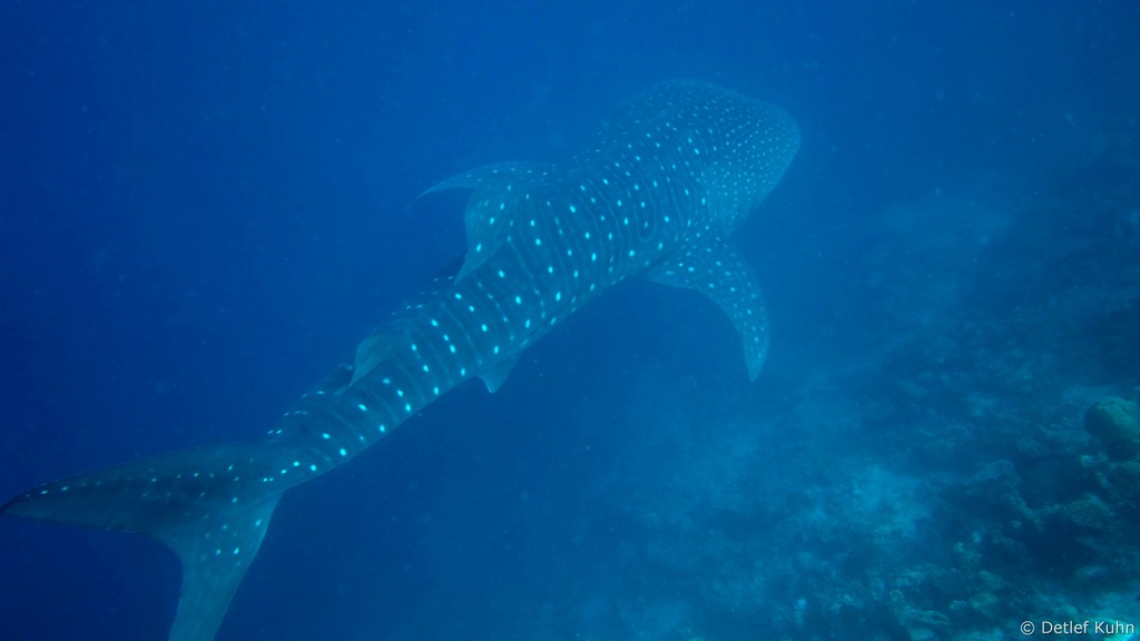 Am Tauchplatz Lux out im Süden des Ari-Atolls sind Walhaie mit hoher Wahrscheinlichkeit anzutreffen.