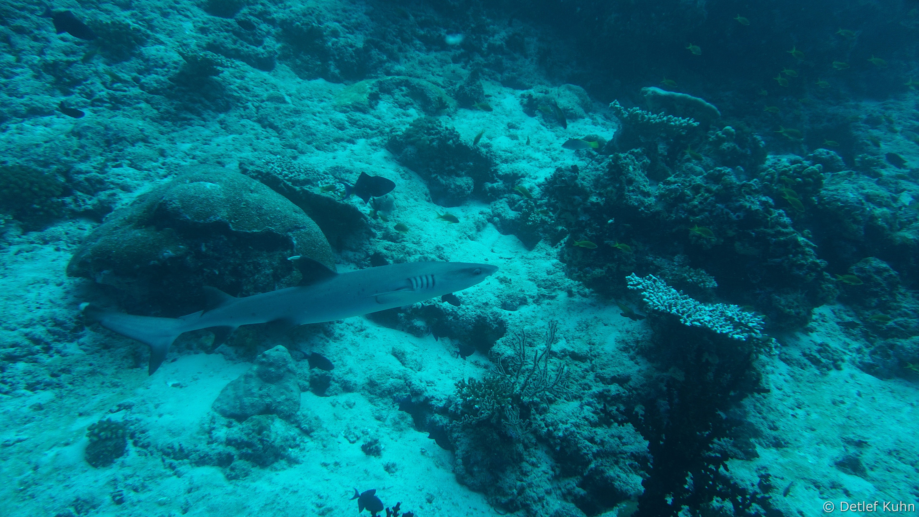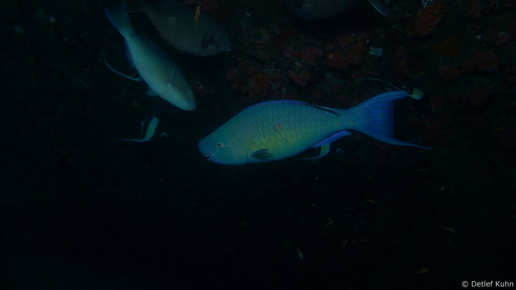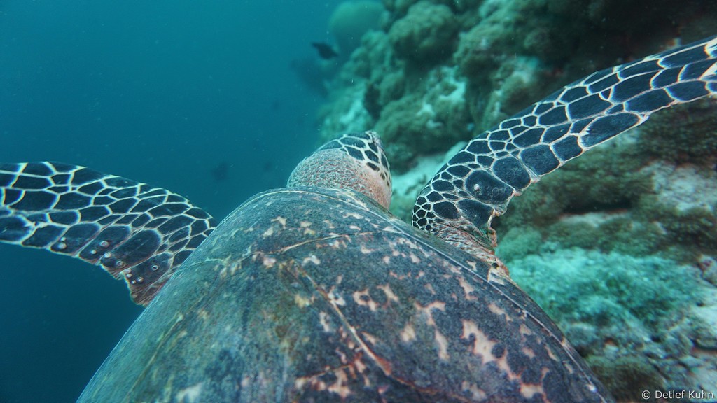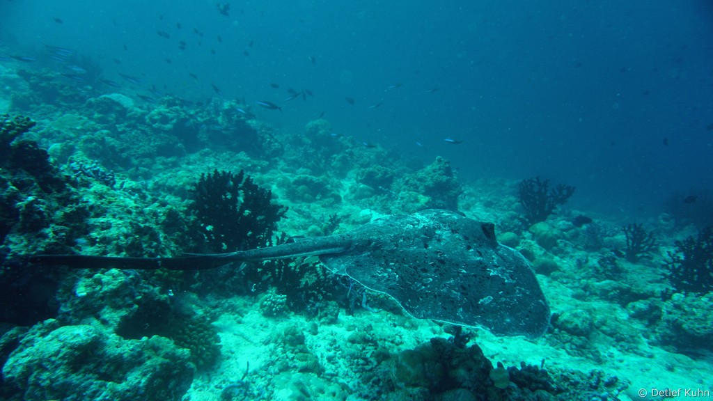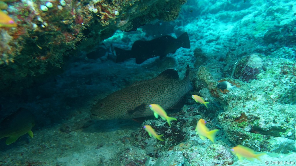 Am Tauchplatz Lux out im Süden des Ari-Atolls sind Walhaie mit hoher Wahrscheinlichkeit anzutreffen.