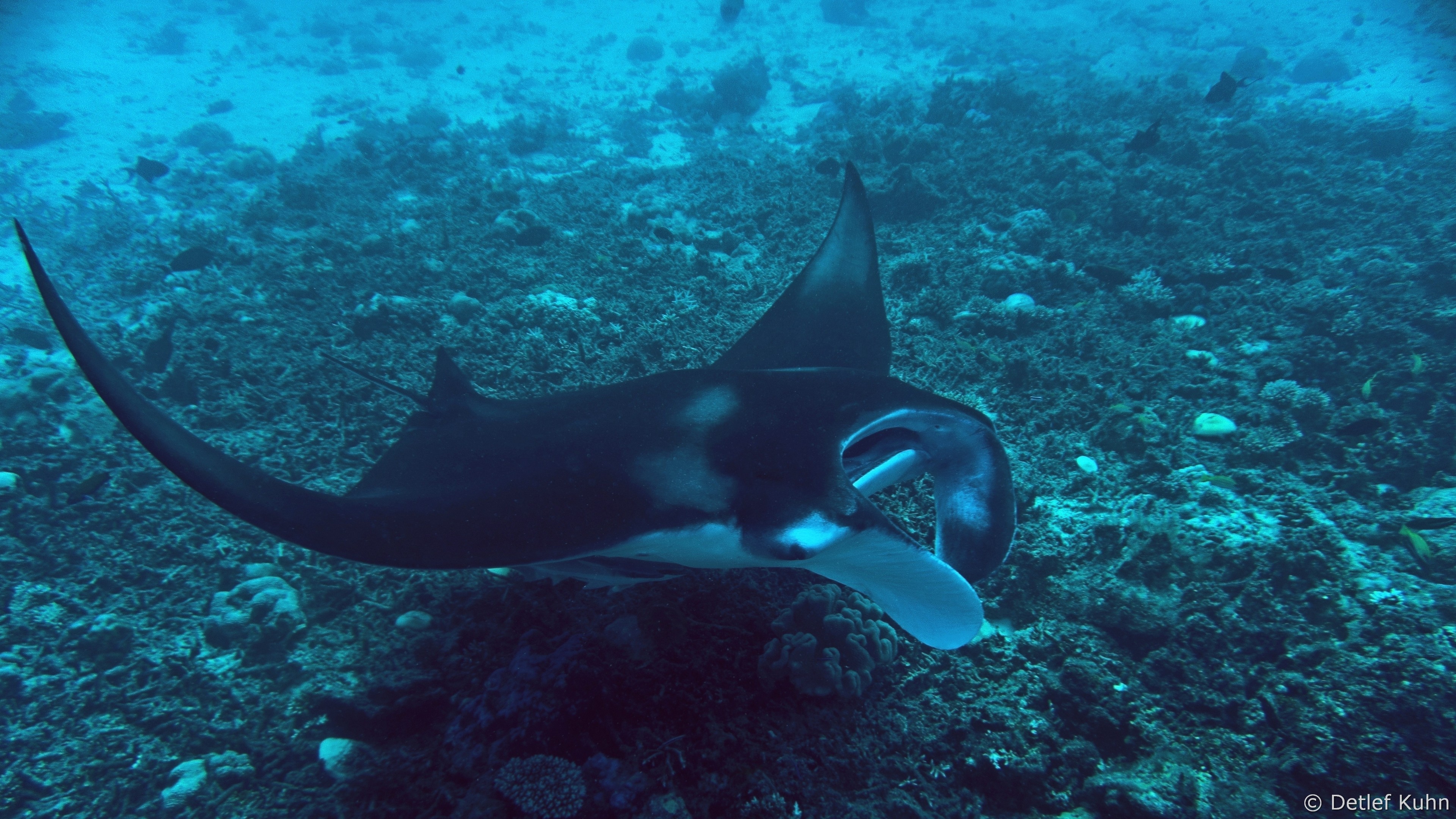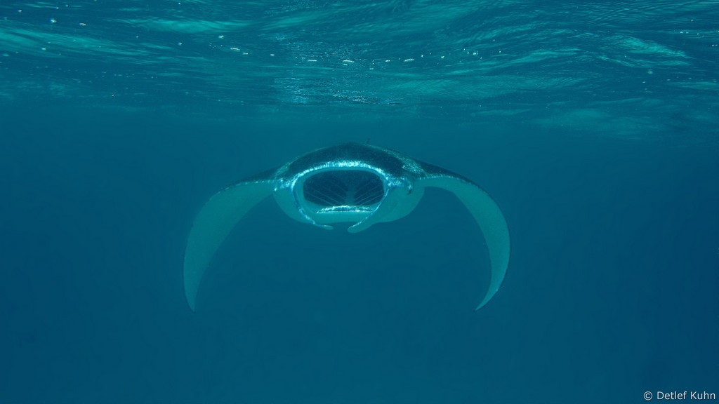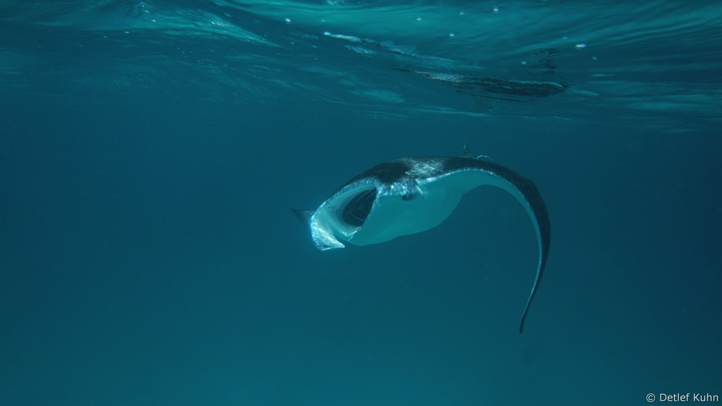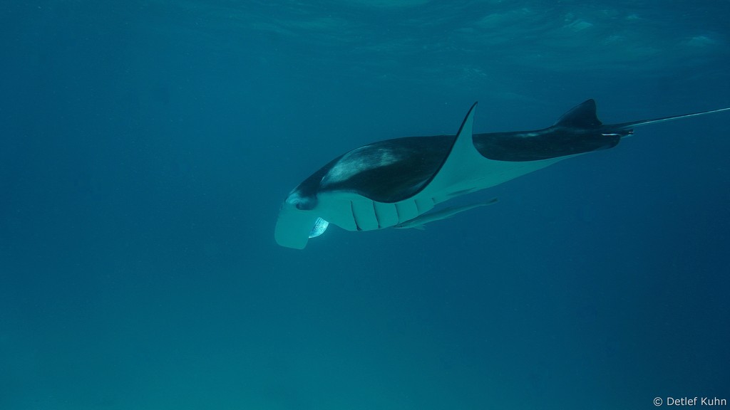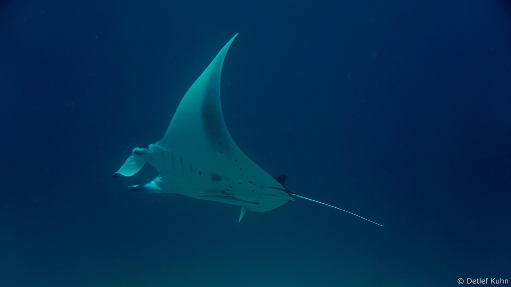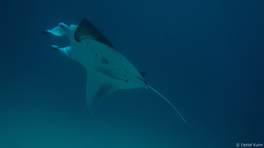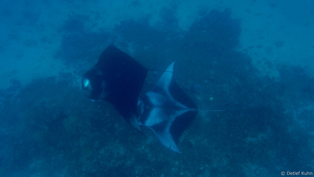 Am Tauchplatz Dhiguria Arches im Südosten des Ari-Atolls tummeln sich häufig Mantarochen.