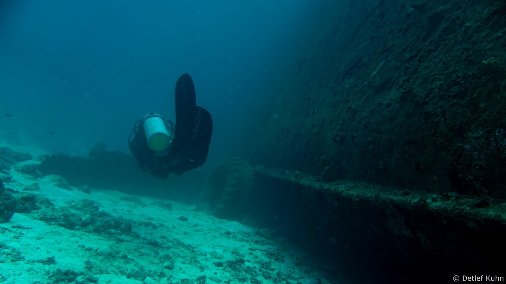 Das Deck des Wracks befindet sich in etwa 20 Metern Tiefe,