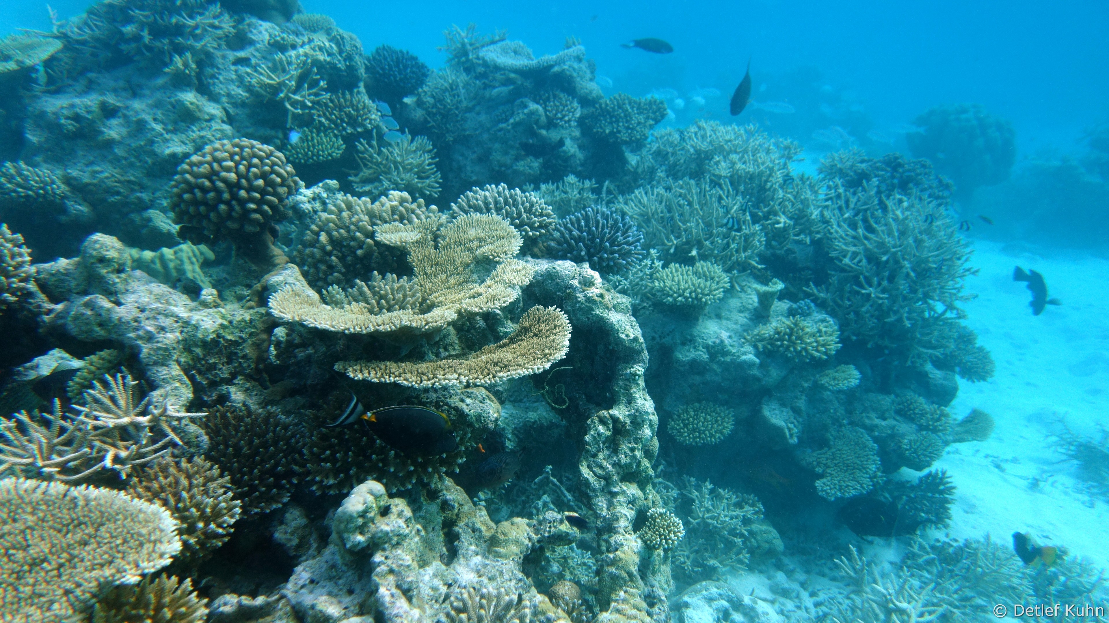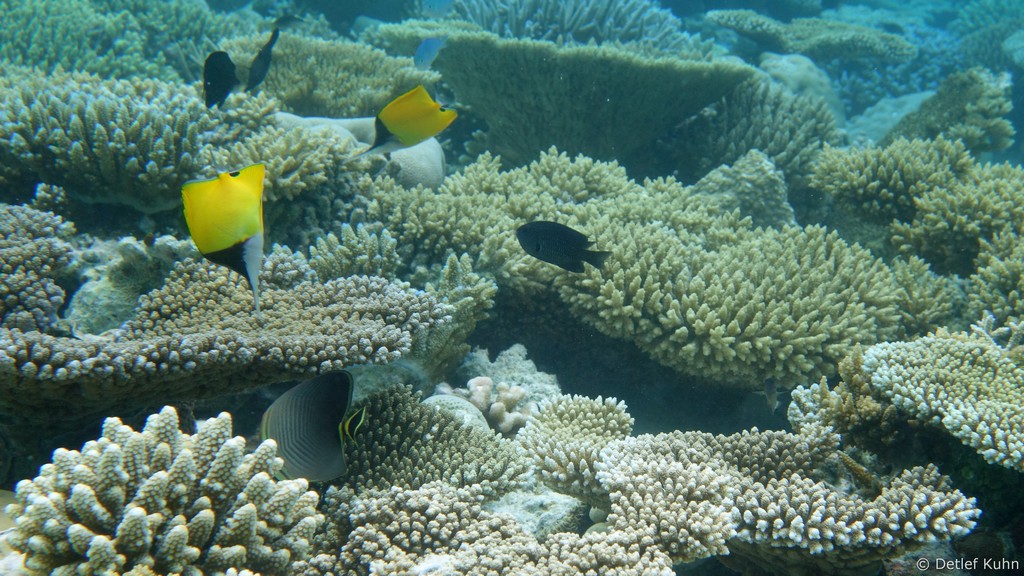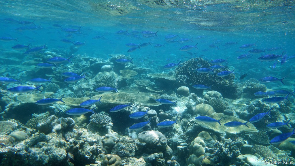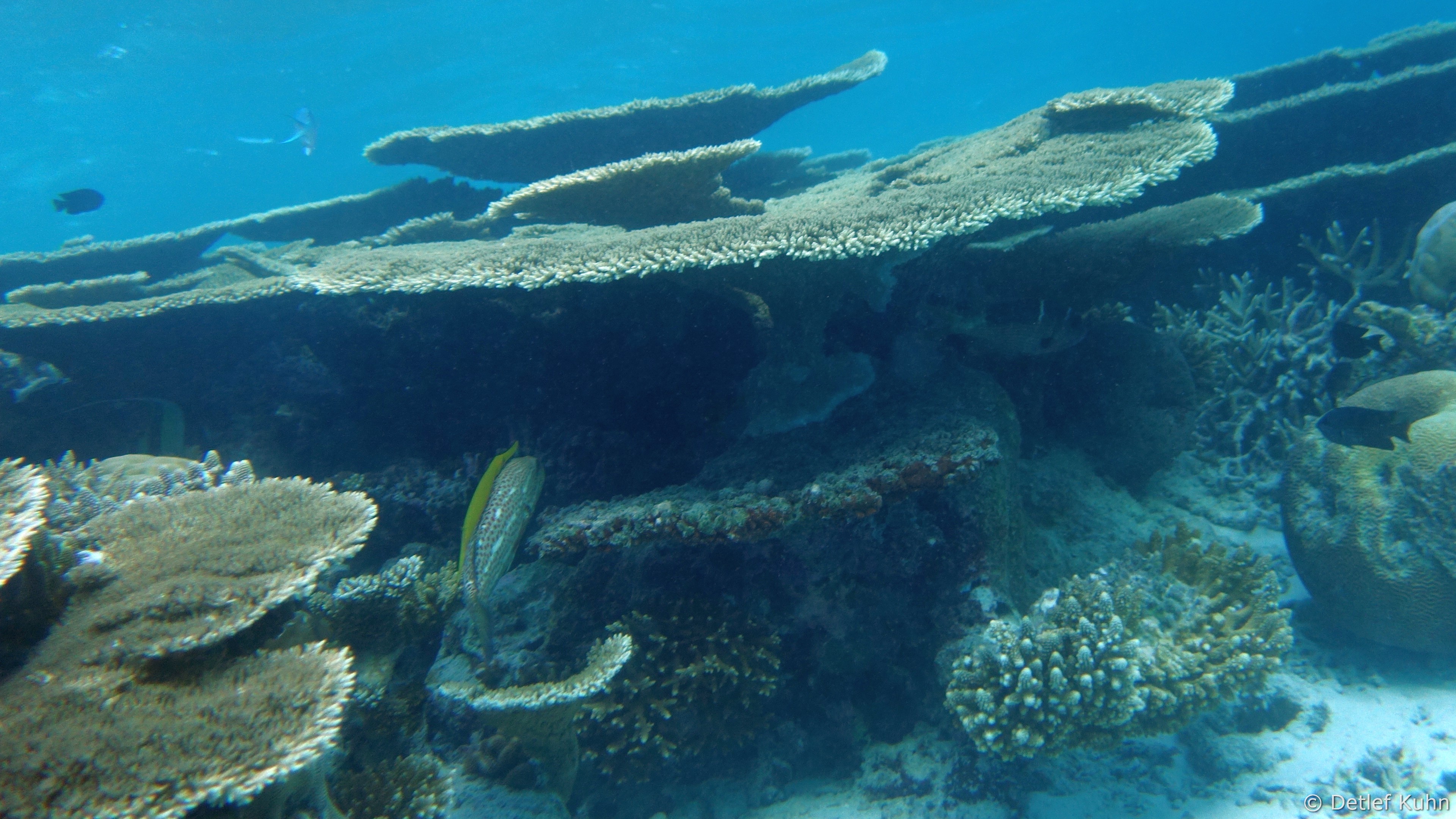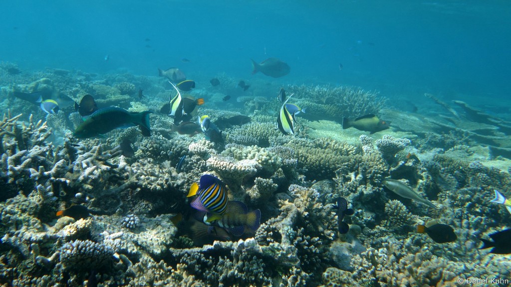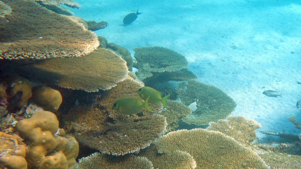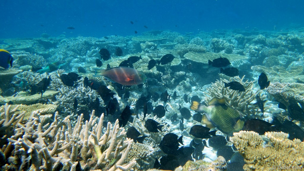 Das die Insel umgebende Hausriff war im Jahr 2014 noch weitgehend intakt und bot eine reiche Artenvielfalt.