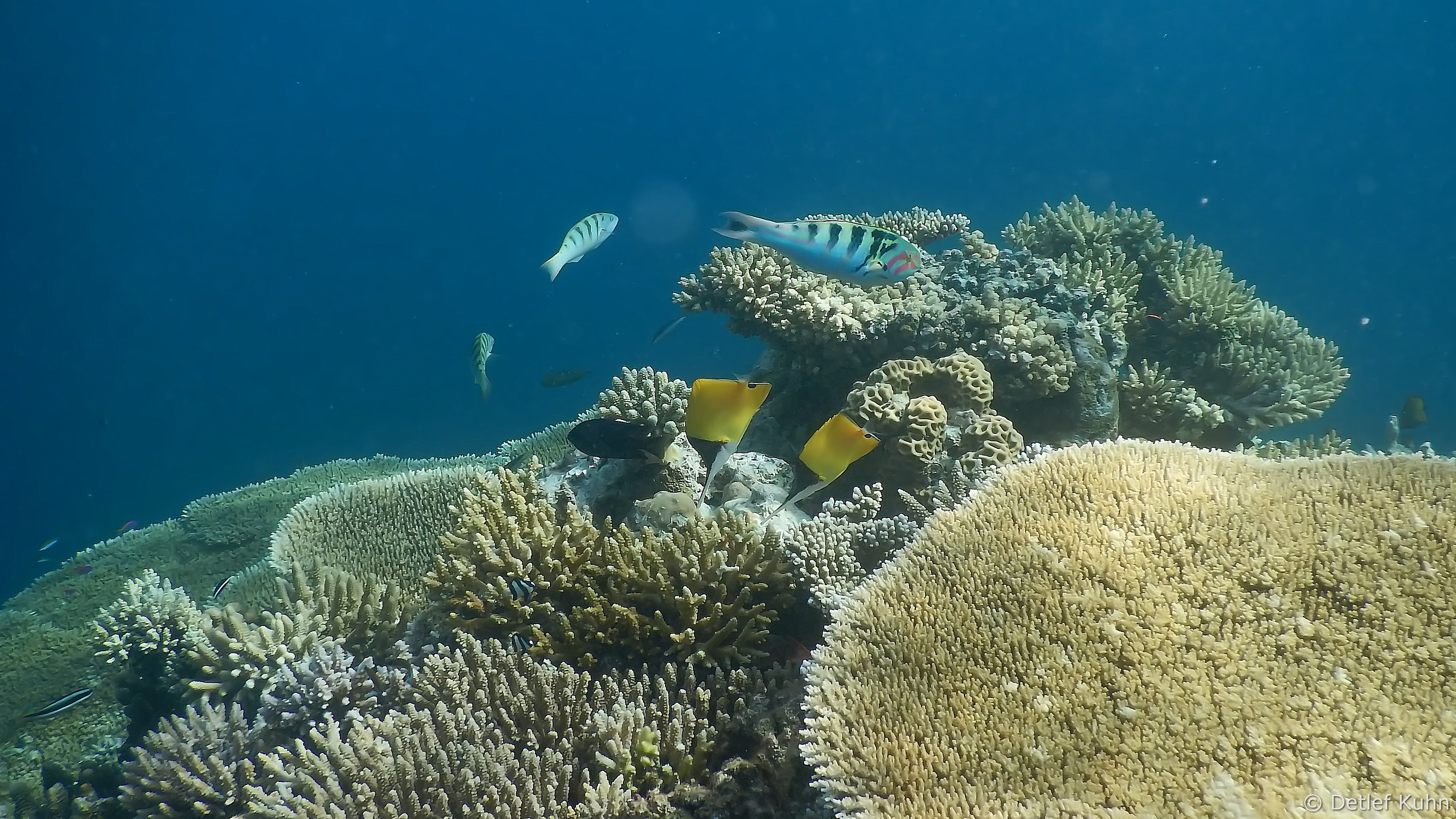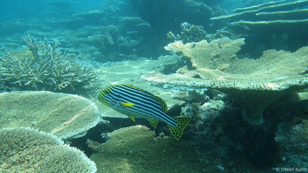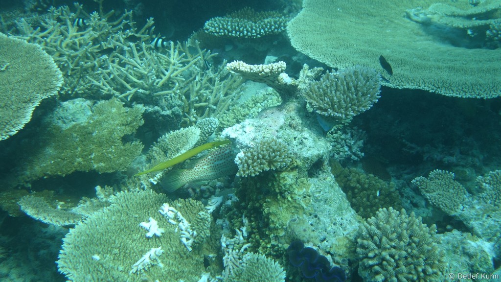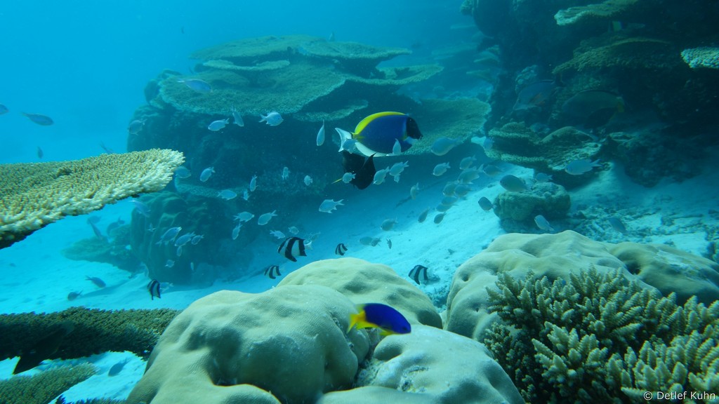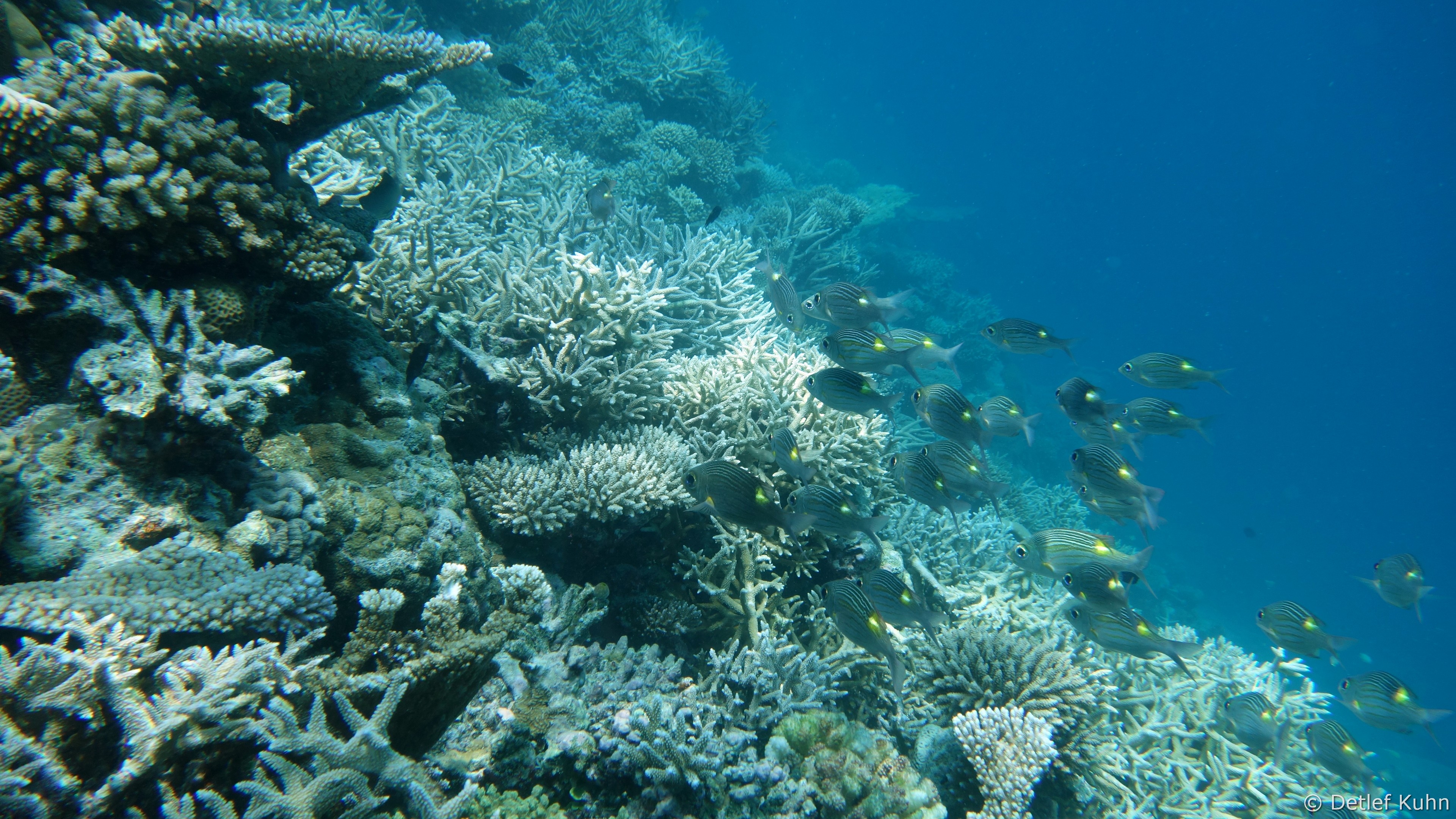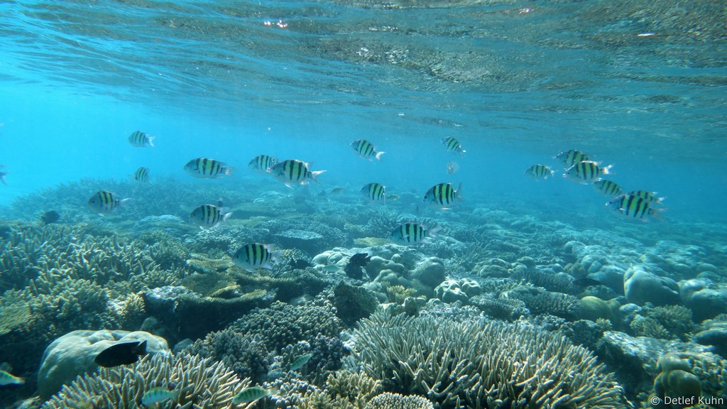 Das die Insel umgebende Hausriff war im Jahr 2014 noch weitgehend intakt und bot eine reiche Artenvielfalt.