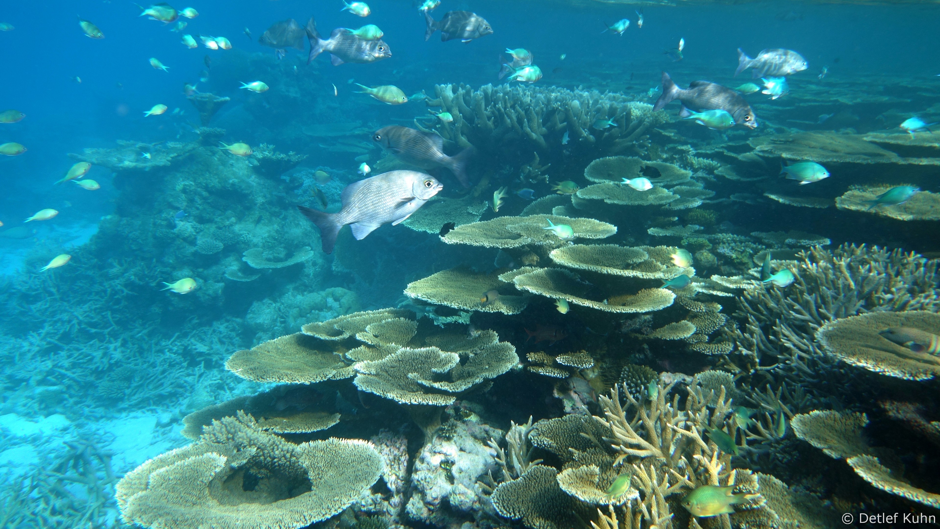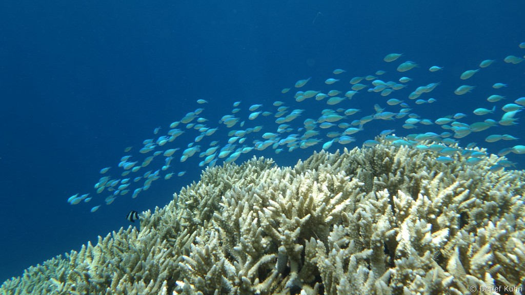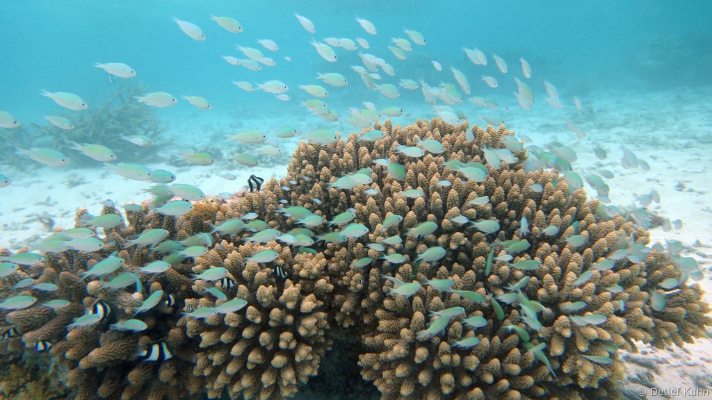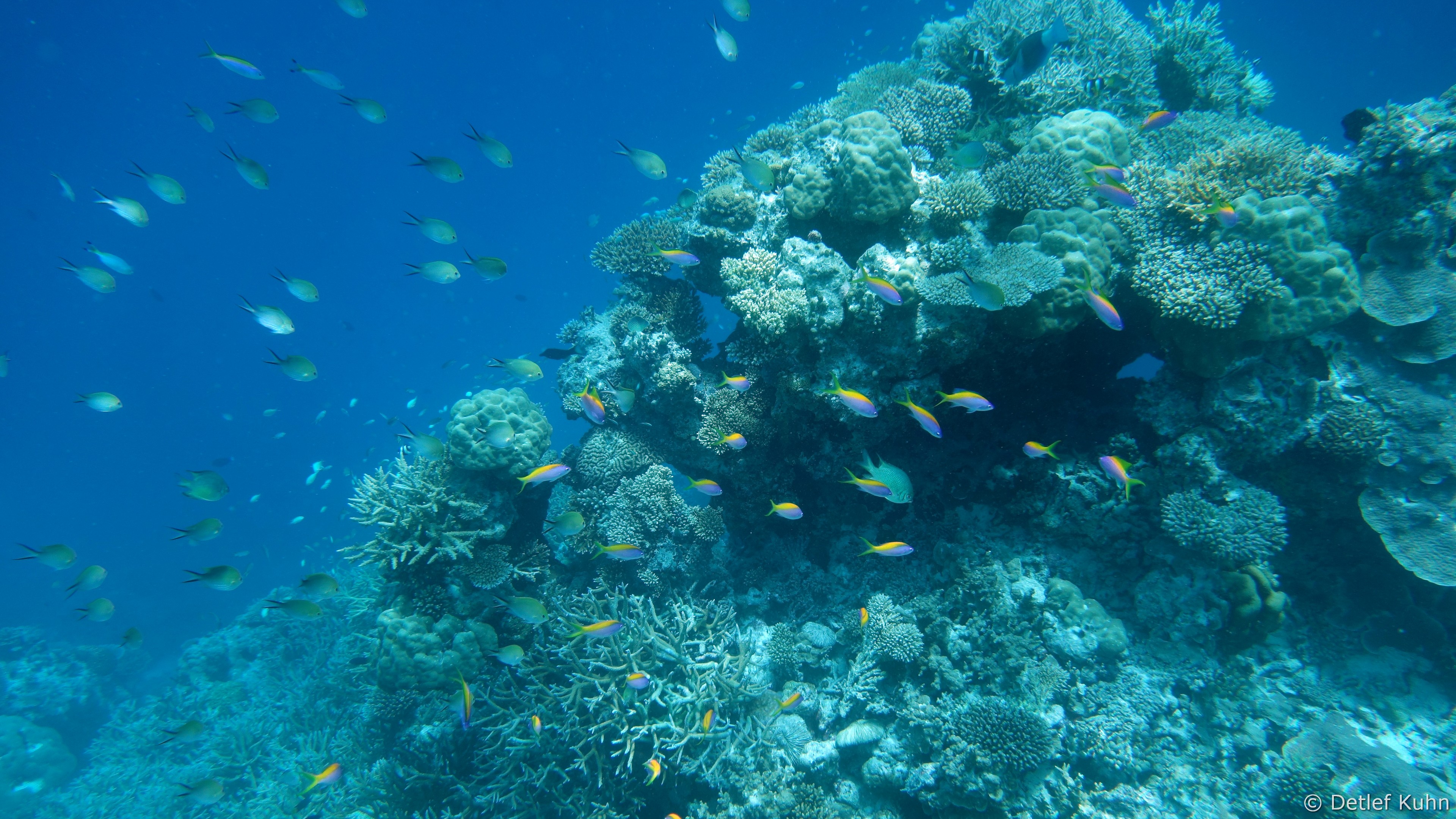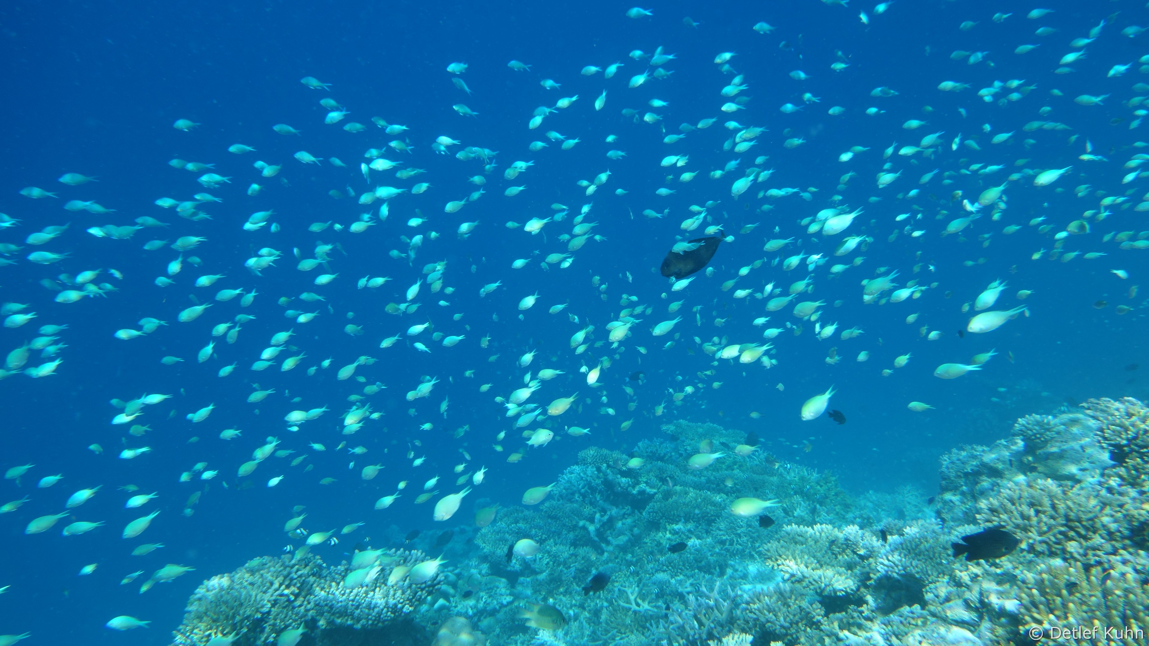 Das die Insel umgebende Hausriff war im Jahr 2014 noch weitgehend intakt und bot eine reiche Artenvielfalt.