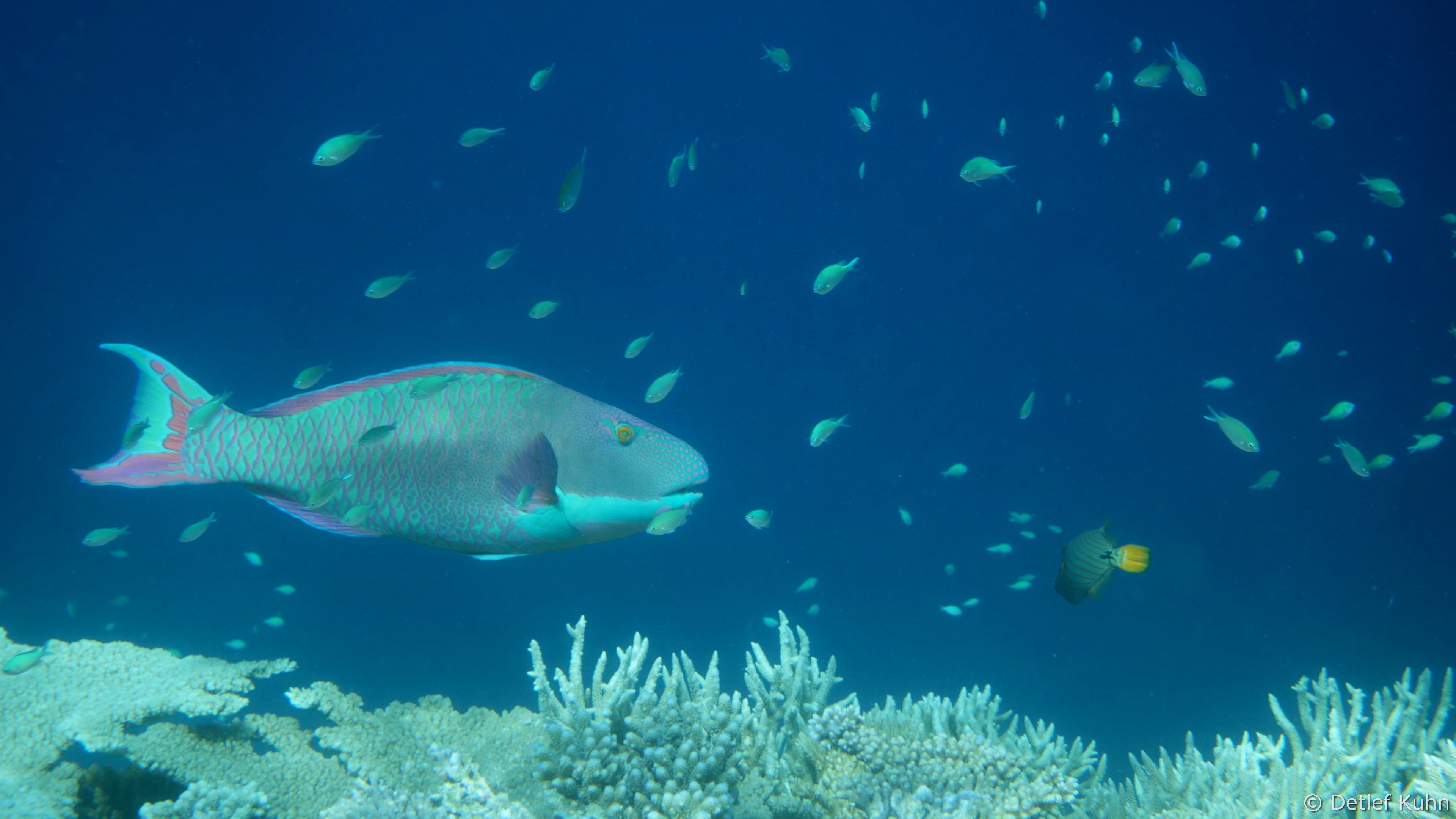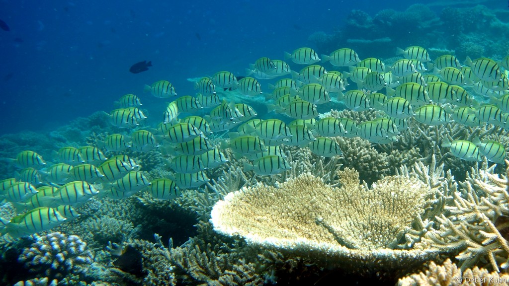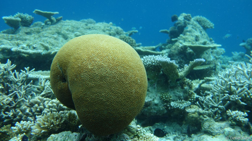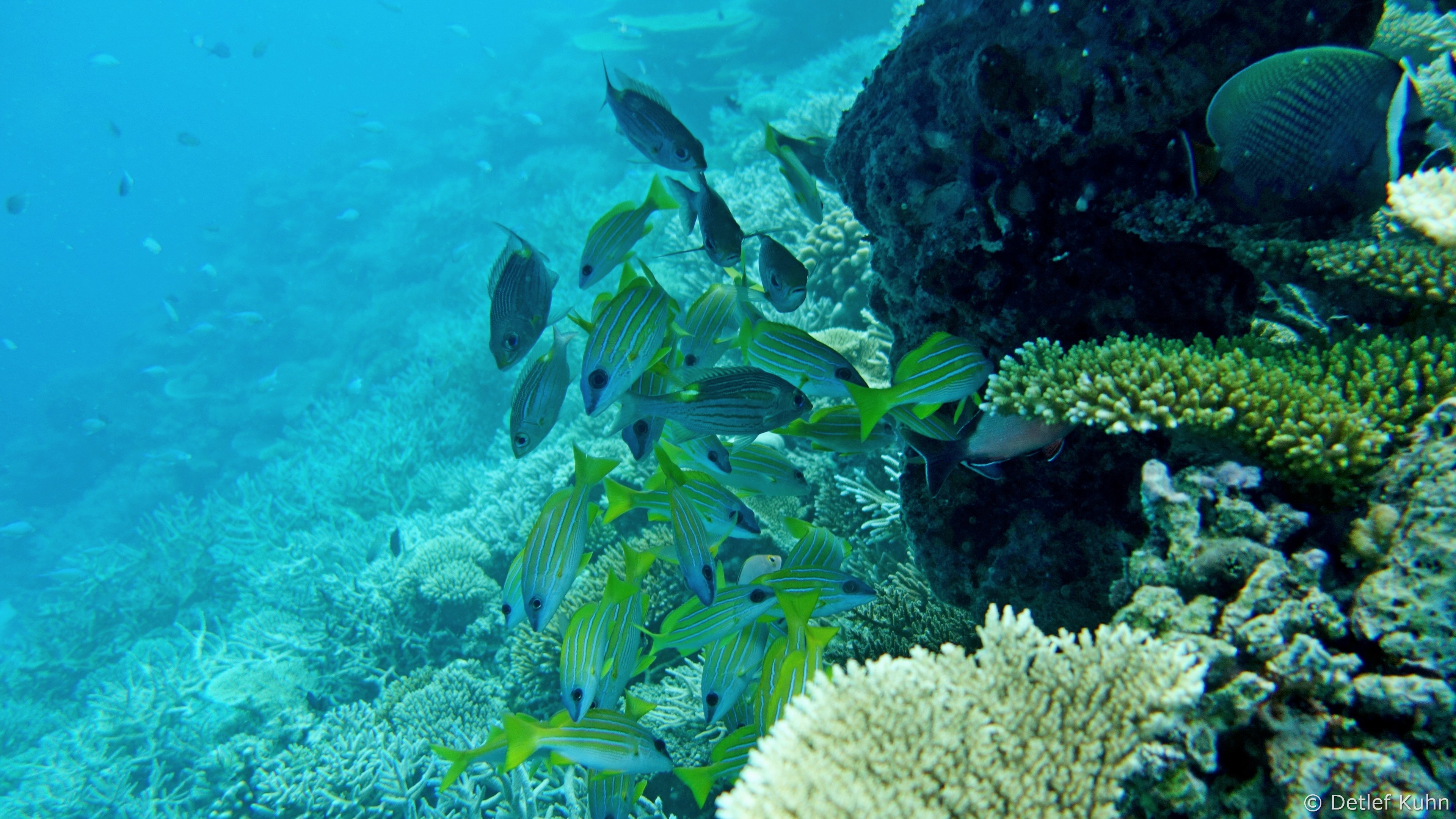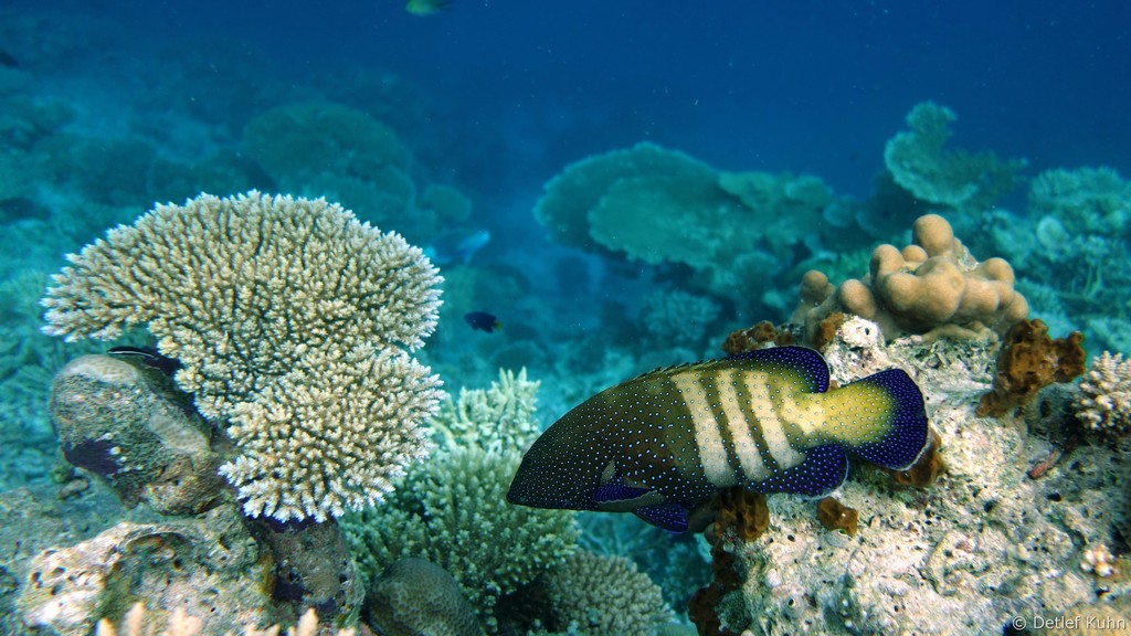 Das die Insel umgebende Hausriff war im Jahr 2014 noch weitgehend intakt und bot eine reiche Artenvielfalt.